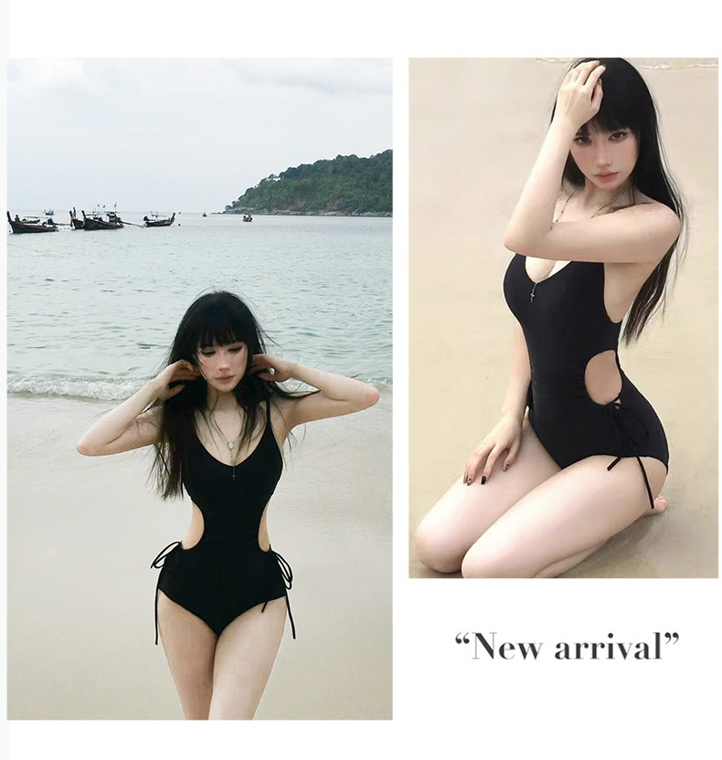 2024 새로운 섹시한 순수한 바람 블랙 Leaky 허리 슬림 핏 수영복 여성용 작은 가슴 벨리 덮인 온천 수영복스토어 가기