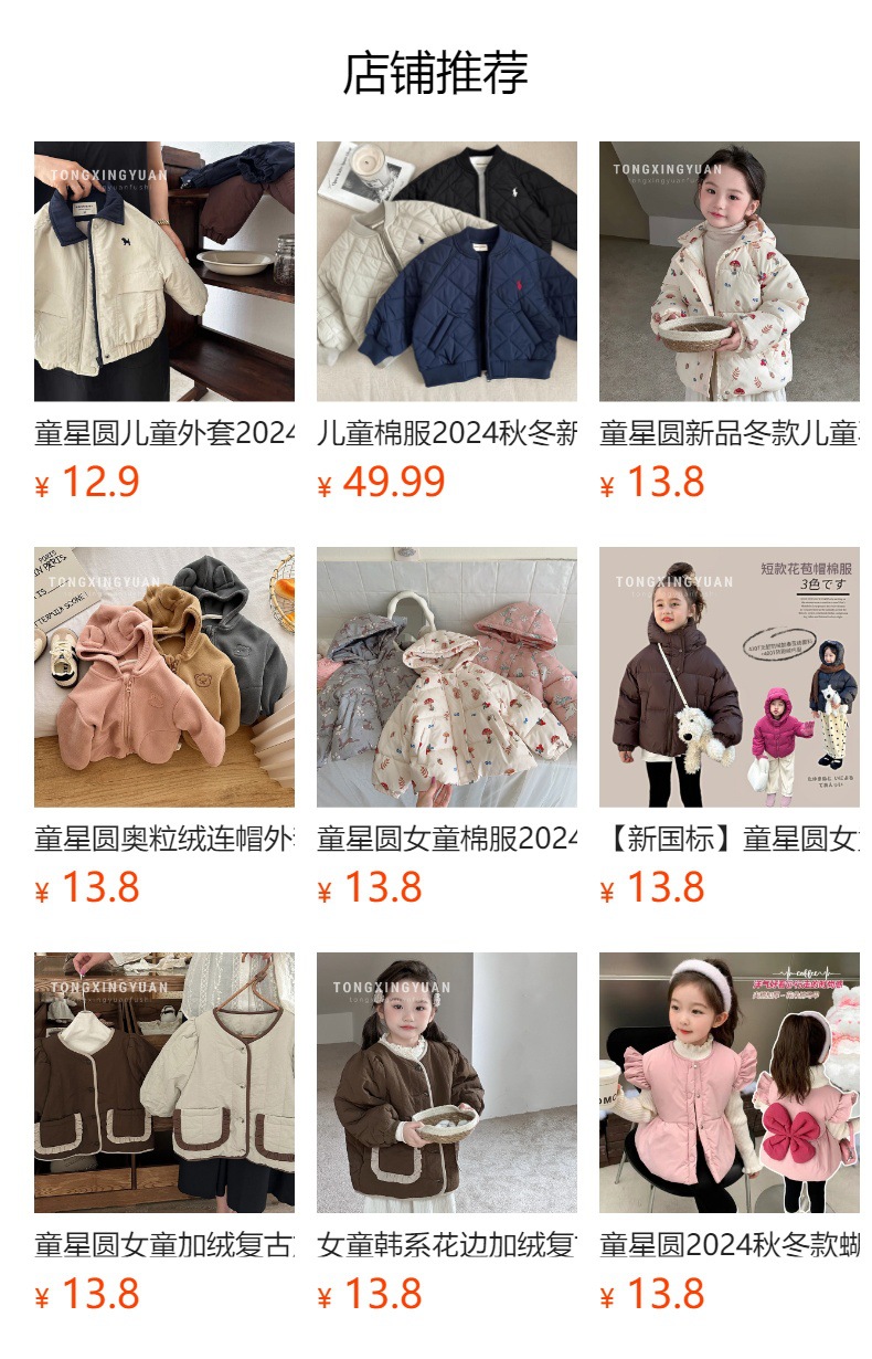 통싱위안 아동용 투피스 다운 코튼 재킷 2025 겨울 모델 여아 남아 야구복 아동복 겨울 재킷스토어 가기