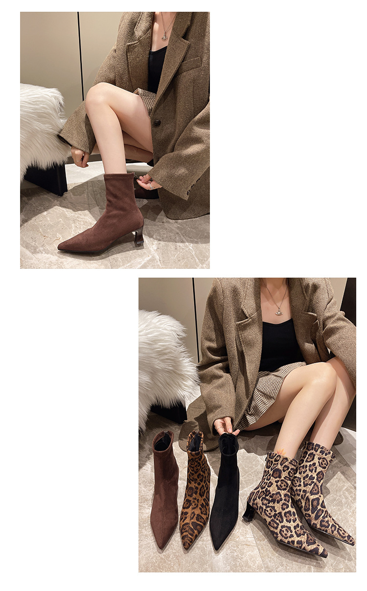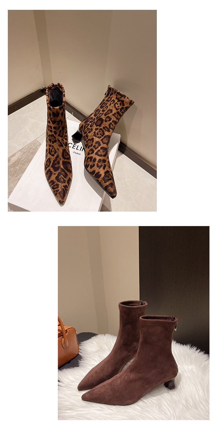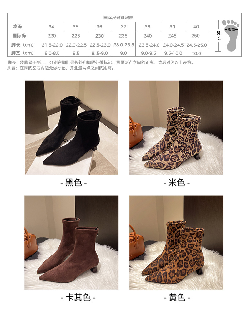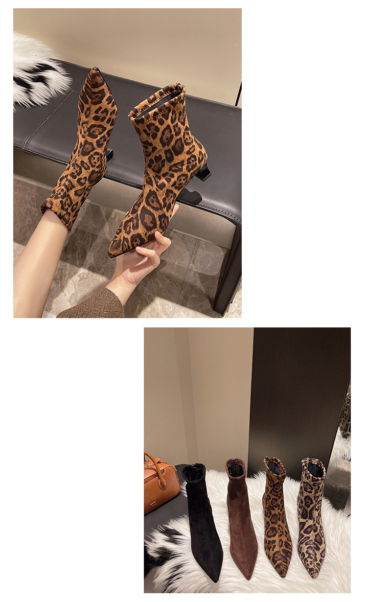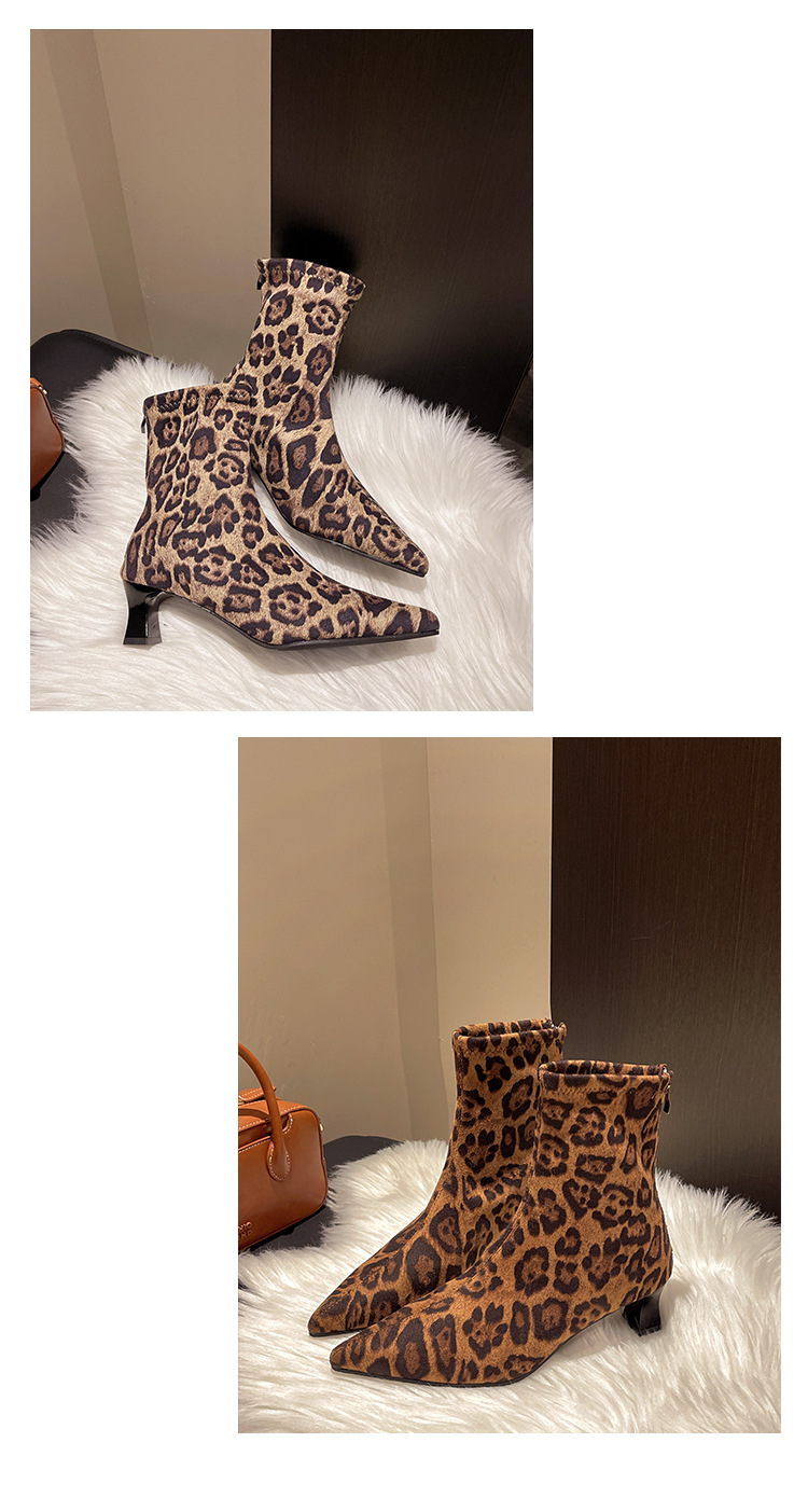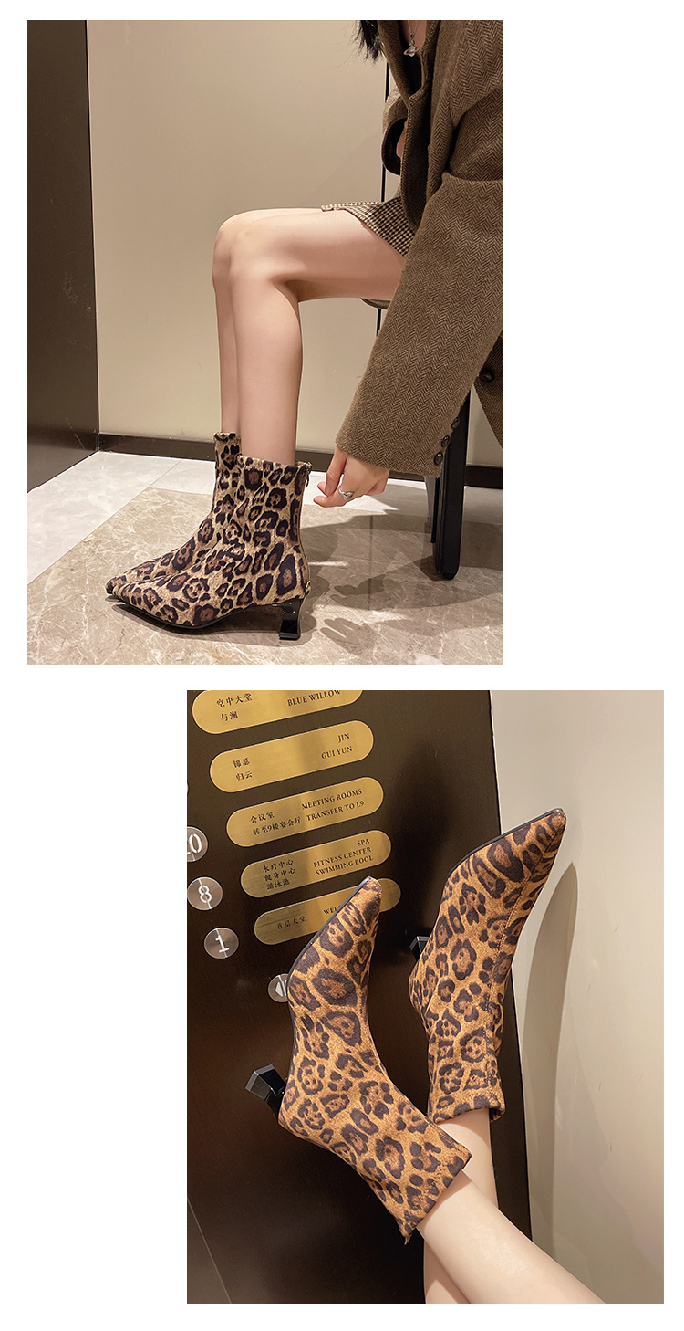 2024 년 가을 새로운 유럽과 미국의 대외 무역 플러스 사이즈 짧은 부츠 여성의 얇은 굽 스톰프 발 뒤꿈치 레오파드 무늬 패션 부츠스토어 가기