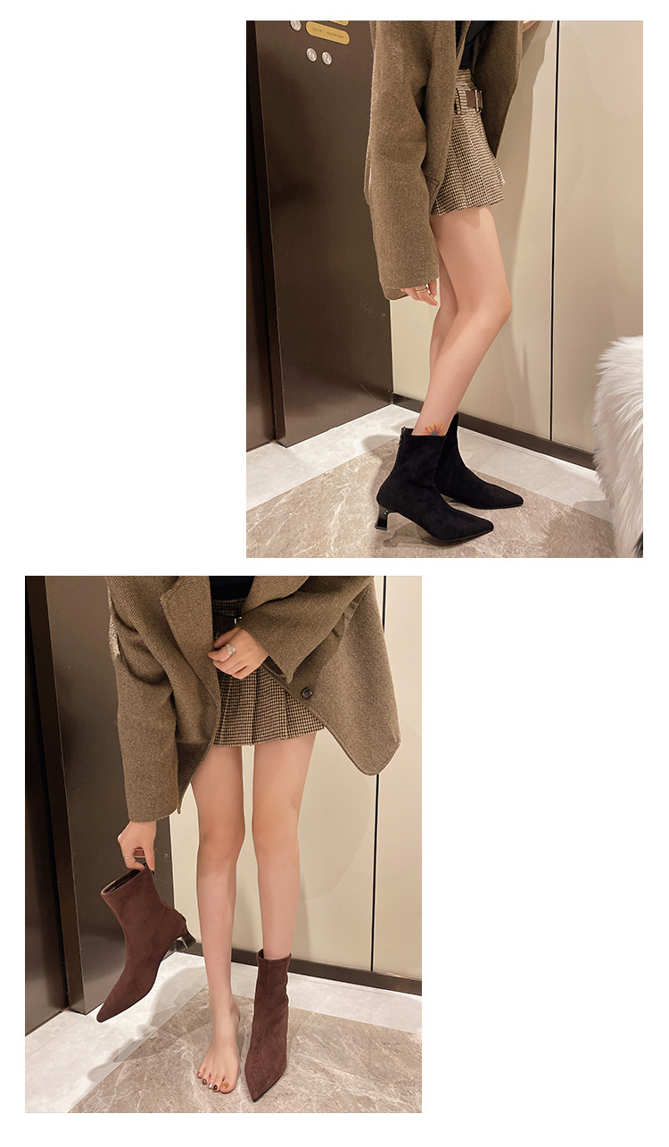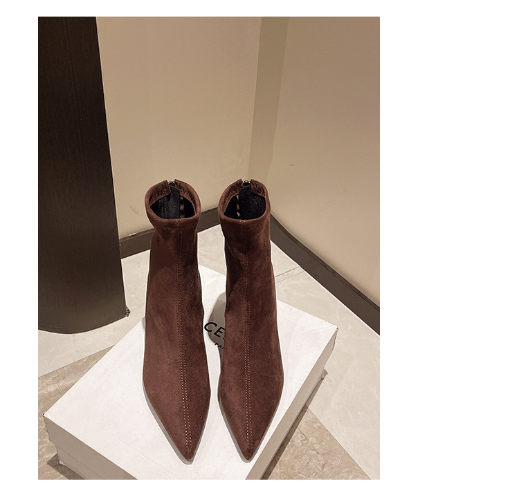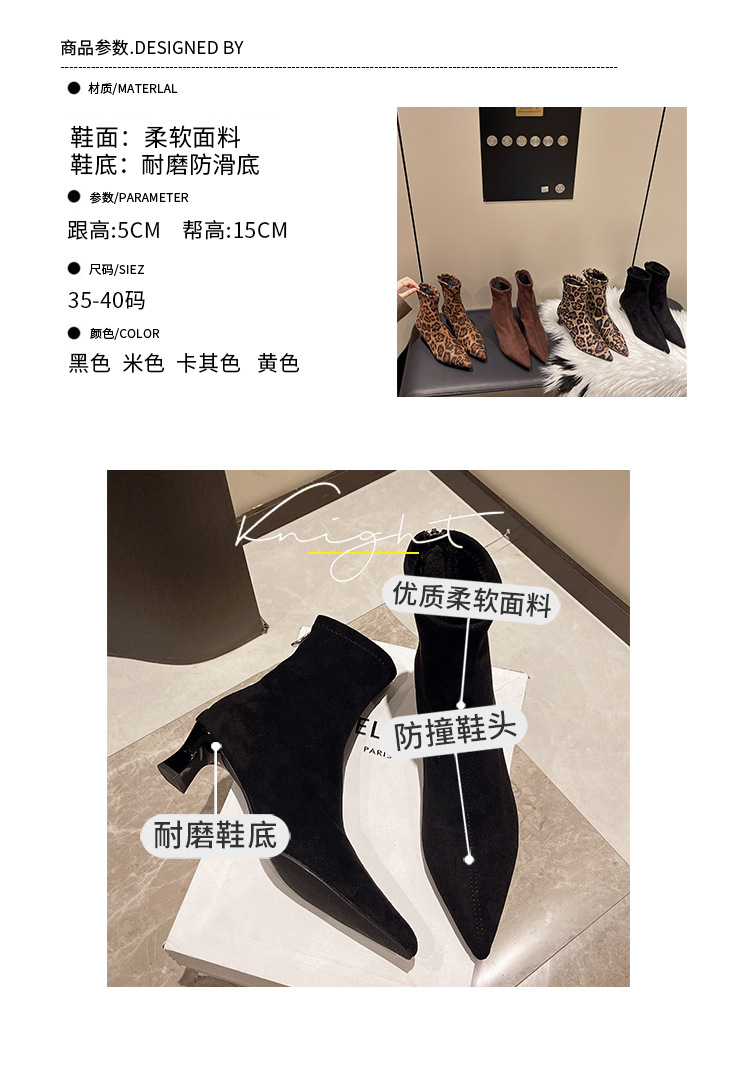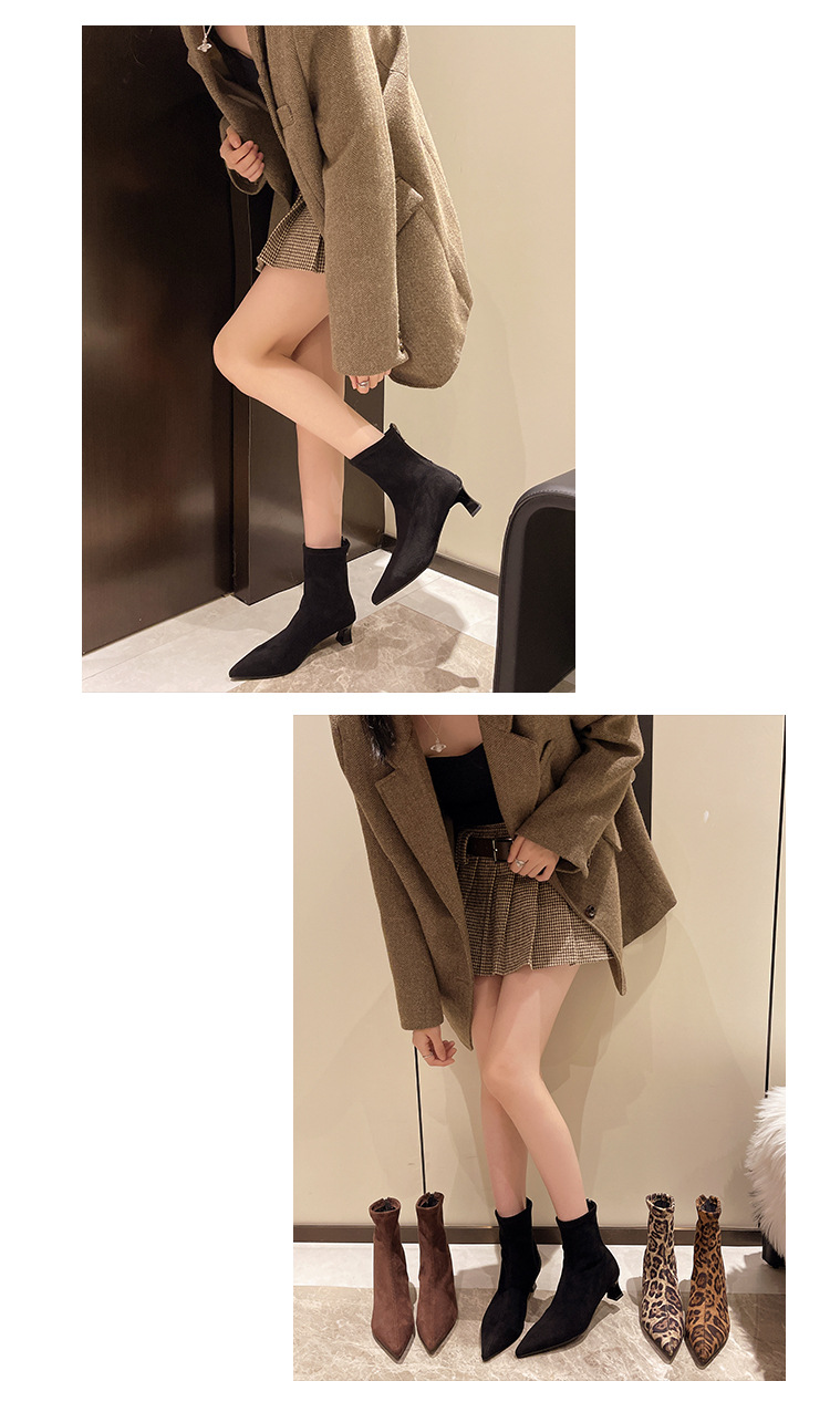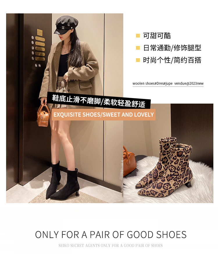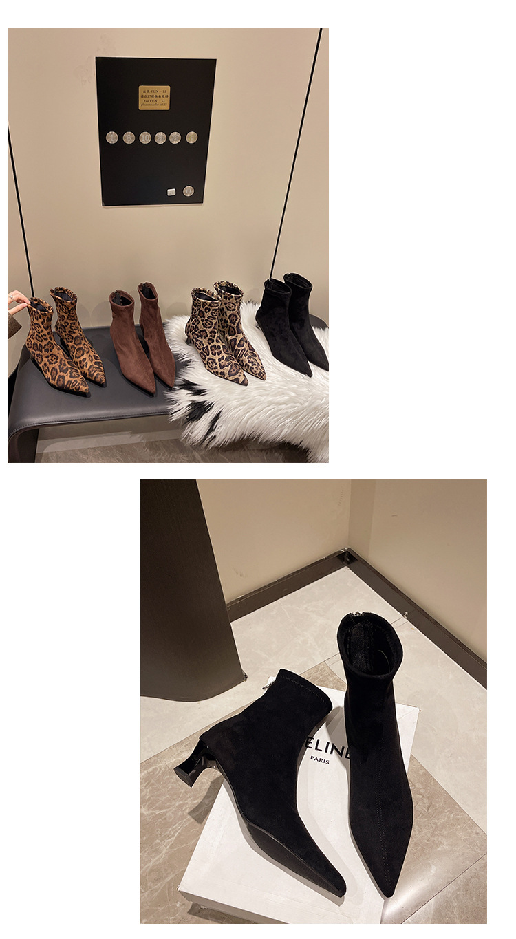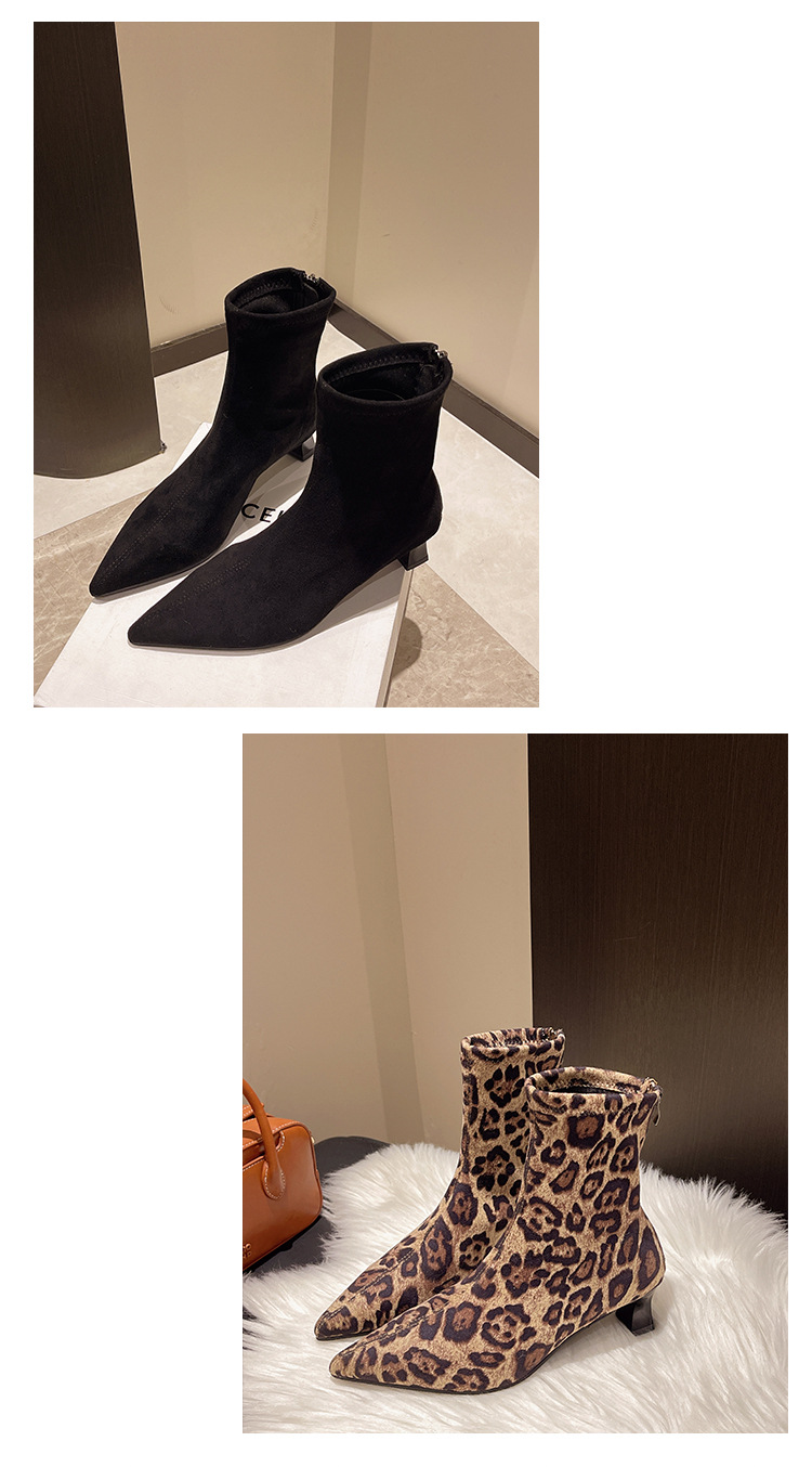 2024 년 가을 새로운 유럽과 미국의 대외 무역 플러스 사이즈 짧은 부츠 여성의 얇은 굽 스톰프 발 뒤꿈치 레오파드 무늬 패션 부츠스토어 가기