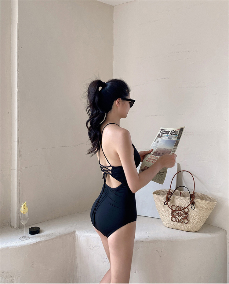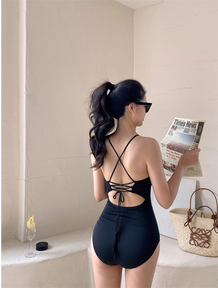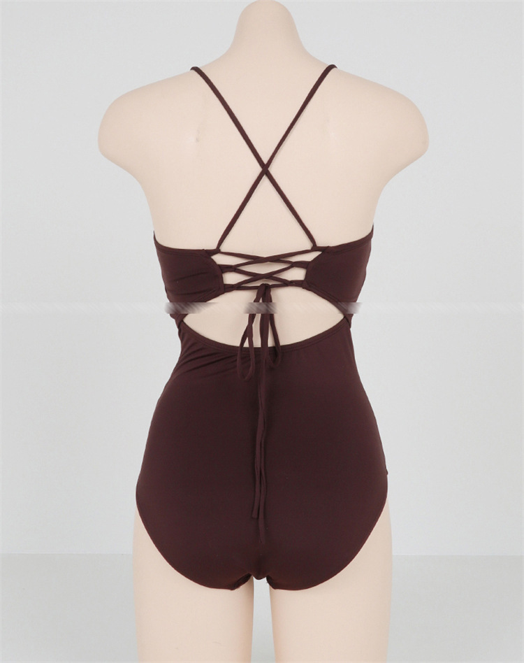새로운 아마존 솔리드 컬러 백리스 솔리드 컬러 백리스 크로스 스트랩 벨리 커버 슬리밍 온천 삼각형 수영복 여성