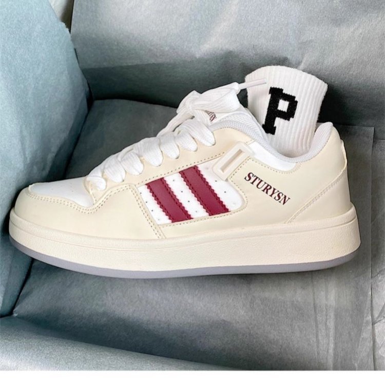 대학 스타일의 레트로 컬러 매칭 화이트 슈즈 여성용 트렌디 올매치 브레드 슈즈 2024 새로운 통기성 두꺼운 밑창 운동화