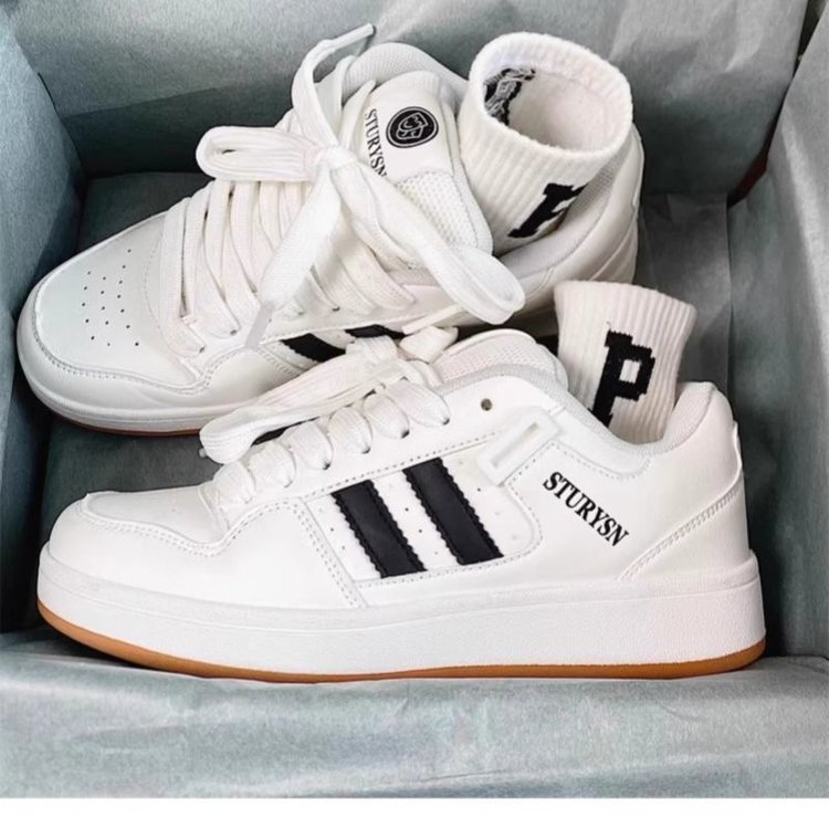 대학 스타일의 레트로 컬러 매칭 화이트 슈즈 여성용 트렌디 올매치 브레드 슈즈 2024 새로운 통기성 두꺼운 밑창 운동화스토어 가기