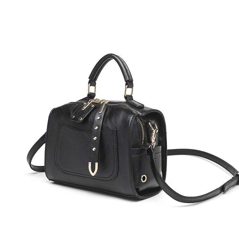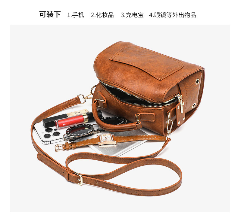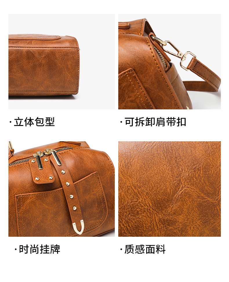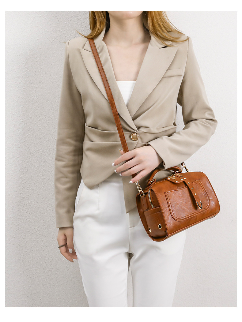 왁스 가죽 보스턴 베개 가방 여성의 2023 새로운 유행 올 매치 유행 유럽과 미국의 소프트 가죽 와이드 밴드 어깨 크로스 바디 백