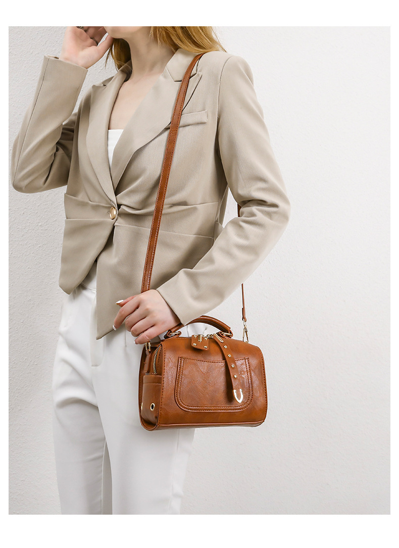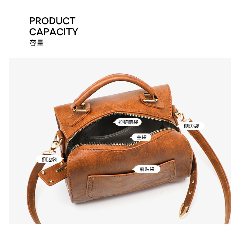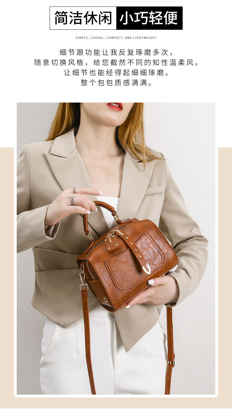 왁스 가죽 보스턴 베개 가방 여성의 2023 새로운 유행 올 매치 유행 유럽과 미국의 소프트 가죽 와이드 밴드 어깨 크로스 바디 백스토어 가기