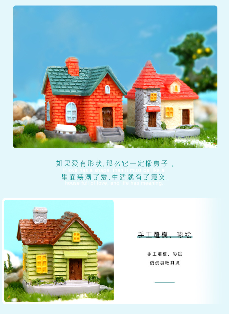 국경 간 컨트리 빌라 수지 공예 유럽 스타일 다육 질 작은 집 창조적 인 조경 장식 마이크로 풍경