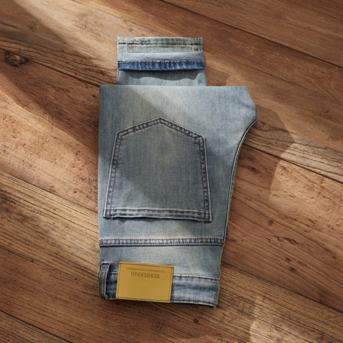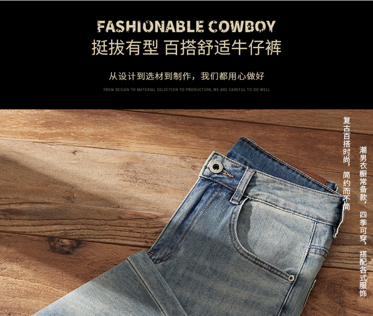 새로운 컬러프리 청바지 남성용 한국식 청춘한 테이퍼드 루즈 스트레이트 스트레치 올매치 슬림 핏 바지스토어 가기