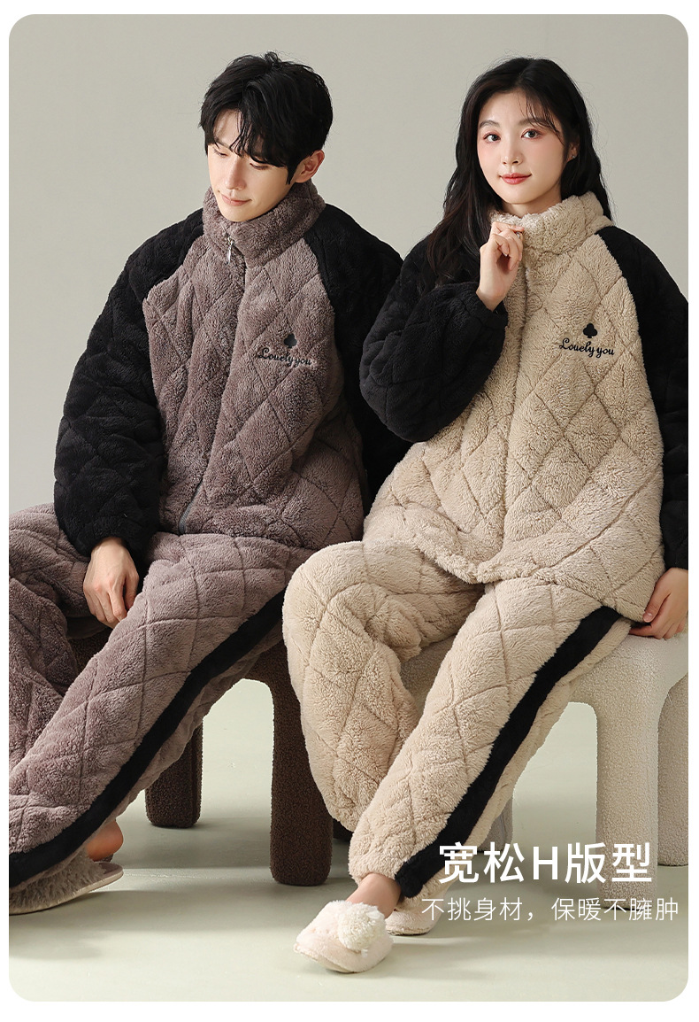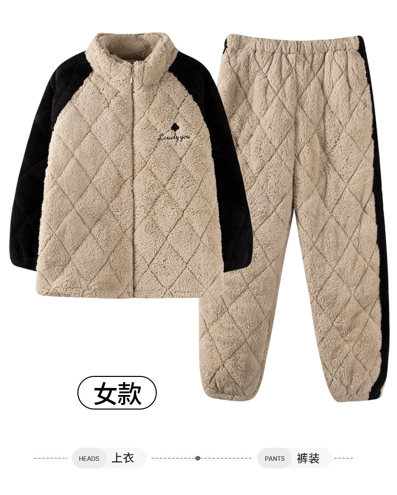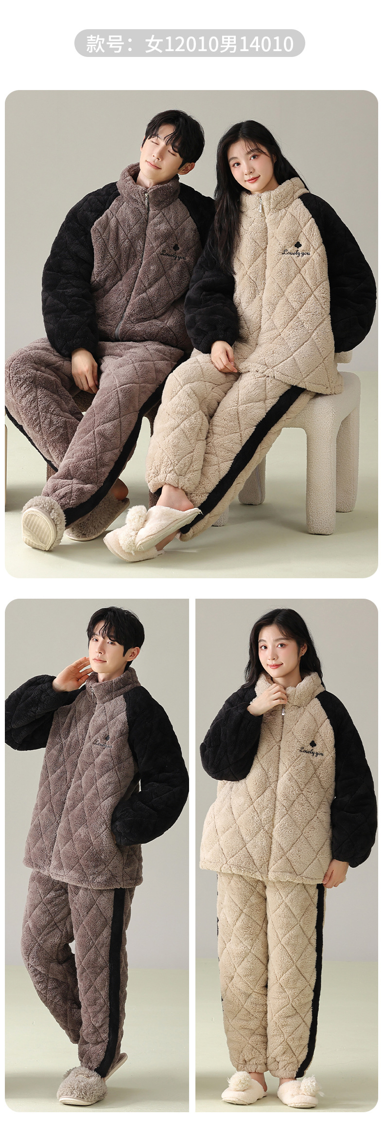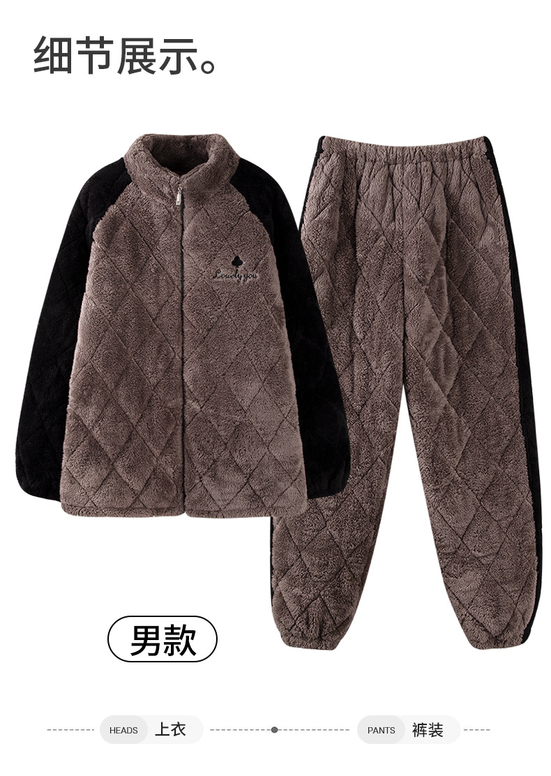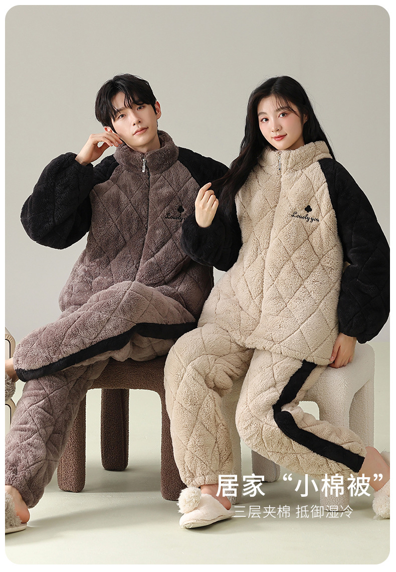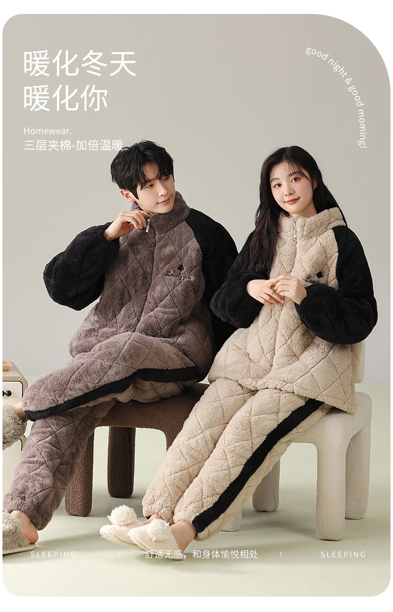 겨울 커플 잠옷 여성의 겨울 두꺼운 기모 따뜻한 3 층 산호 양털 퀼트 남성 긴팔 홈 의류 세트
