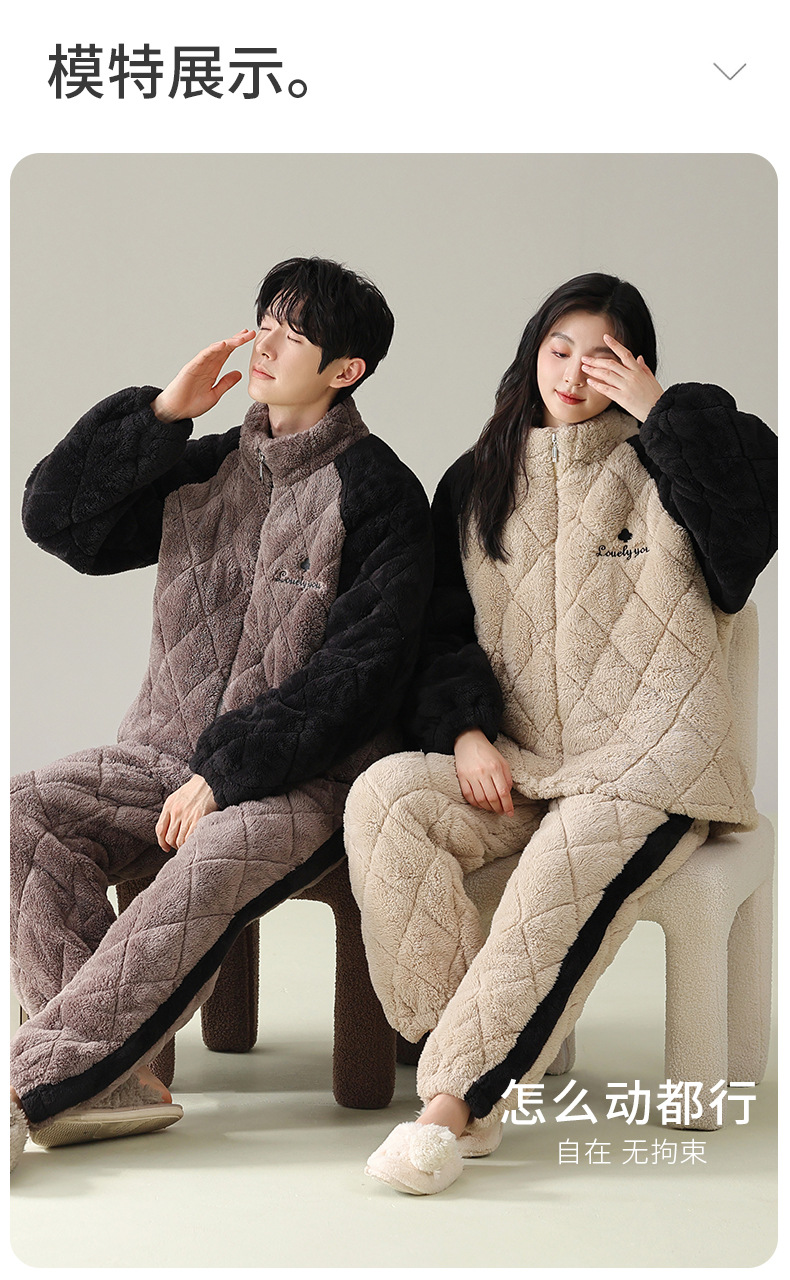 겨울 커플 잠옷 여성의 겨울 두꺼운 기모 따뜻한 3 층 산호 양털 퀼트 남성 긴팔 홈 의류 세트스토어 가기