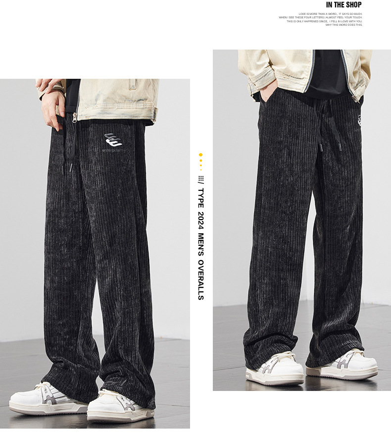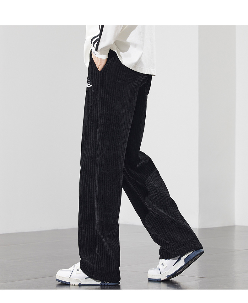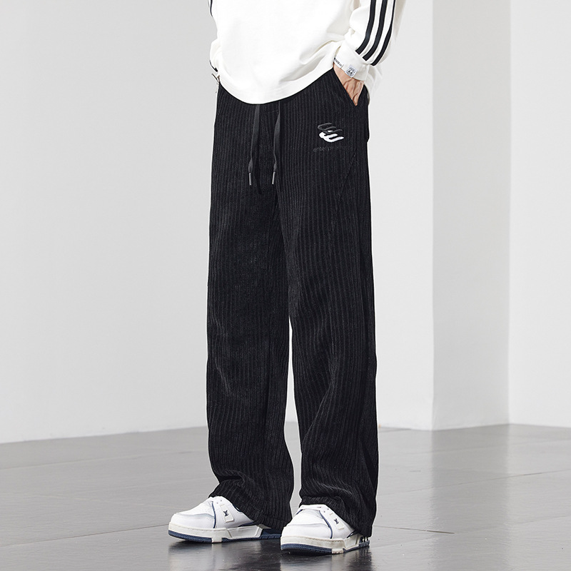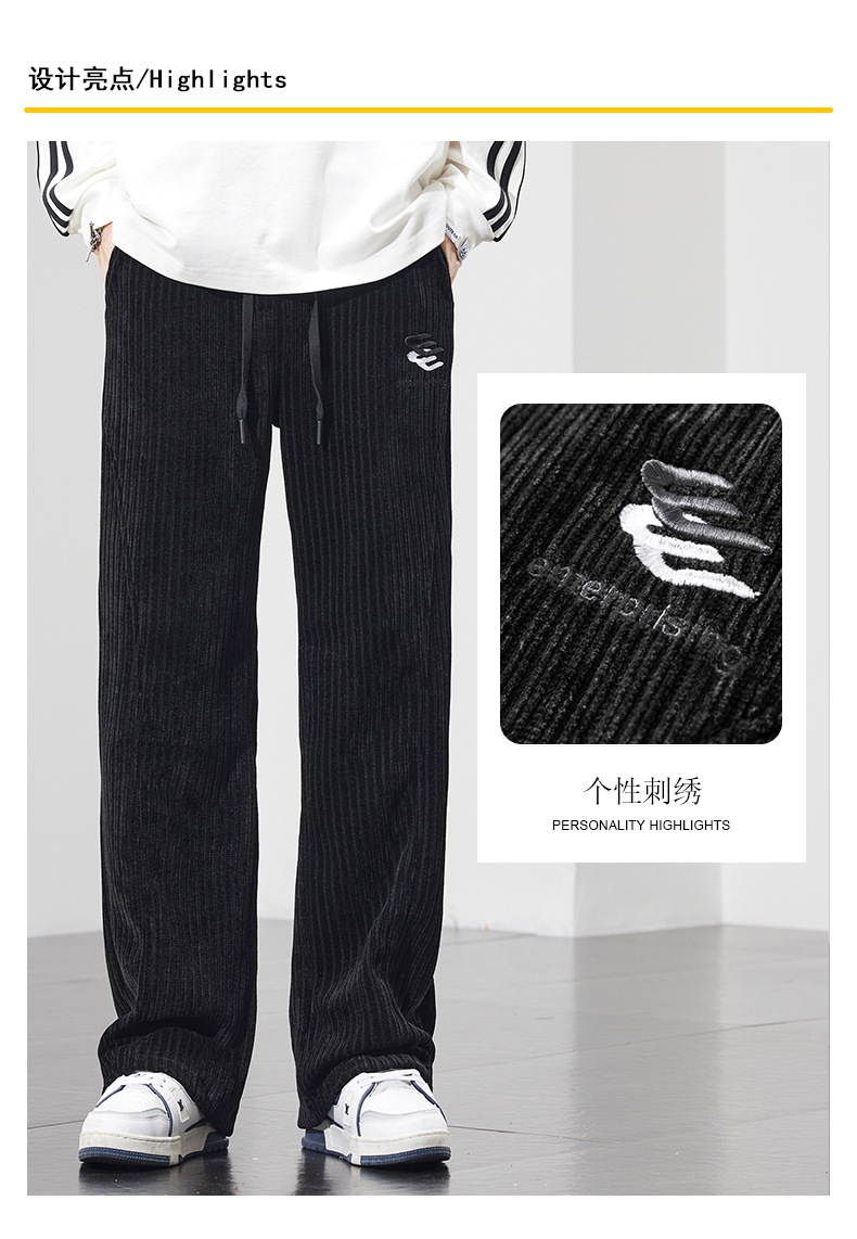 새로운 봄과 가을 코듀로이 바지 남성 자수 편안한 올 매치 패션 트렌드 청소년 스트레이트 캐주얼 바지스토어 가기