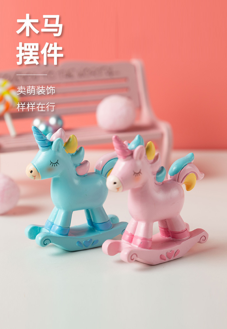 수지 장식품 유니콘 생일 케이크 장식 장식품 무지개 흔들 말 손 파티 수지 창조적 인 장식품스토어 가기