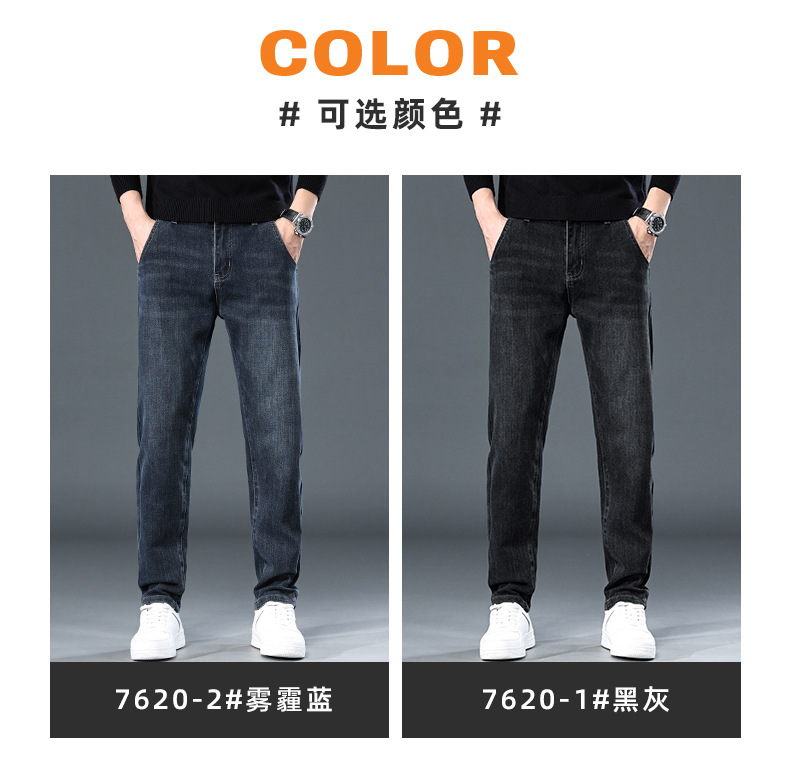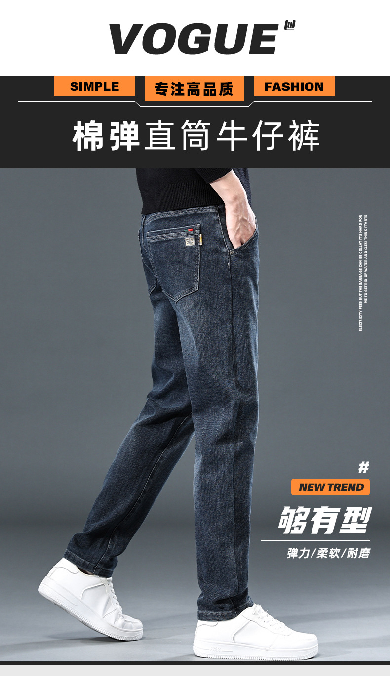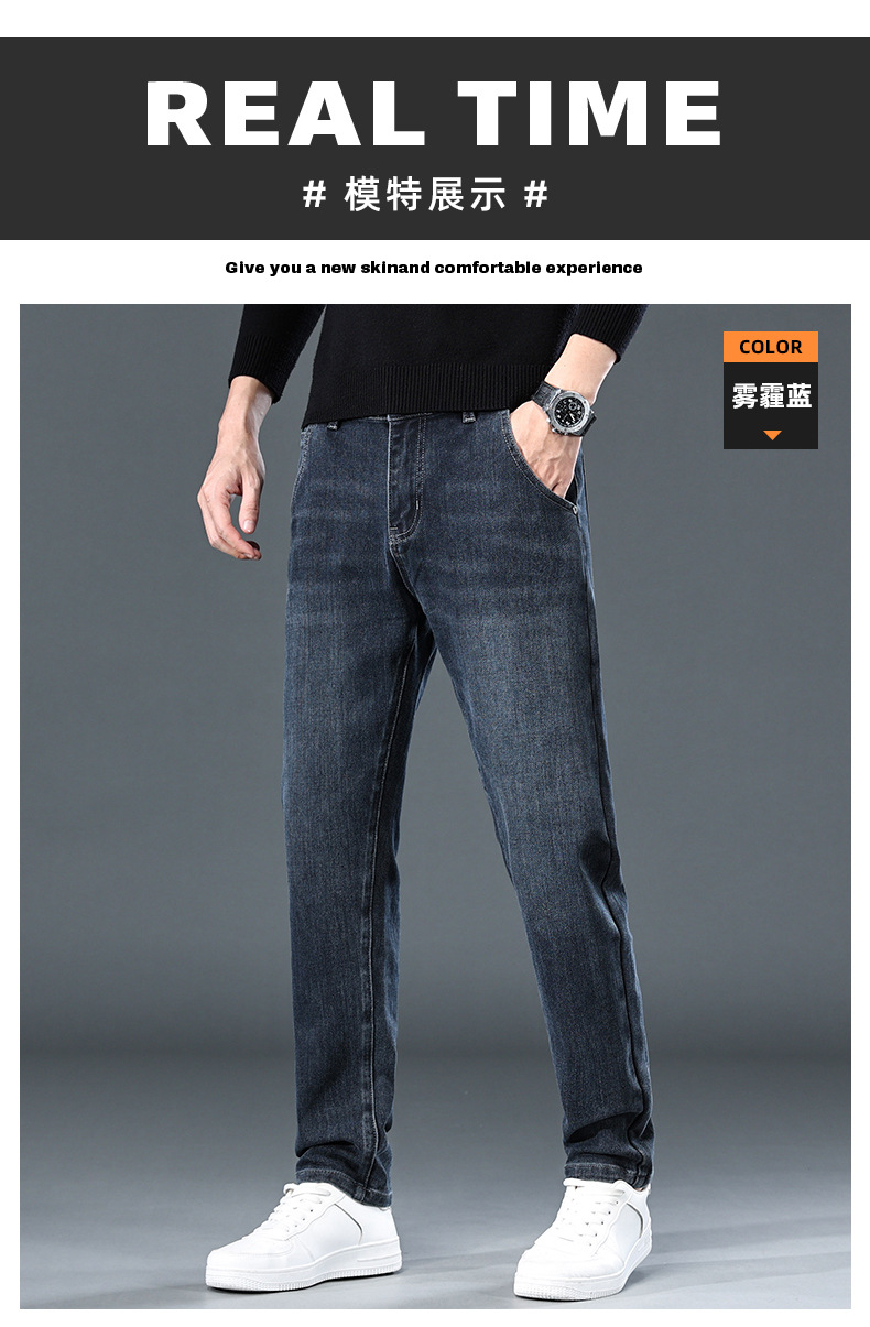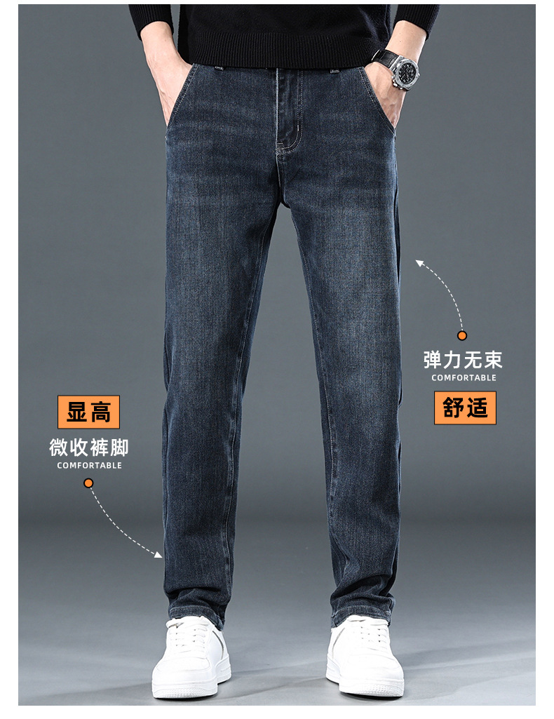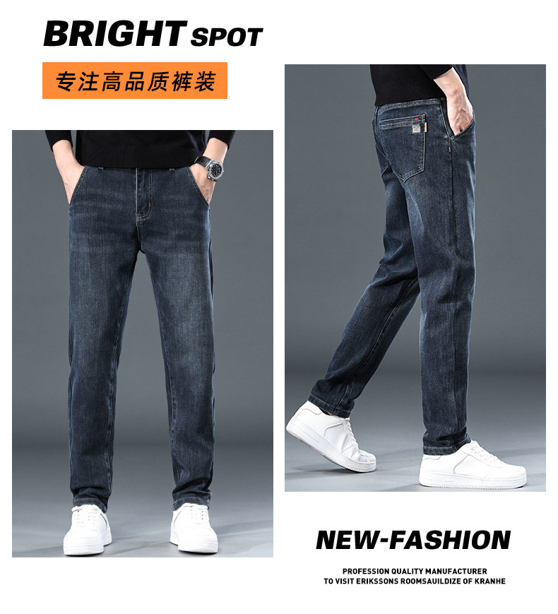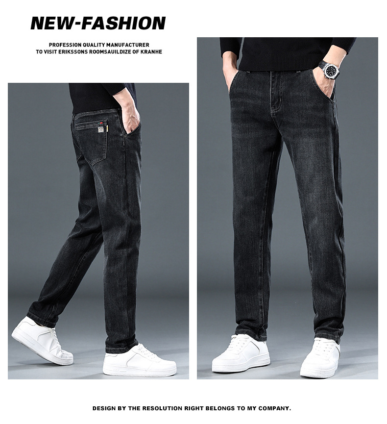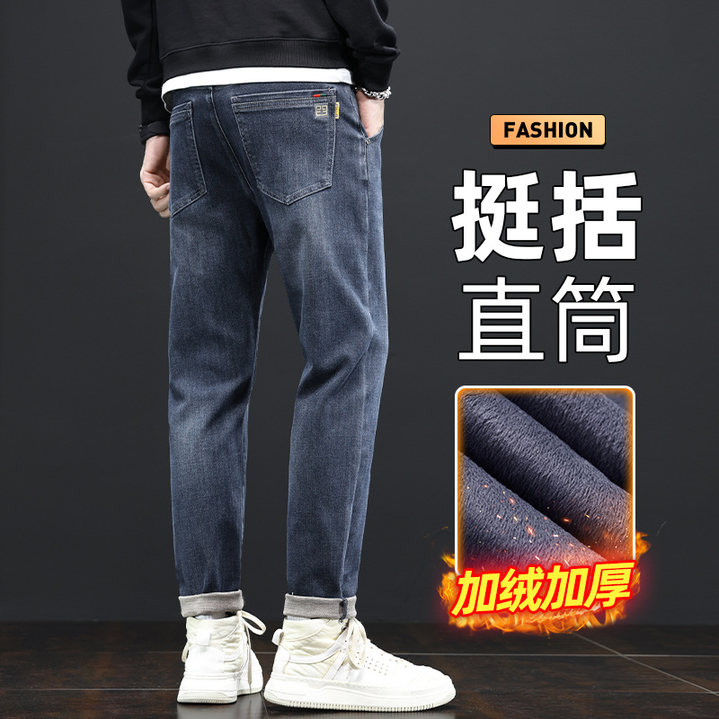 청바지의 2024 년 새로운 탄성 슬림 핏 스트레이트 루즈 캐주얼 바지 기모 남자 바지 가을과 겨울 기모스토어 가기
