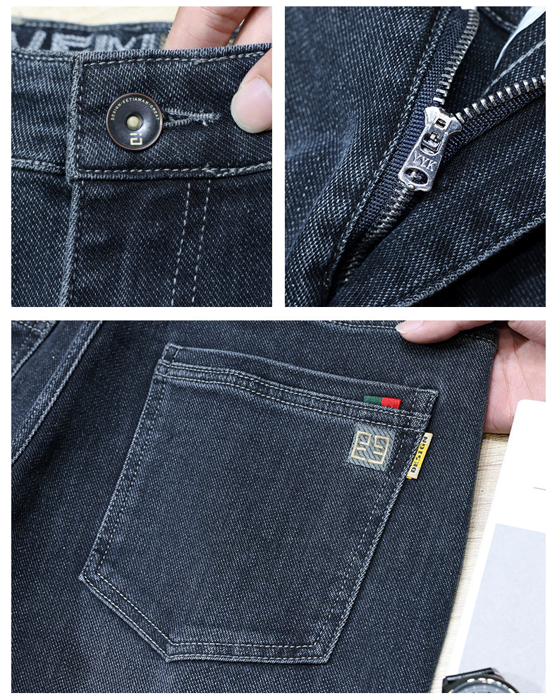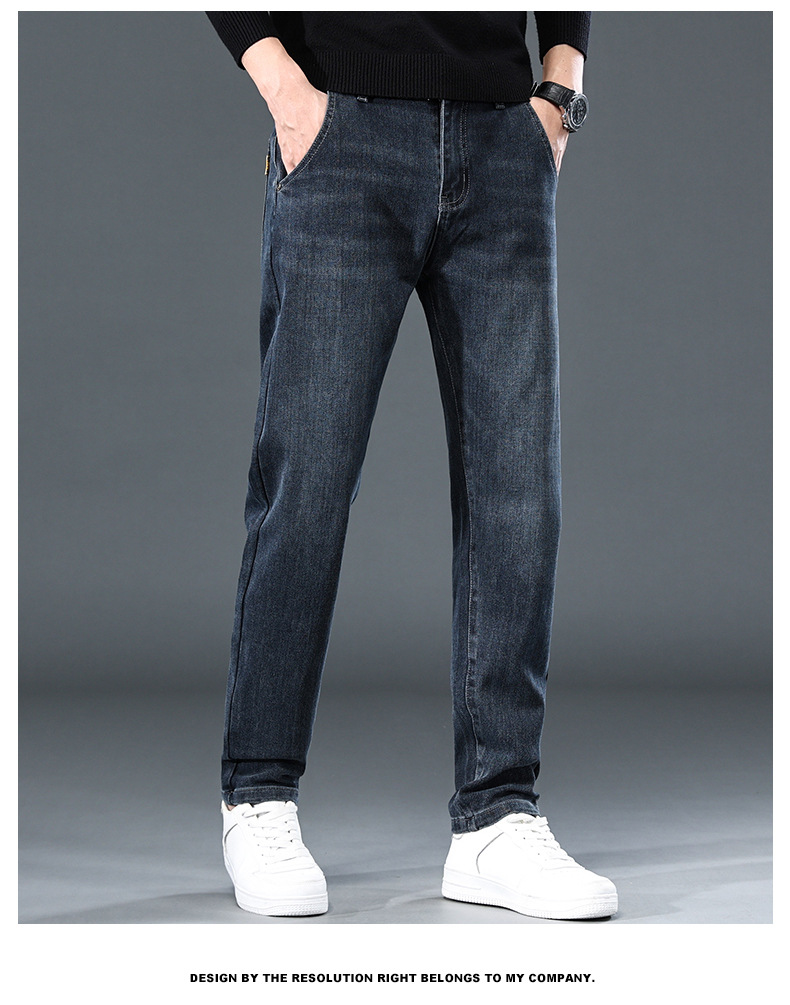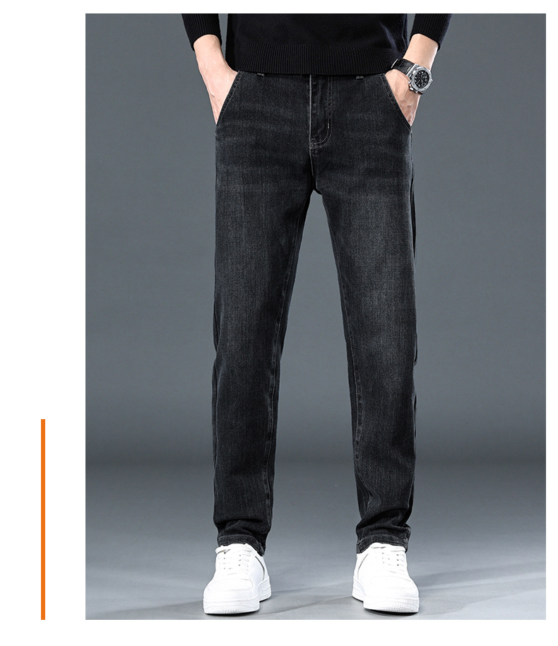 청바지의 2024 년 새로운 탄성 슬림 핏 스트레이트 루즈 캐주얼 바지 기모 남자 바지 가을과 겨울 기모