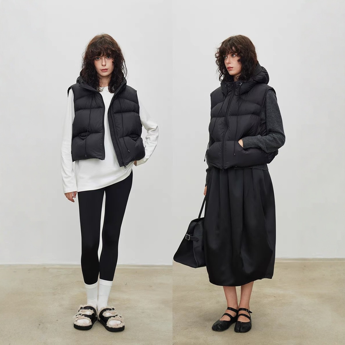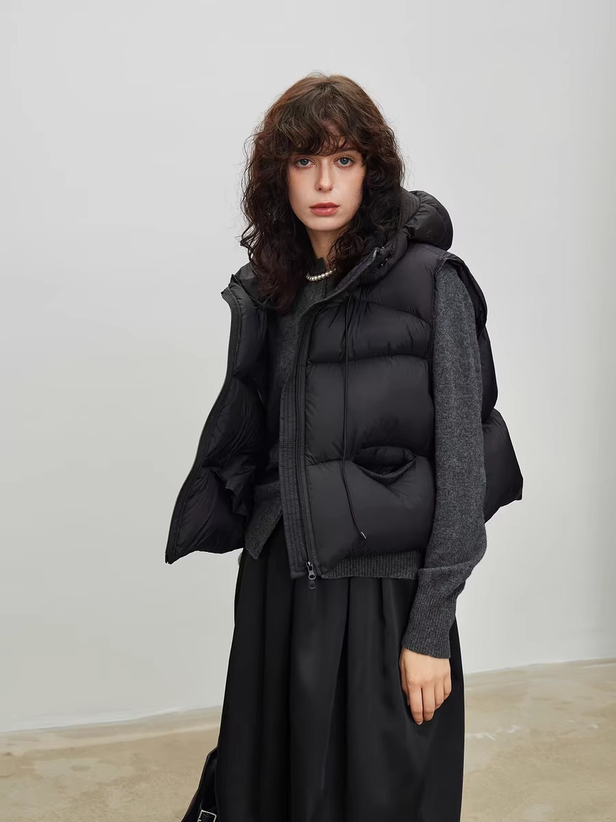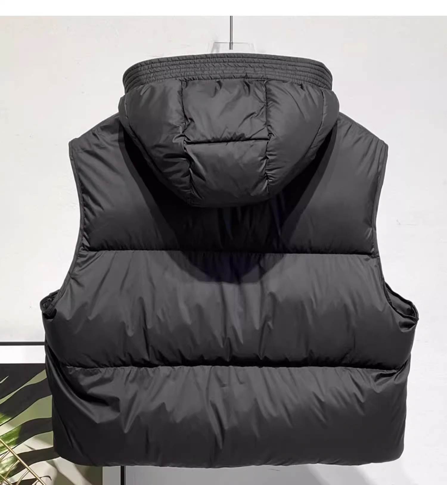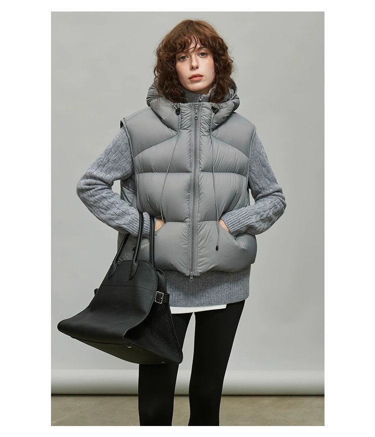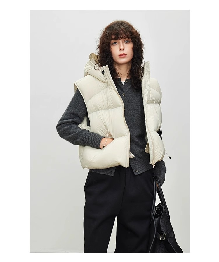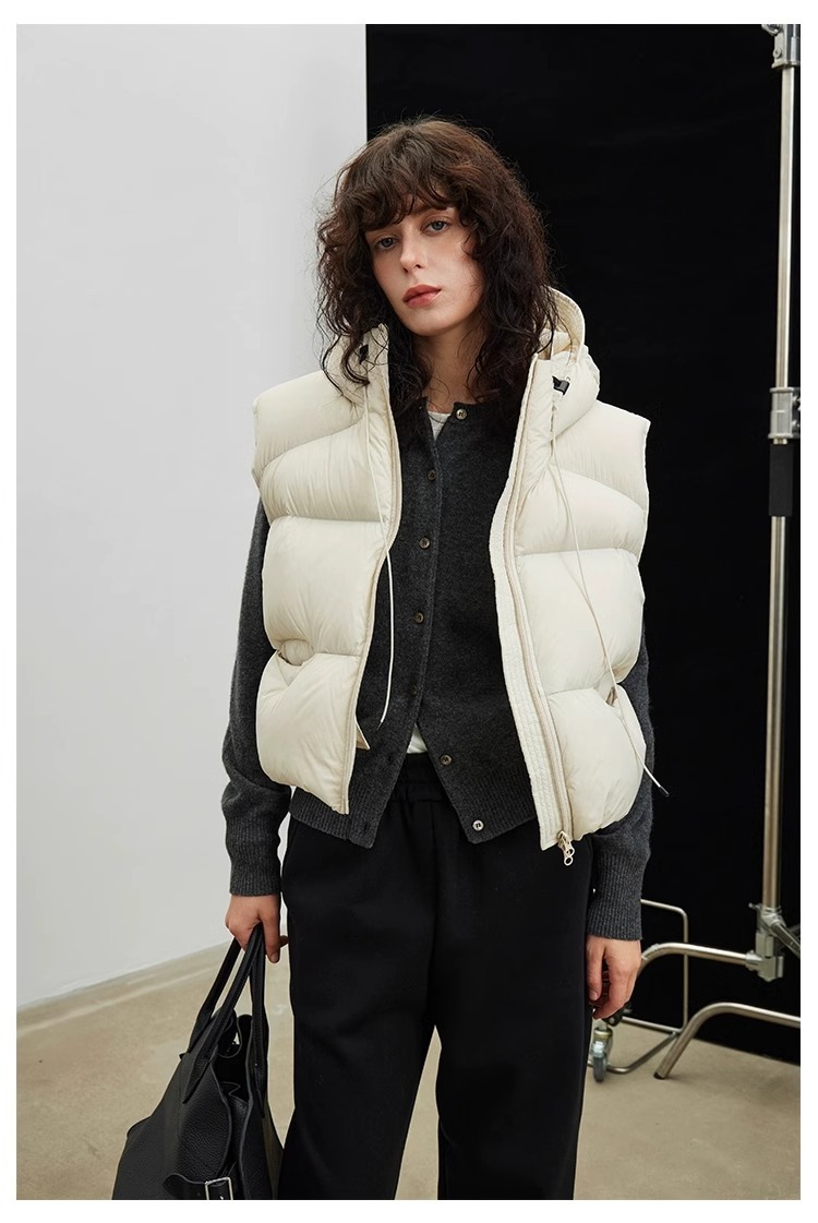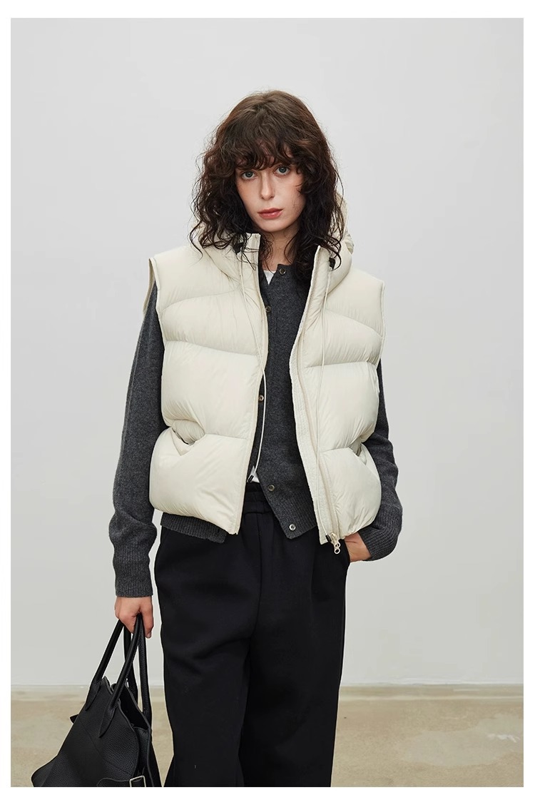 여성용 거위털 다운 조끼 2025 가을 겨울 패션 고급스러운 퍼프 느낌 후드 조끼 외투 두꺼운 조끼 트렌디스토어 가기