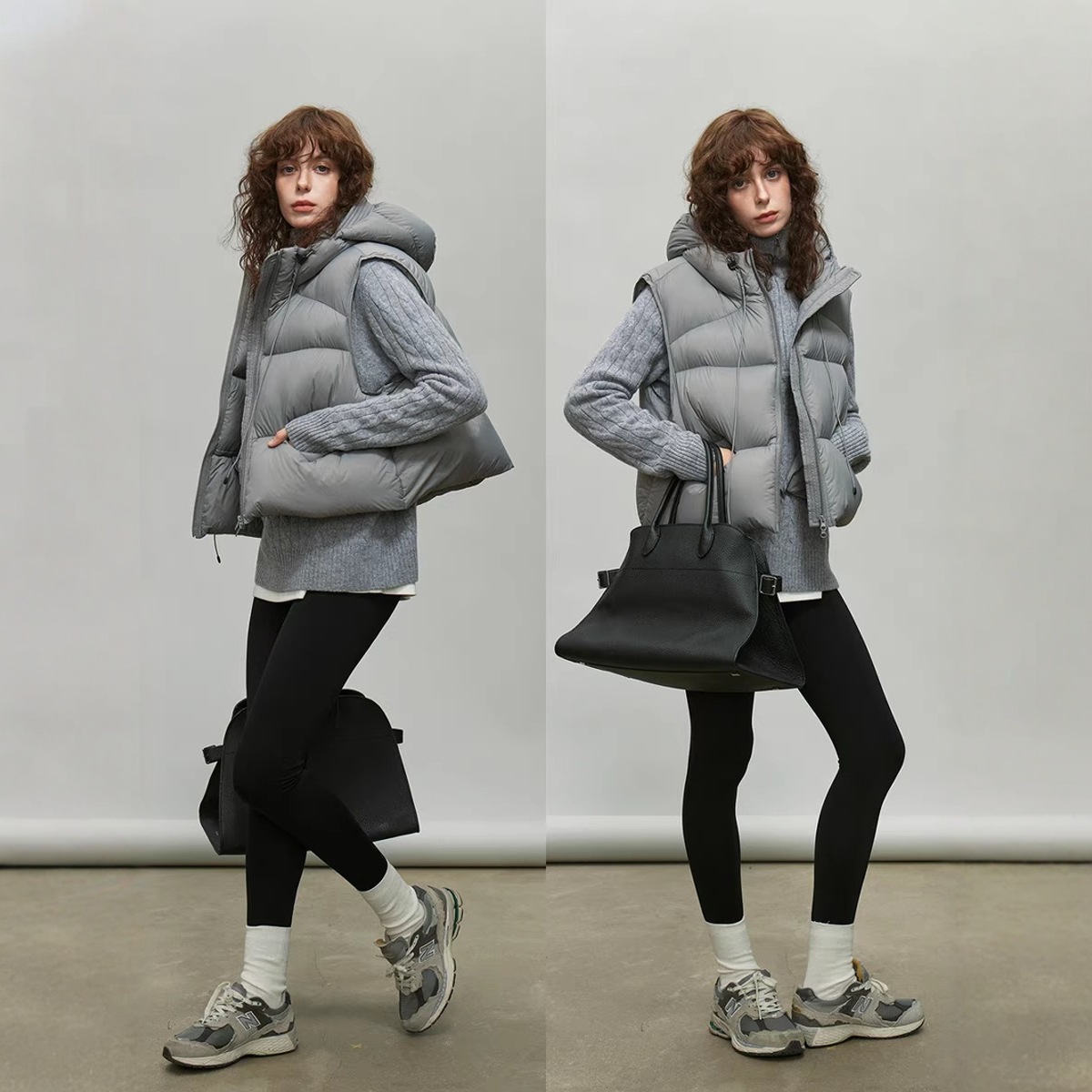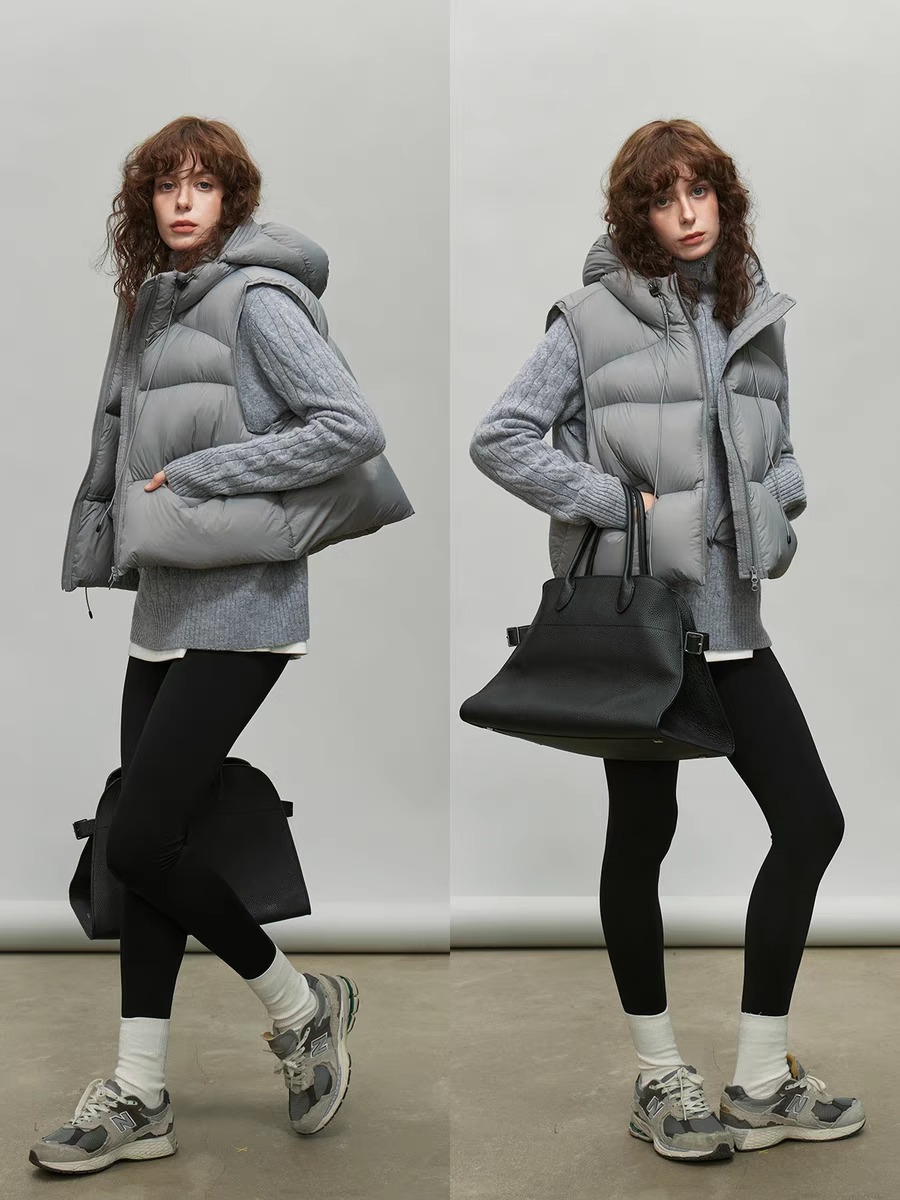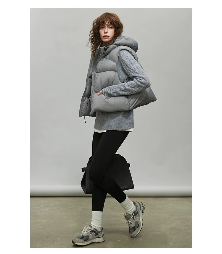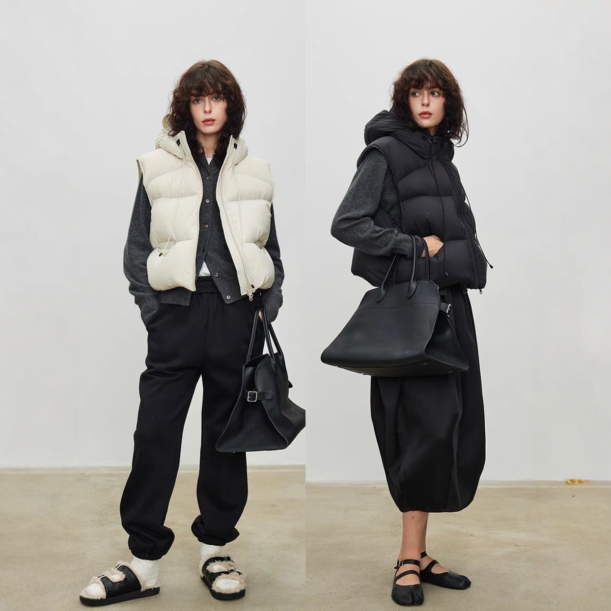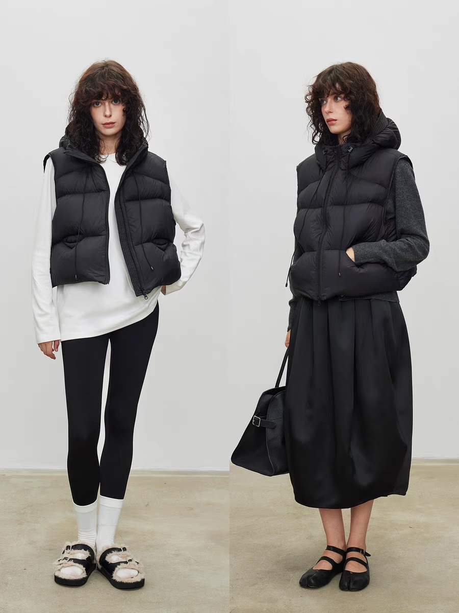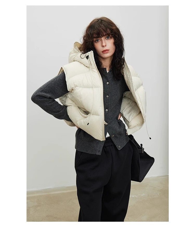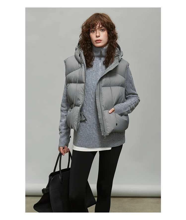 여성용 거위털 다운 조끼 2025 가을 겨울 패션 고급스러운 퍼프 느낌 후드 조끼 외투 두꺼운 조끼 트렌디스토어 가기