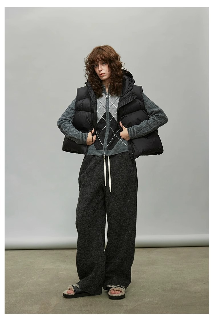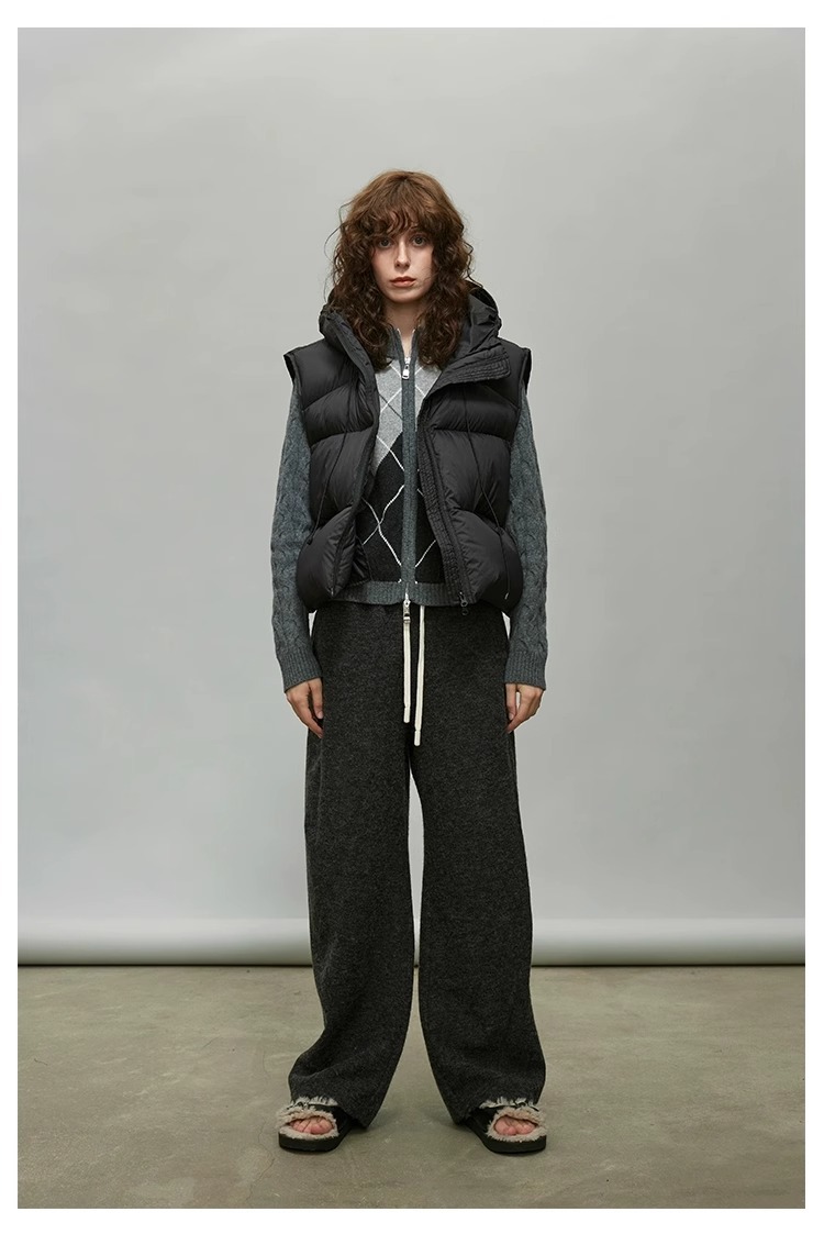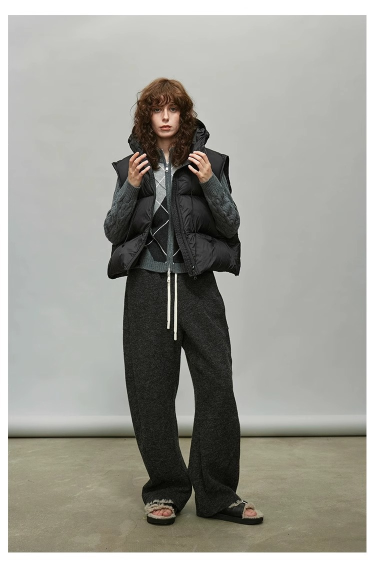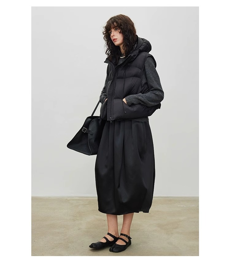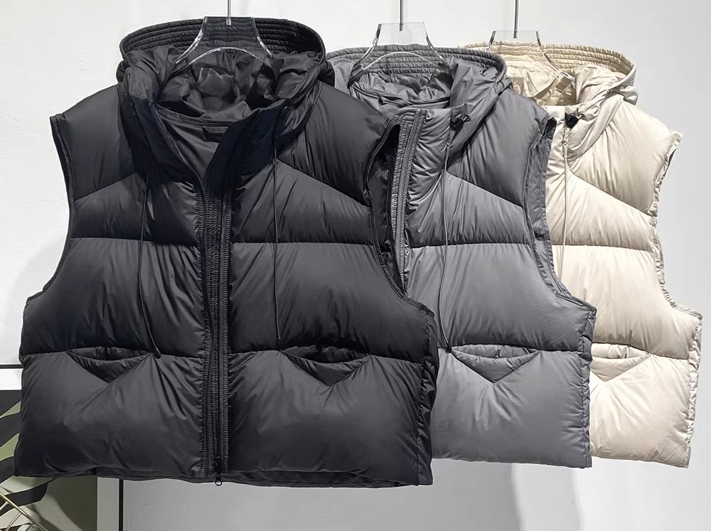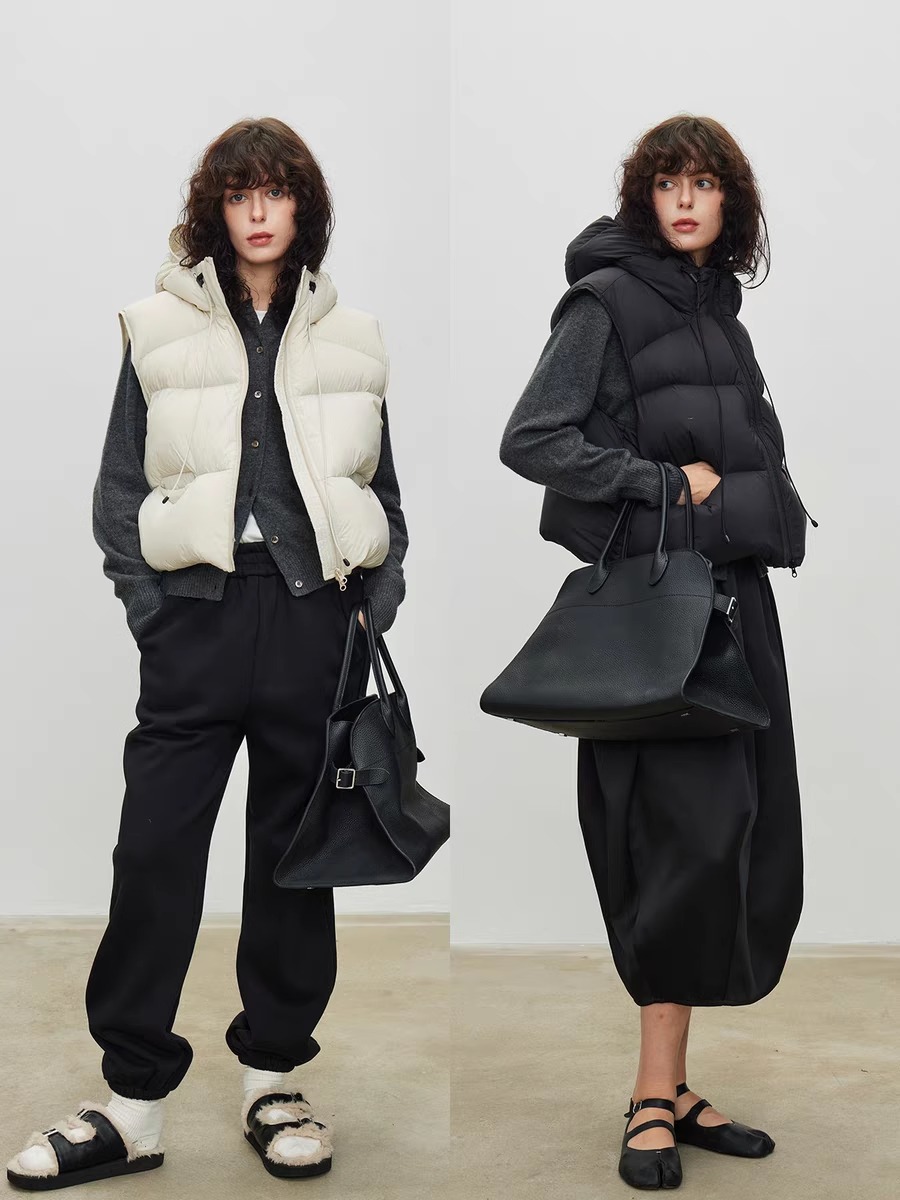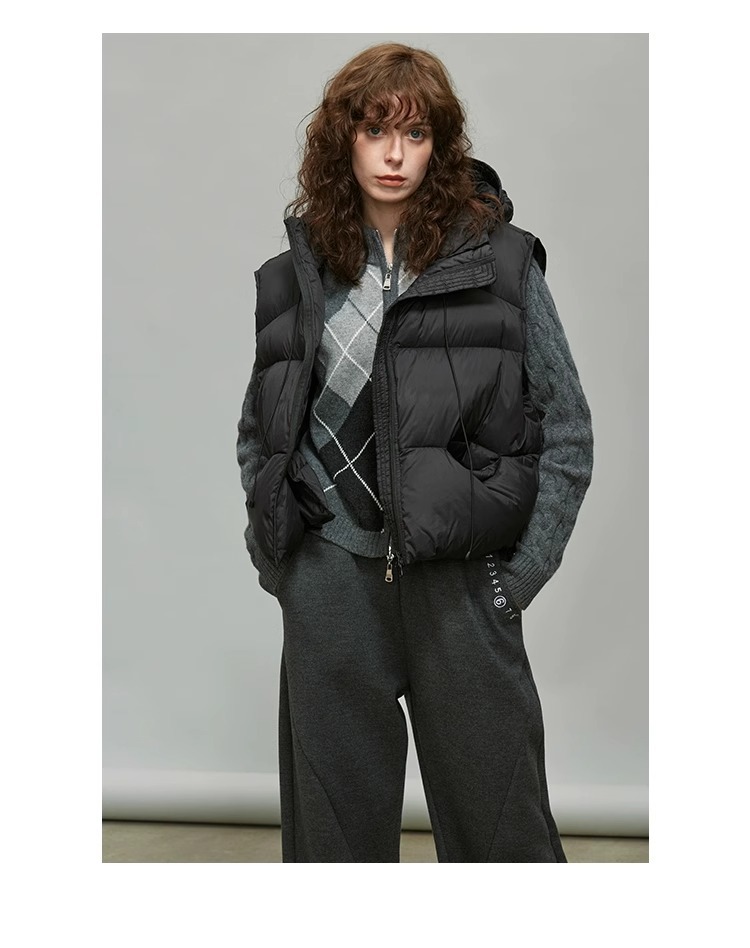 여성용 거위털 다운 조끼 2025 가을 겨울 패션 고급스러운 퍼프 느낌 후드 조끼 외투 두꺼운 조끼 트렌디스토어 가기