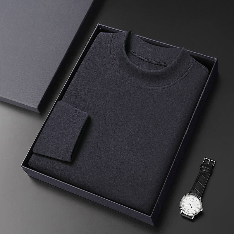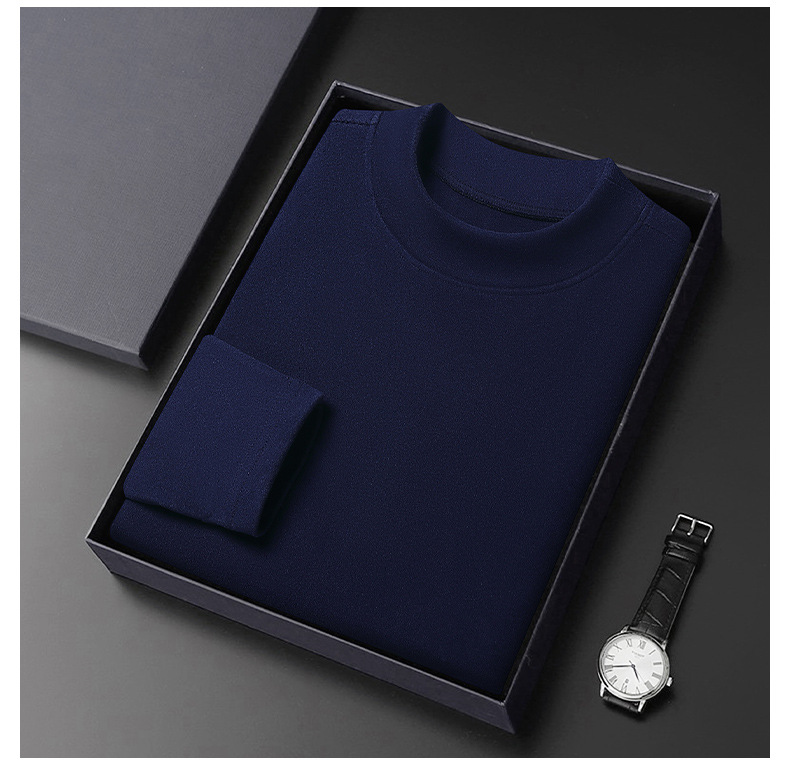 남자 가을과 겨울 긴팔 양면 벨벳 모크 하이 칼라 솔리드 컬러 한국 스타일 패셔너블 올 매치 스택 중년 및 젊은이들의 베이스 땀스토어 가기