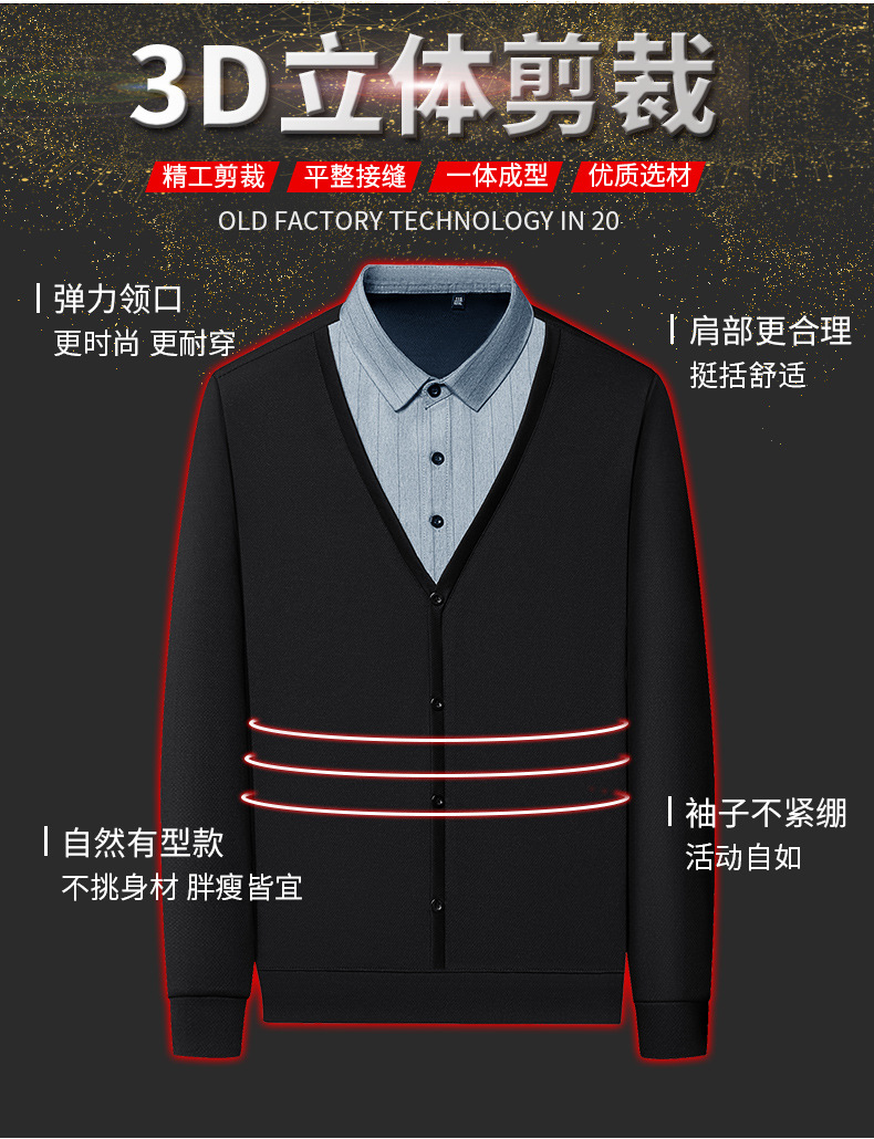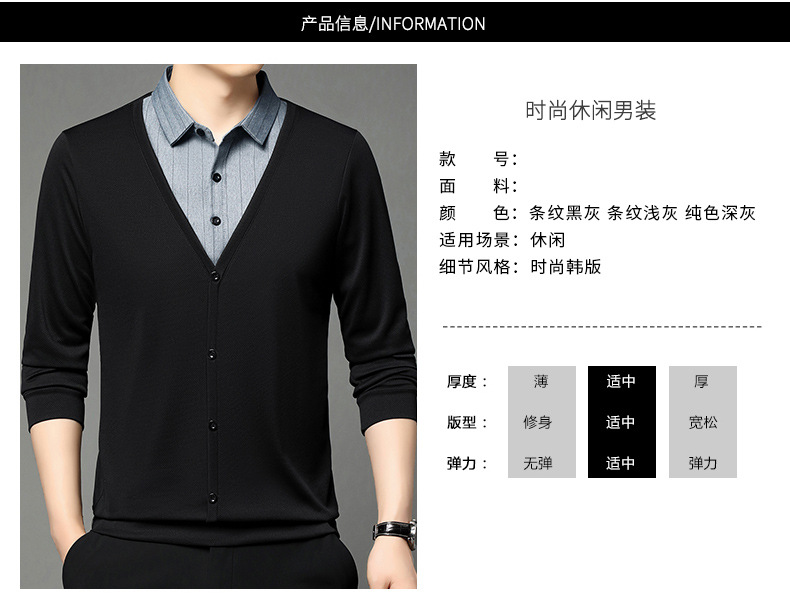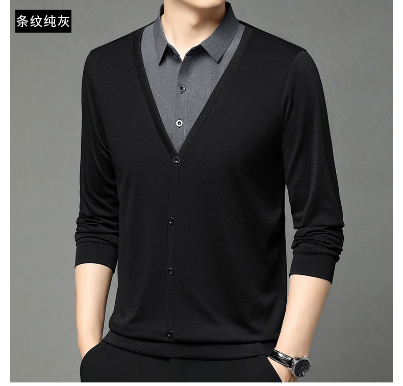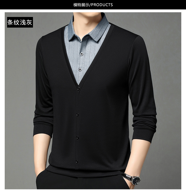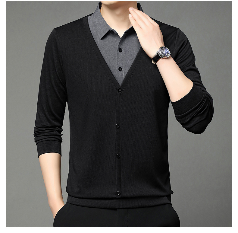 국경을 넘나 드는 봄과 가을 한국식 가짜 투피스 카디건 트렌디 긴팔 셔츠 바느질베이스 셔츠 캐주얼 청소년 아빠 셔츠
