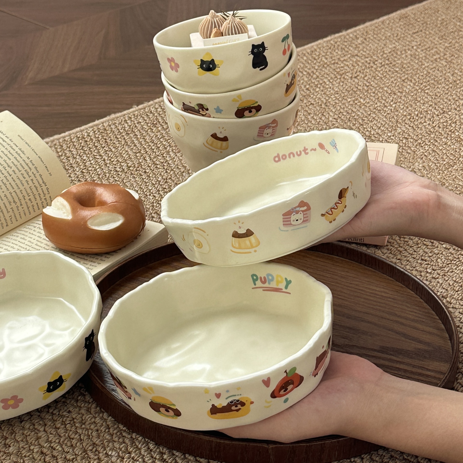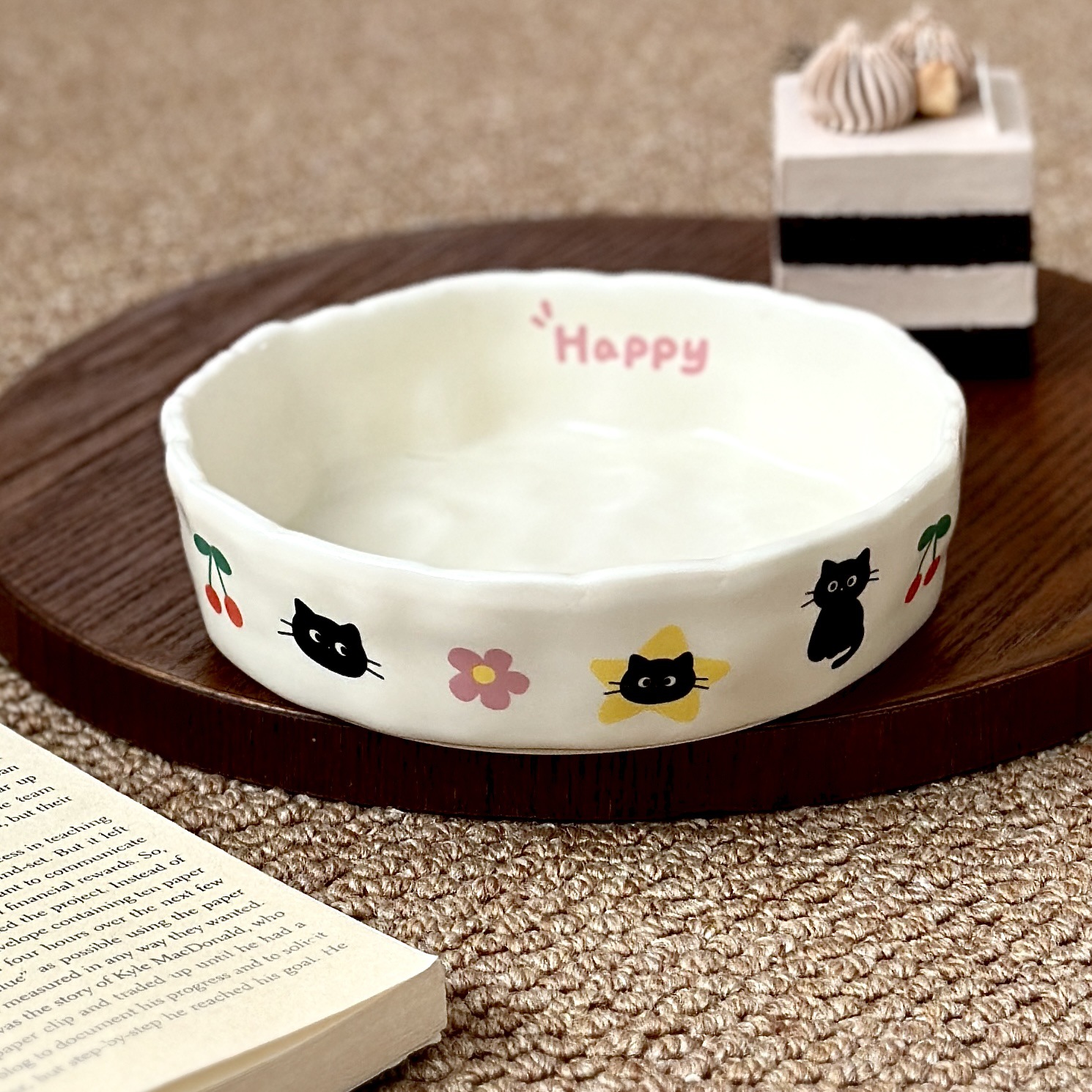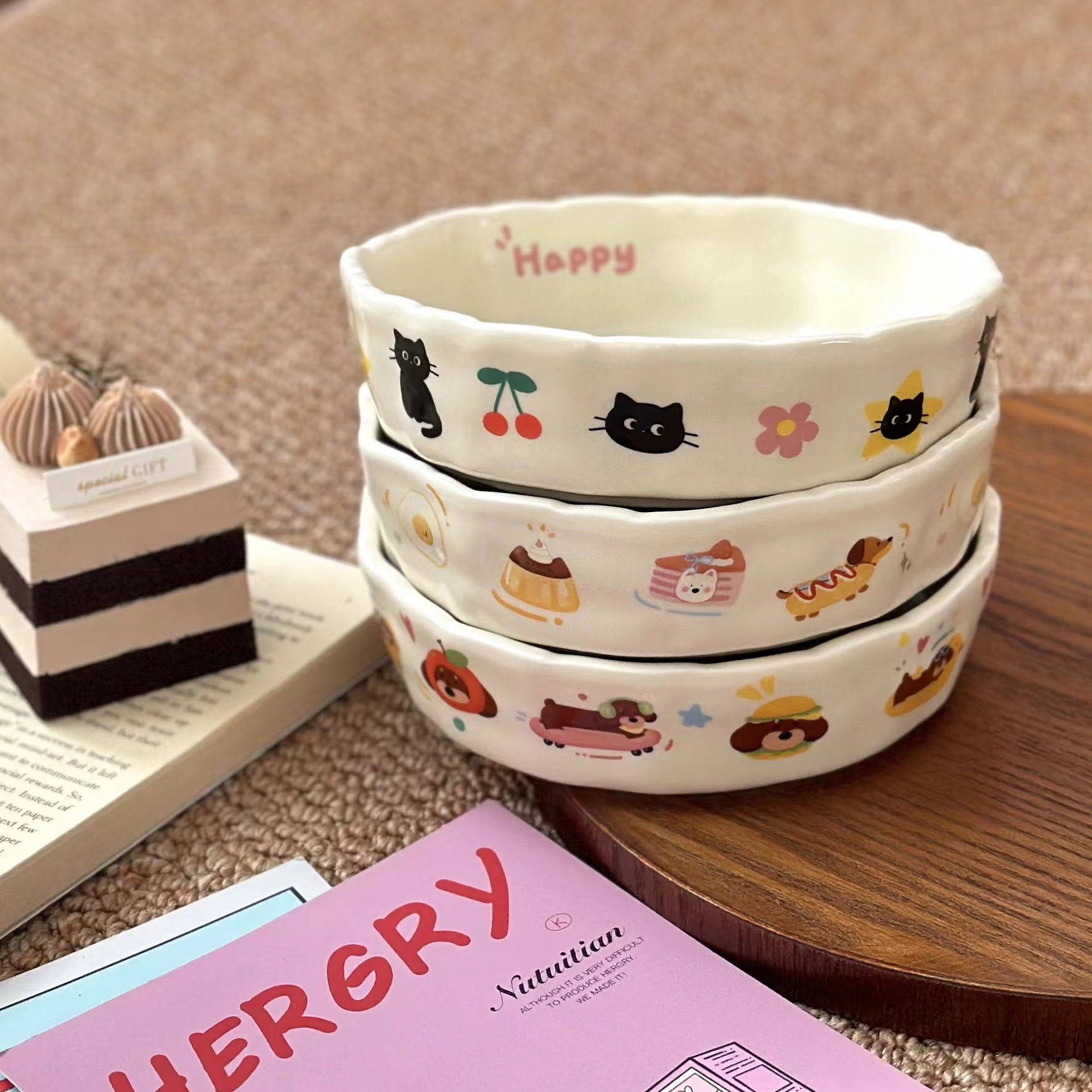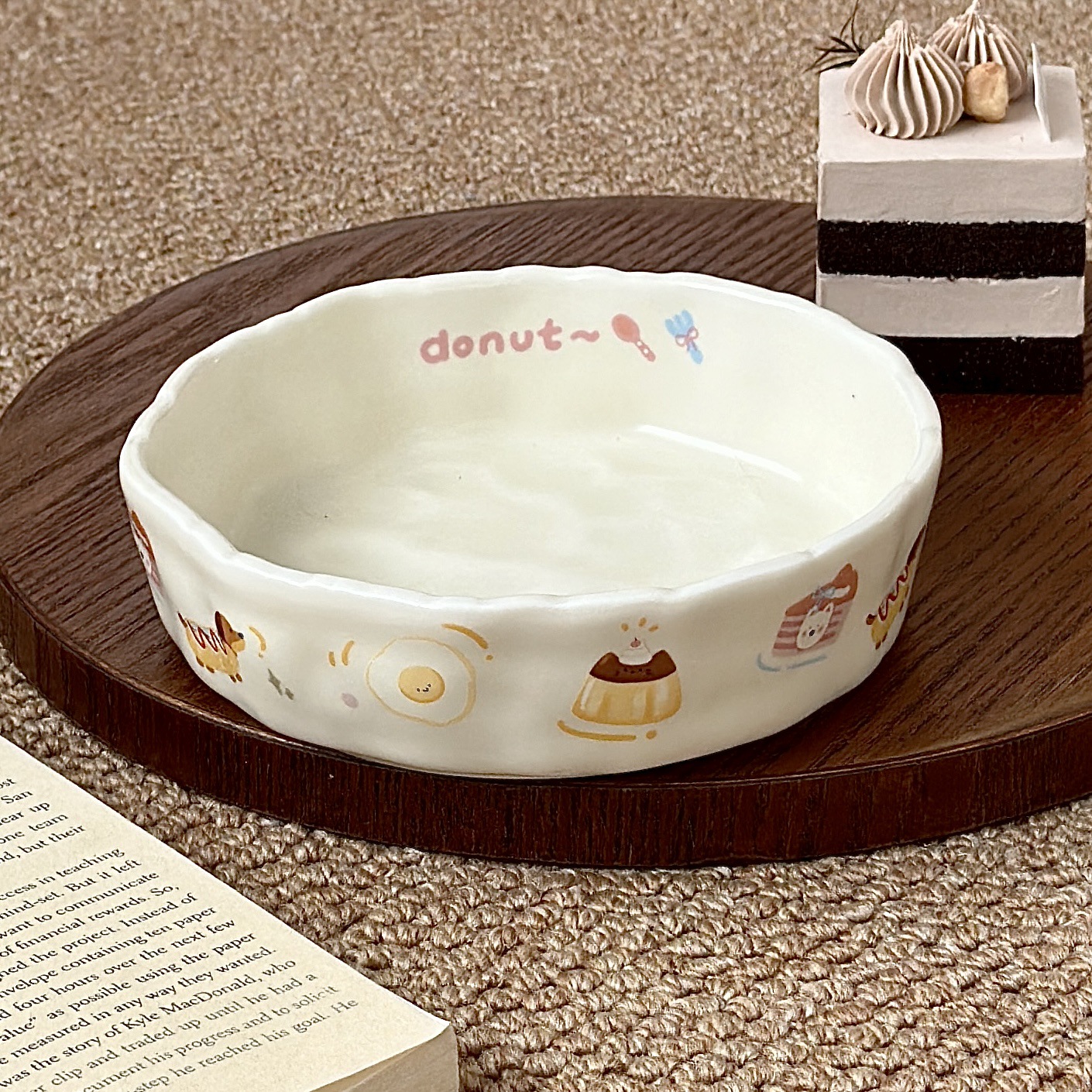 원래 새로운 도착 만화 귀여운 세라믹 손으로 짜낸 원형 접시 가정용 식기 접시 과일 접시스토어 가기