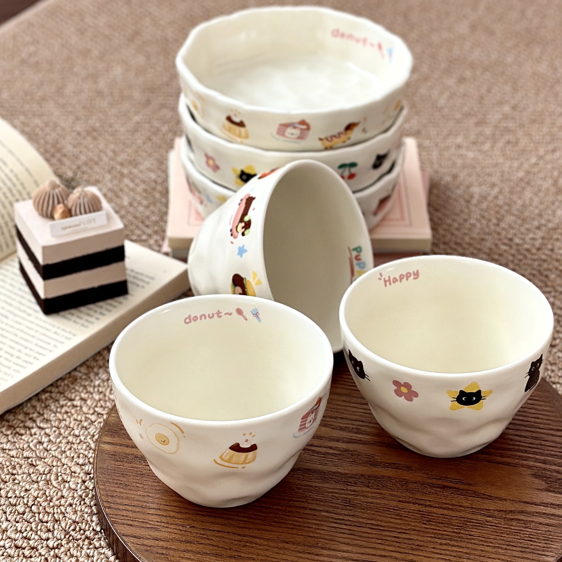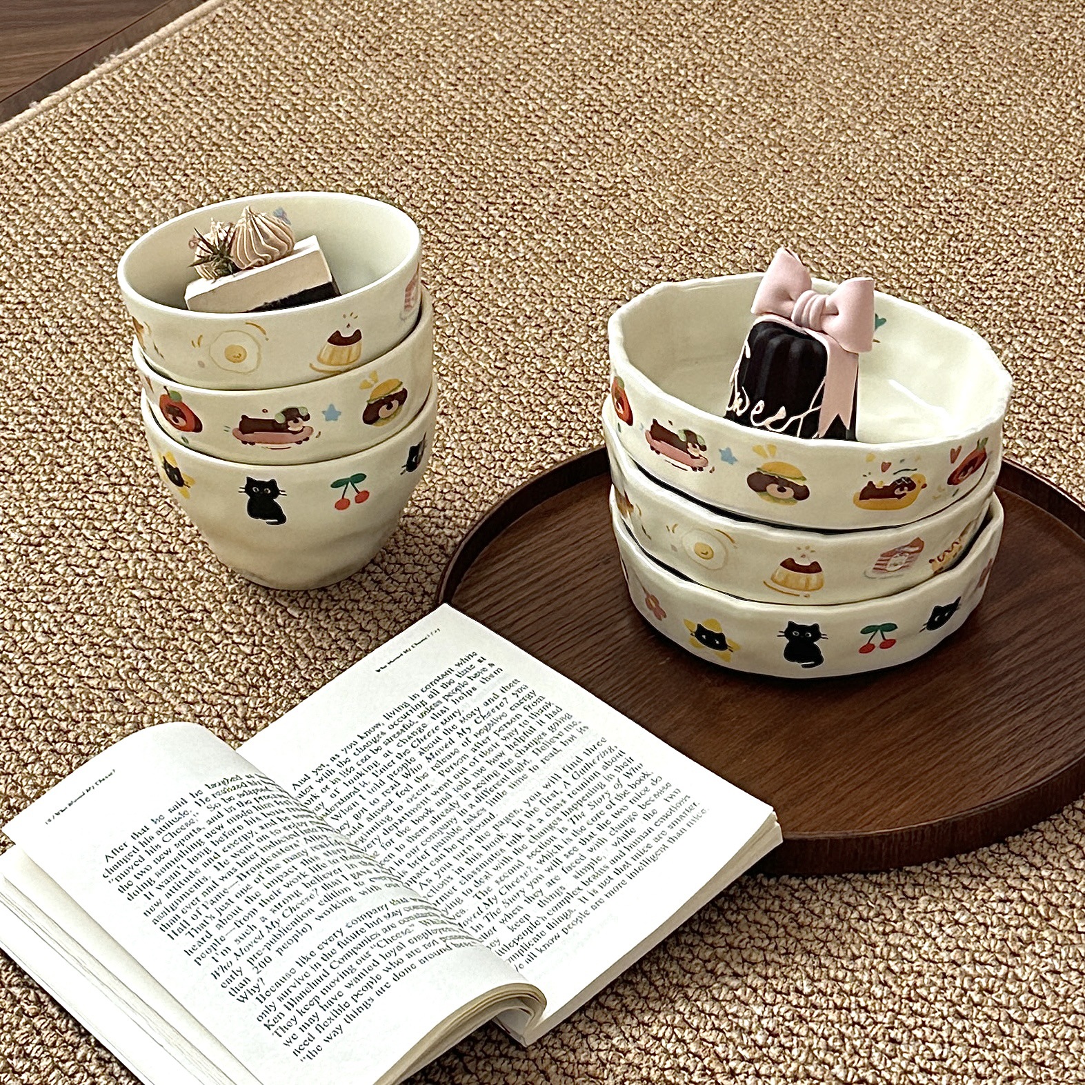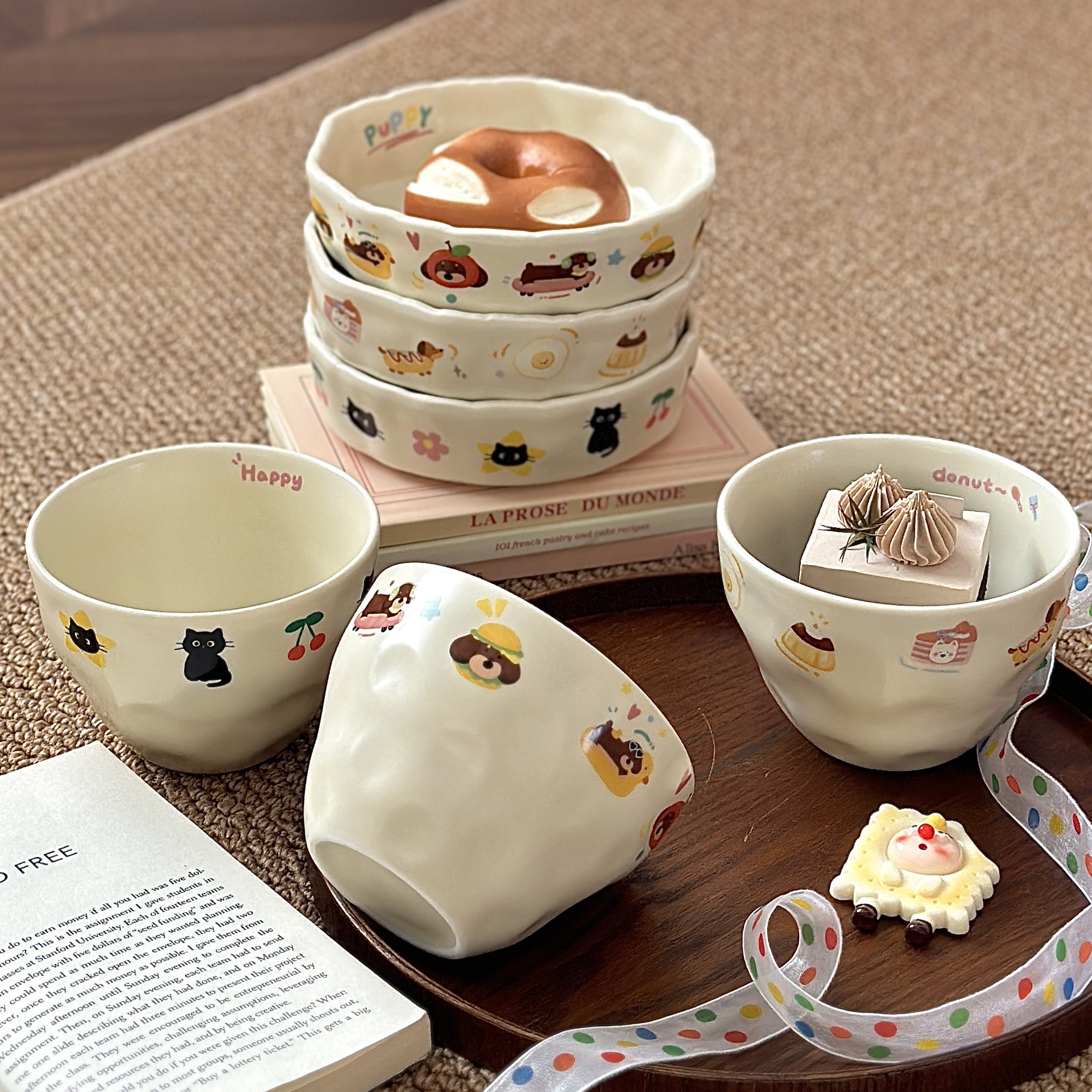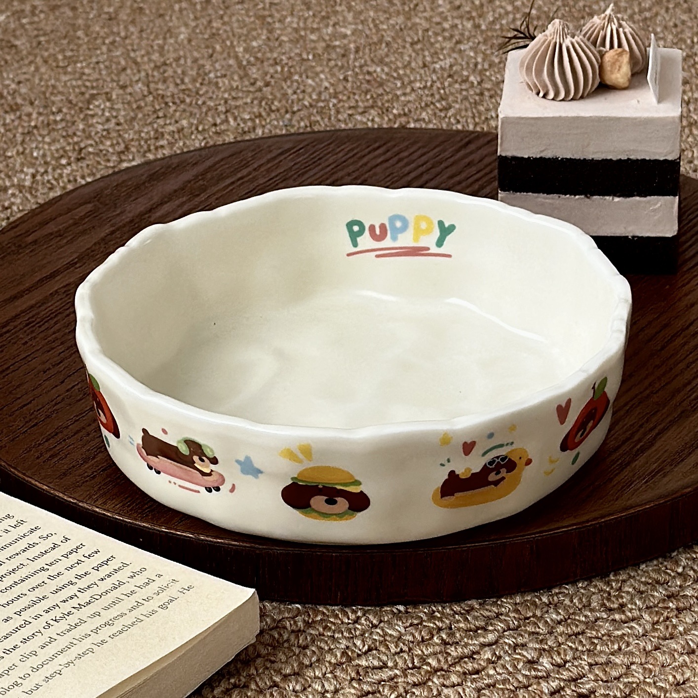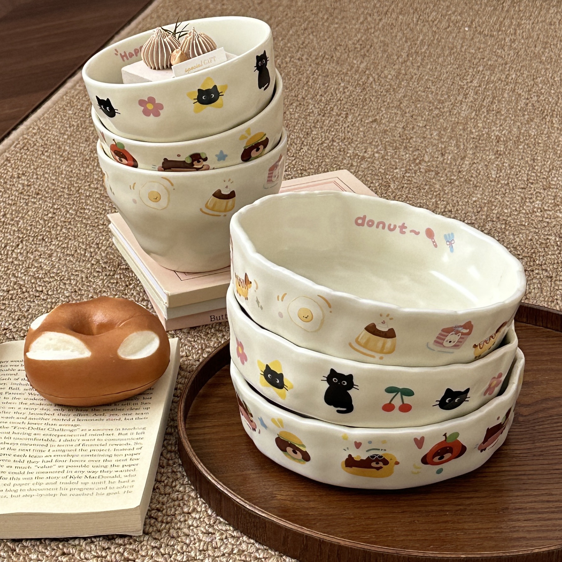 원래 새로운 도착 만화 귀여운 세라믹 손으로 짜낸 원형 접시 가정용 식기 접시 과일 접시스토어 가기