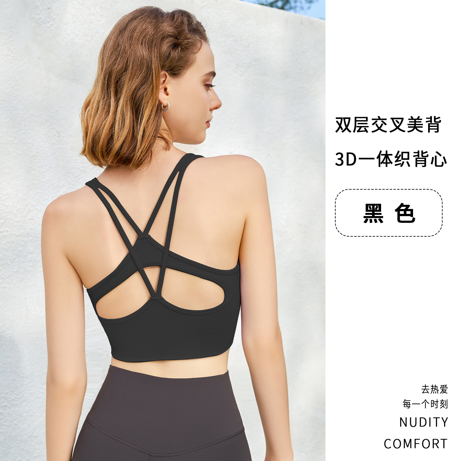 여름 국경 새로운 스파게티 스트랩 뷰티 조끼 스포츠 브래지어 여성의 중간 및 고강도 요가 착용 고정 컵 브래지어스토어 가기