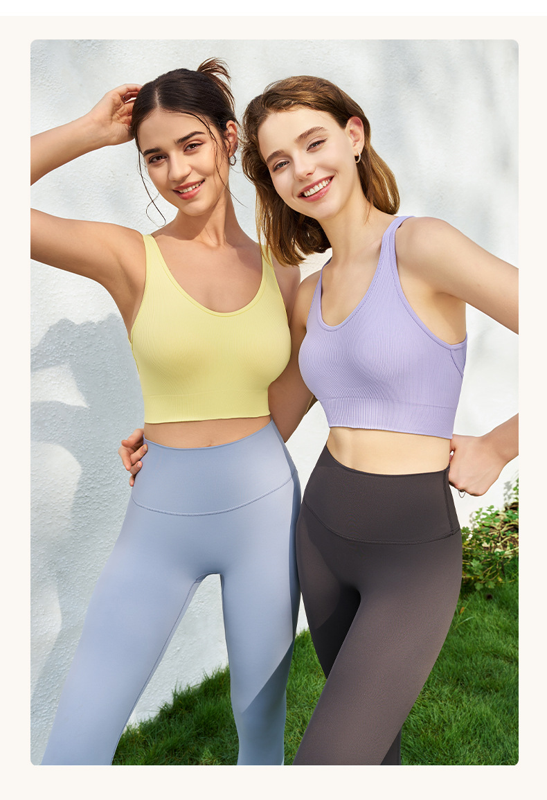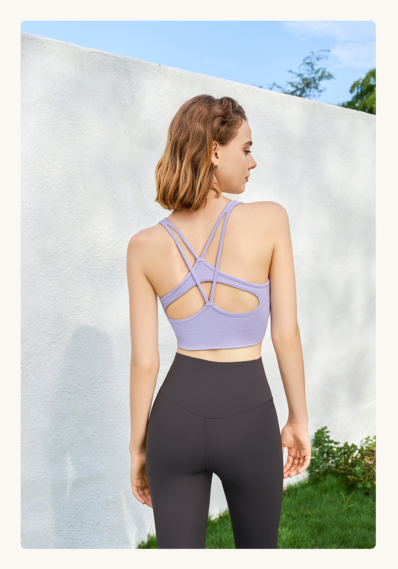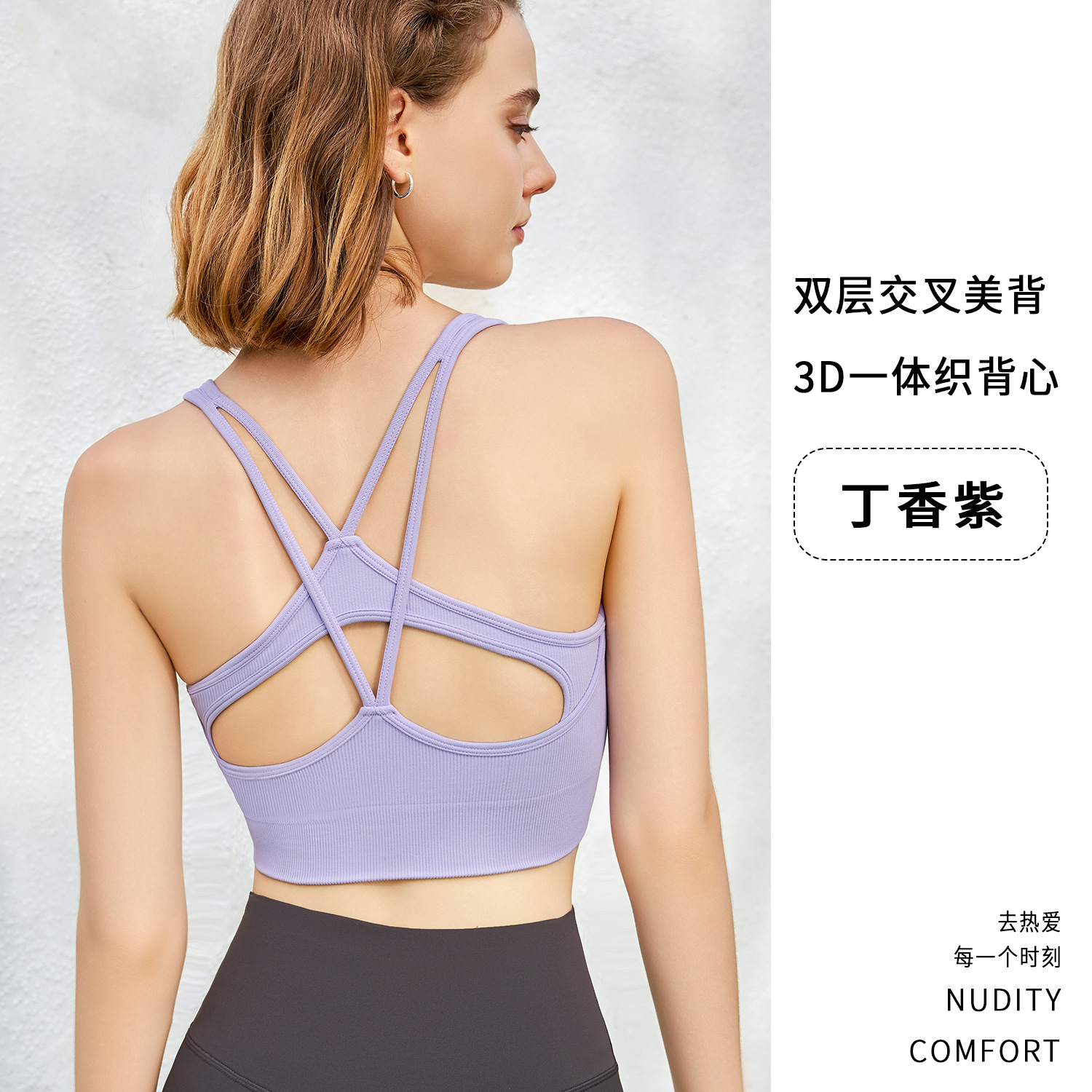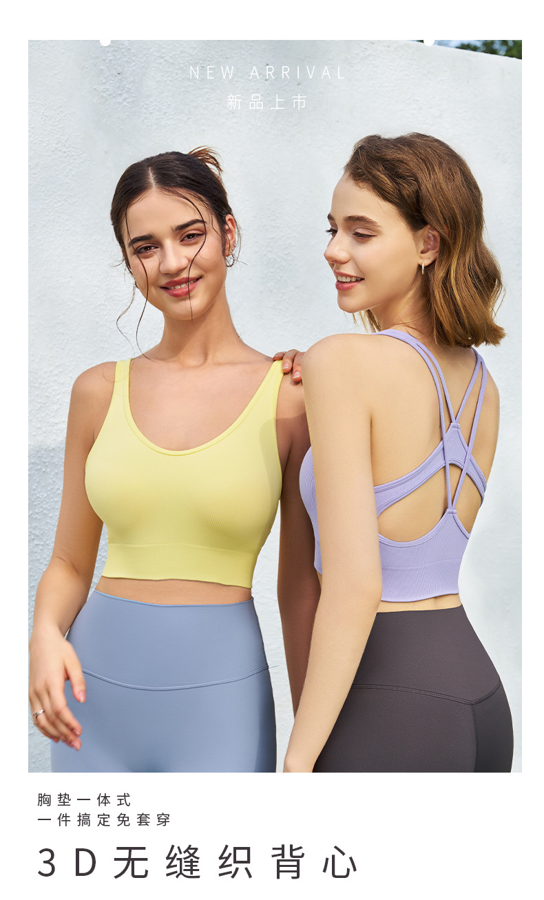 여름 국경 새로운 스파게티 스트랩 뷰티 조끼 스포츠 브래지어 여성의 중간 및 고강도 요가 착용 고정 컵 브래지어