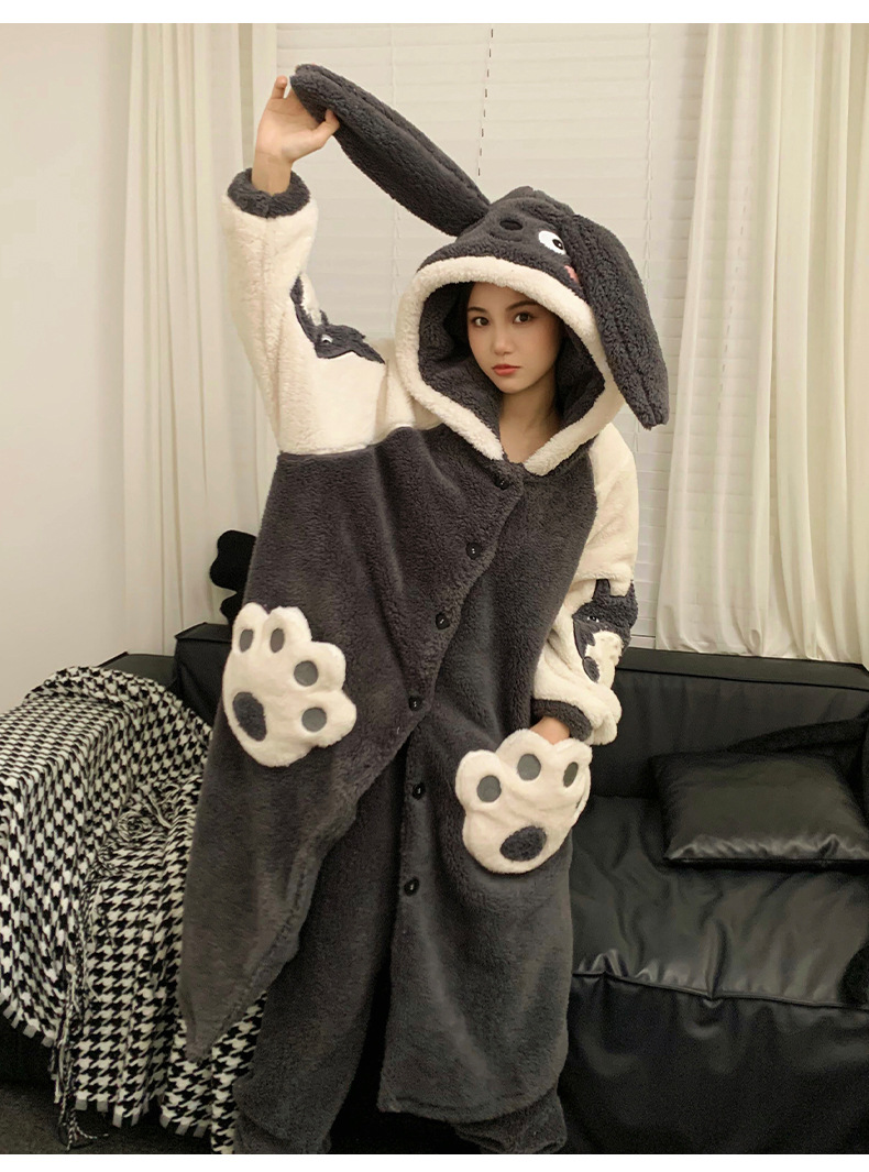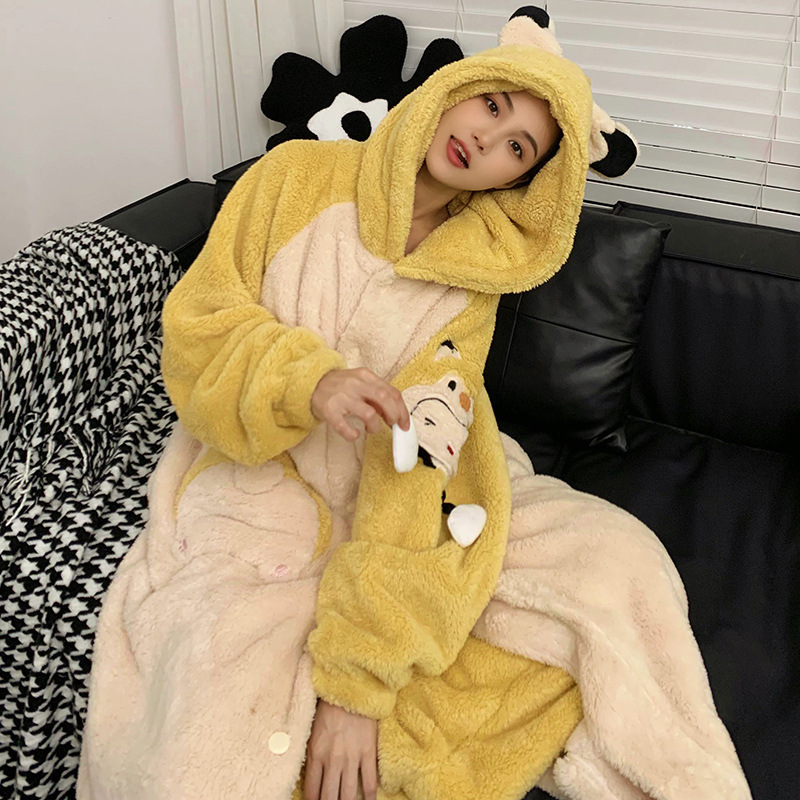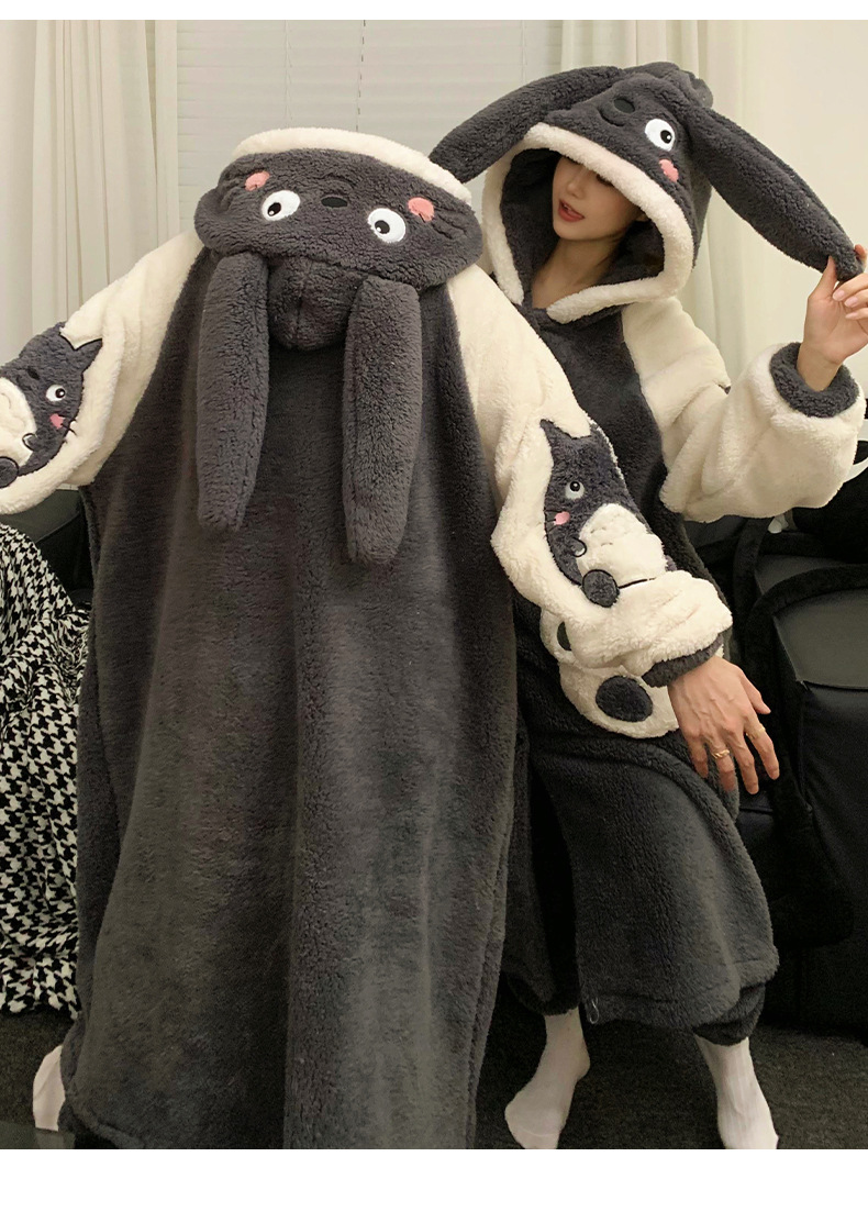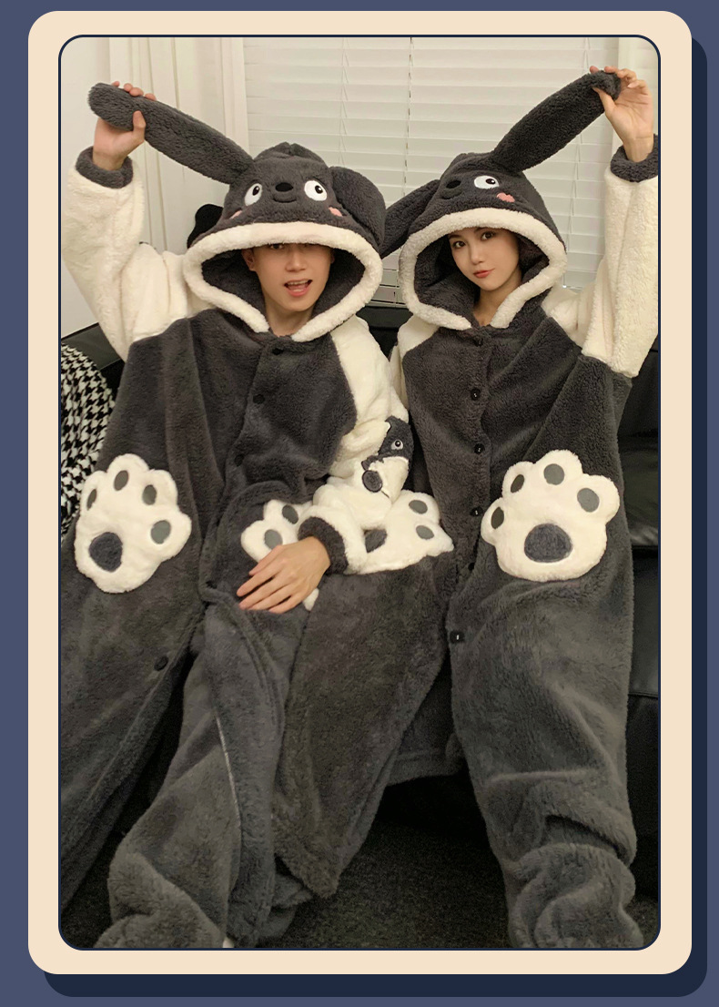 情侣睡衣男生秋冬季长毛绒加厚可爱女生卡通龙猫睡袍长款两件套