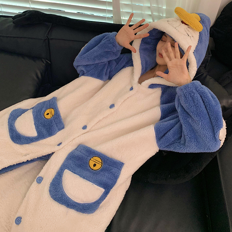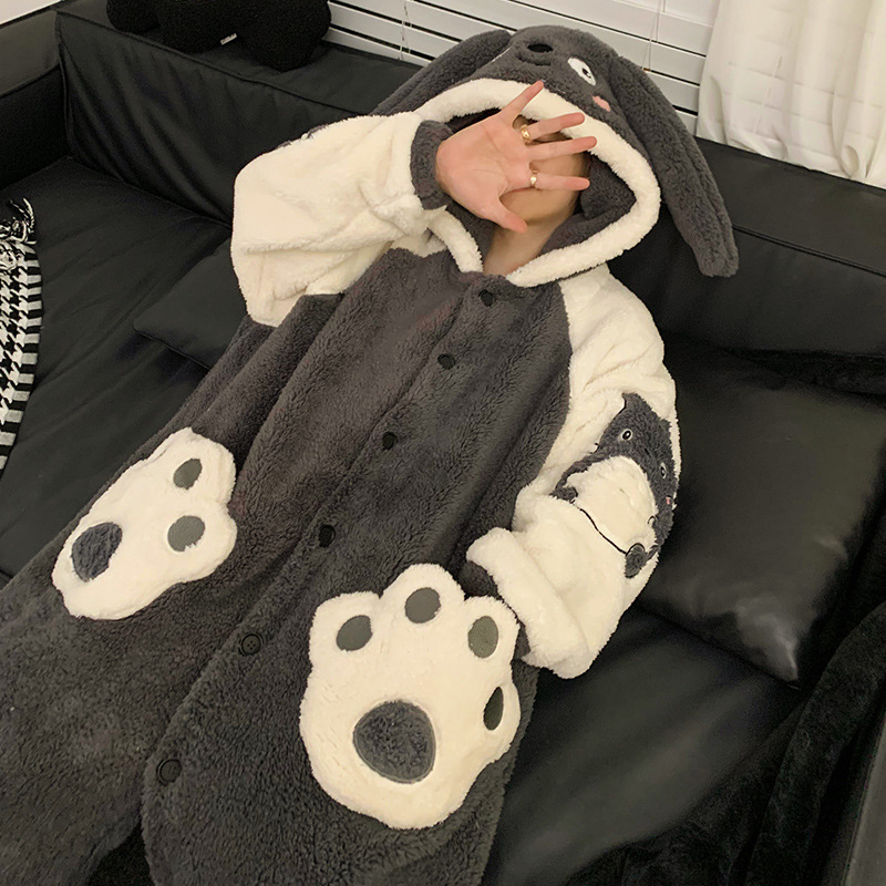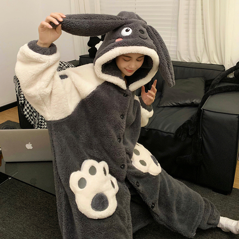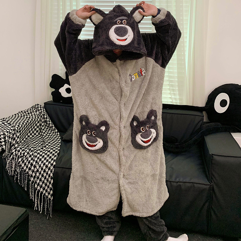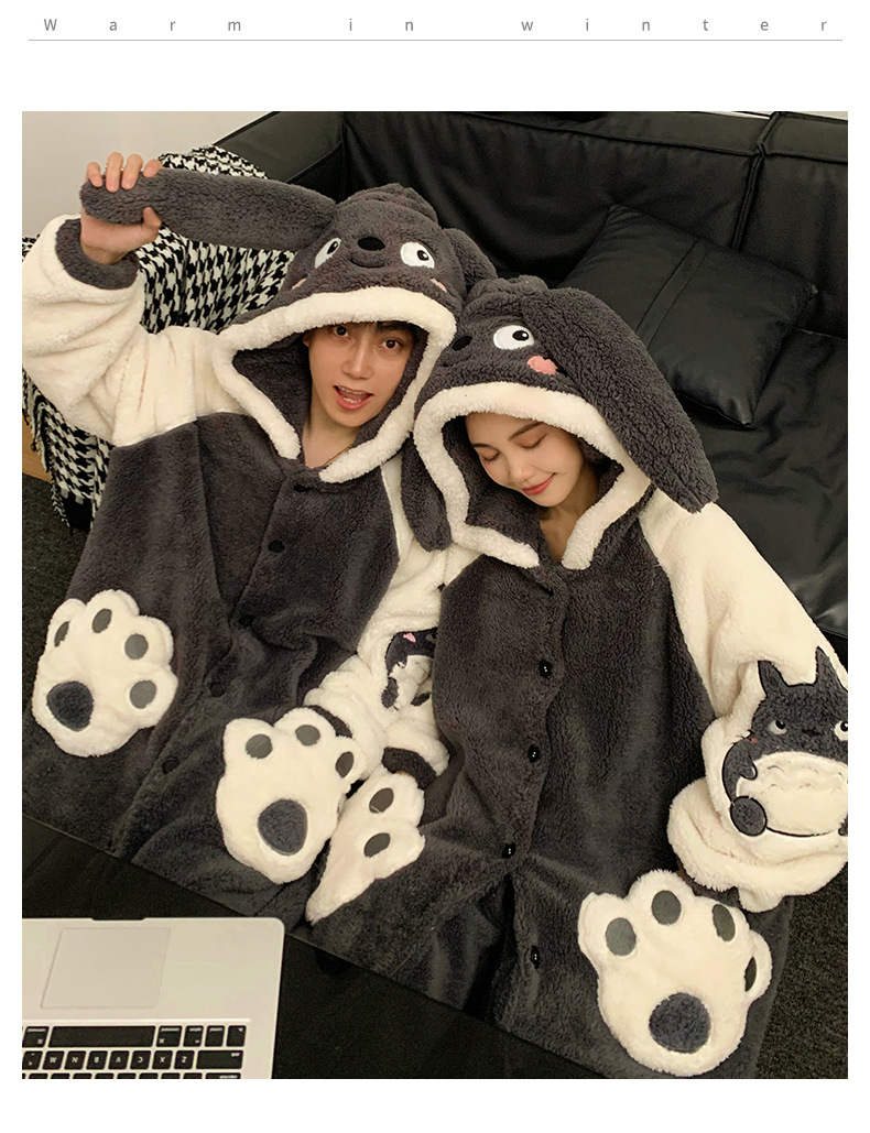 커플 잠옷 소년 가을과 겨울 봉제 두꺼운 귀여운 소녀 만화 토토로 잠옷 긴 투피스 세트스토어 가기