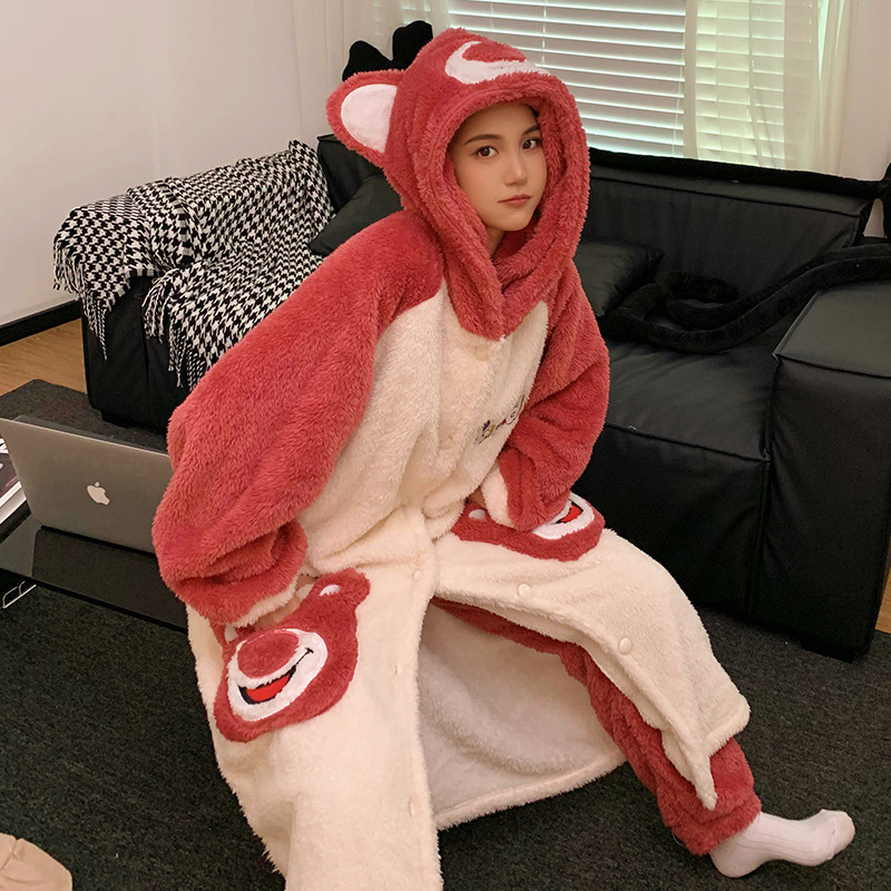 커플 잠옷 소년 가을과 겨울 봉제 두꺼운 귀여운 소녀 만화 토토로 잠옷 긴 투피스 세트