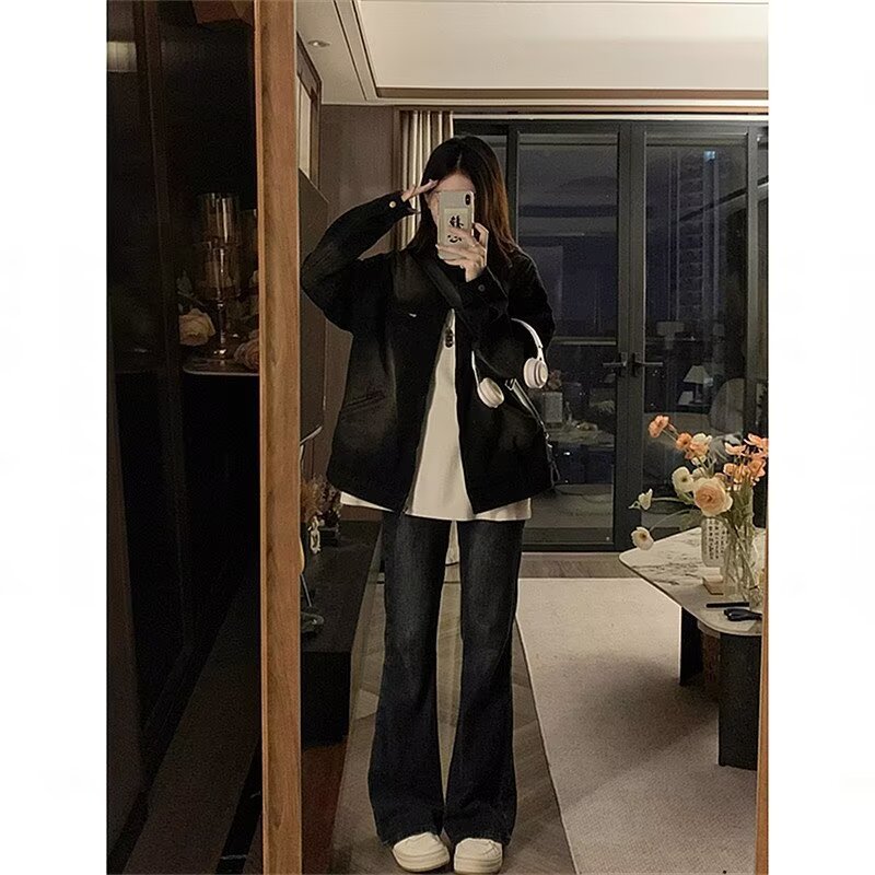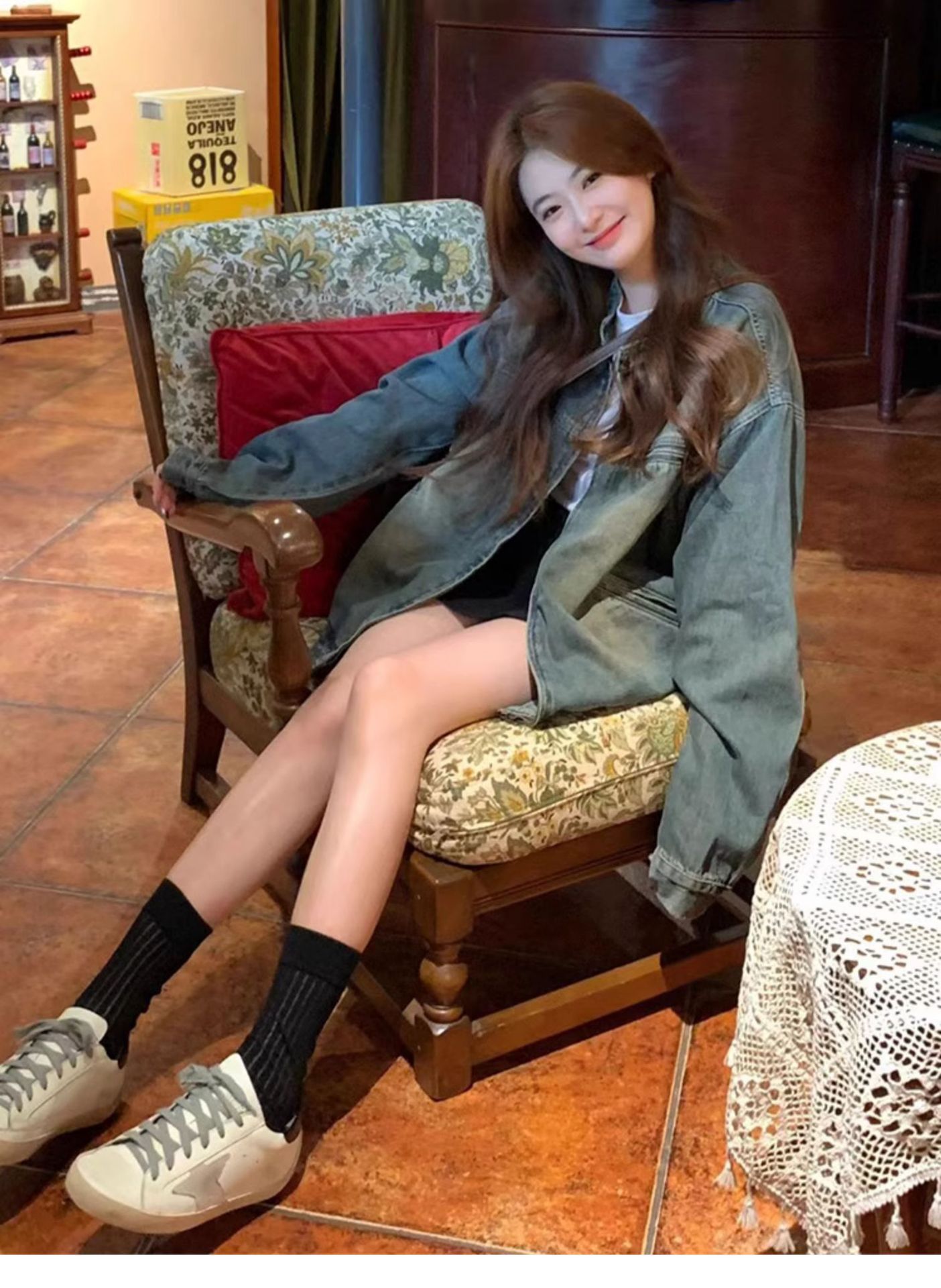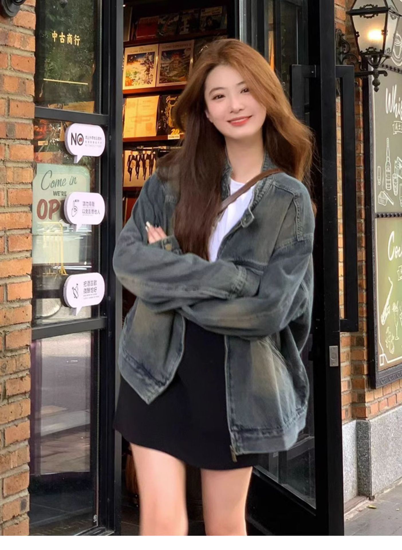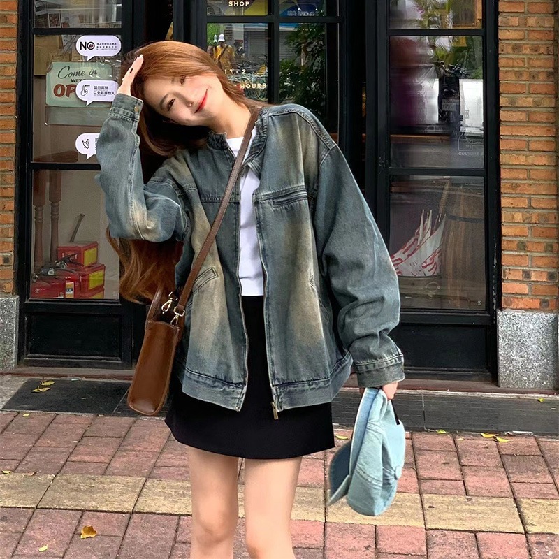 미국 스타일 복고풍 오래 된 데님 코트 여성의 가을과 겨울 2024 새로운 느슨한 작업복 자켓 트렌디스토어 가기