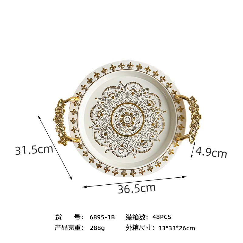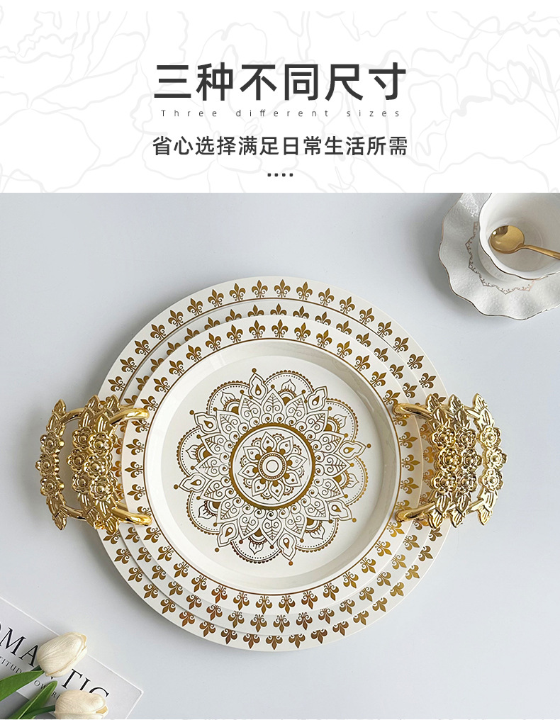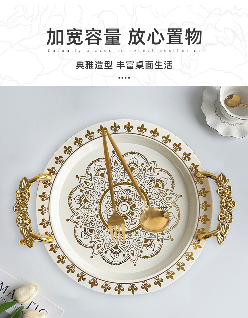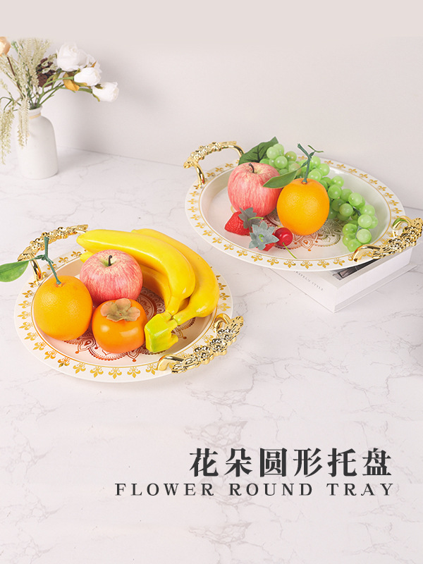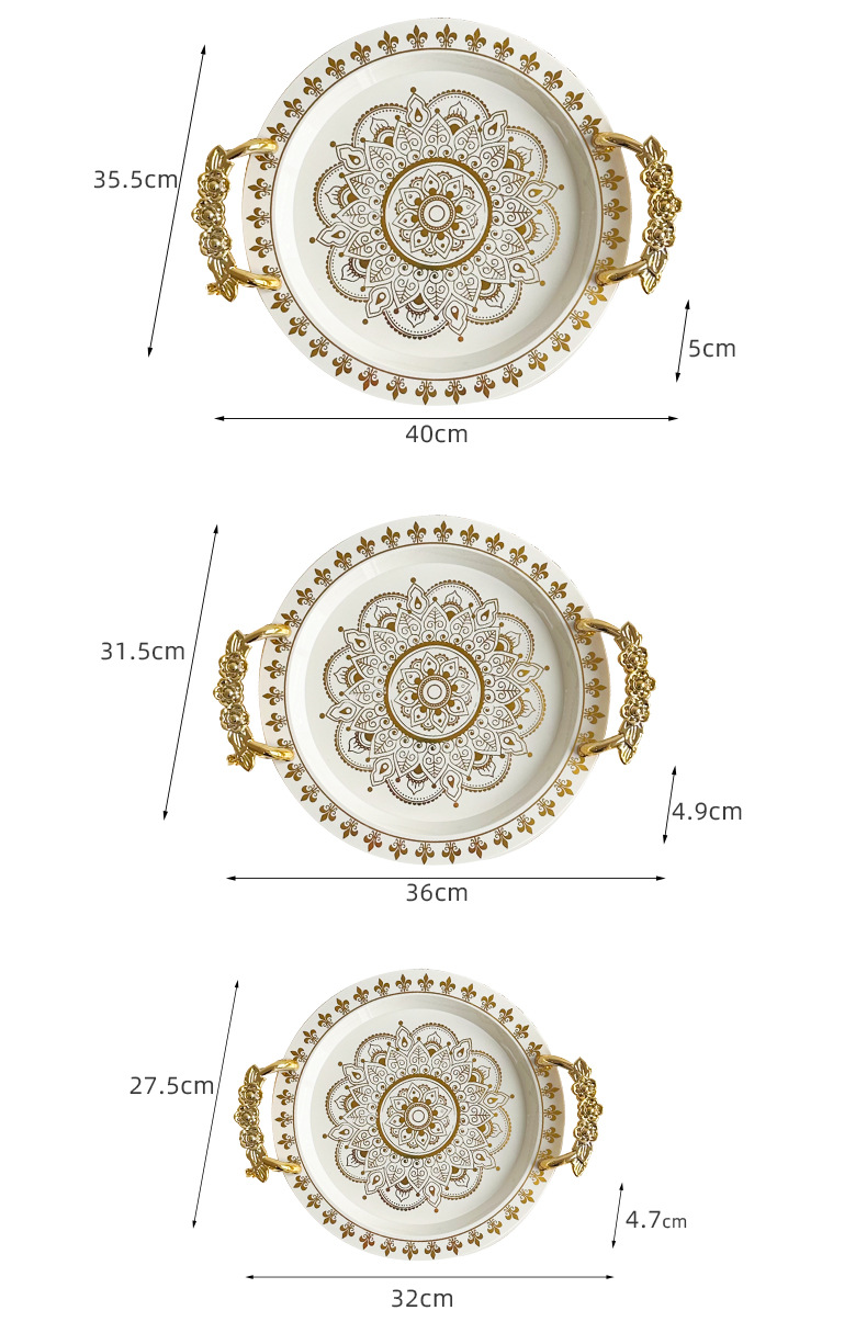 라운드 브론 징 화이트 트레이 제조 업체 도매 북유럽 빛 고급 과일 트레이 티 트레이 높은 호텔 트레이 유럽 플레이트
