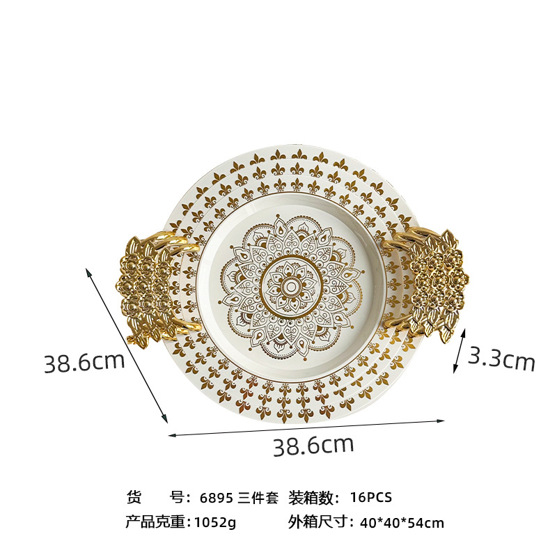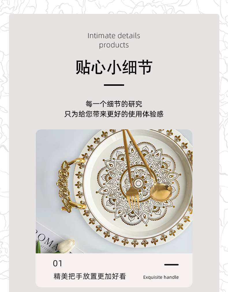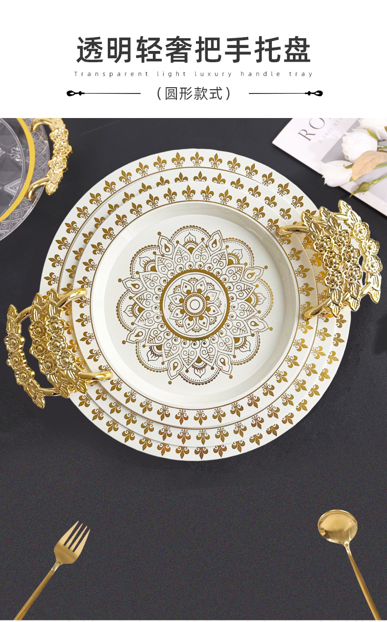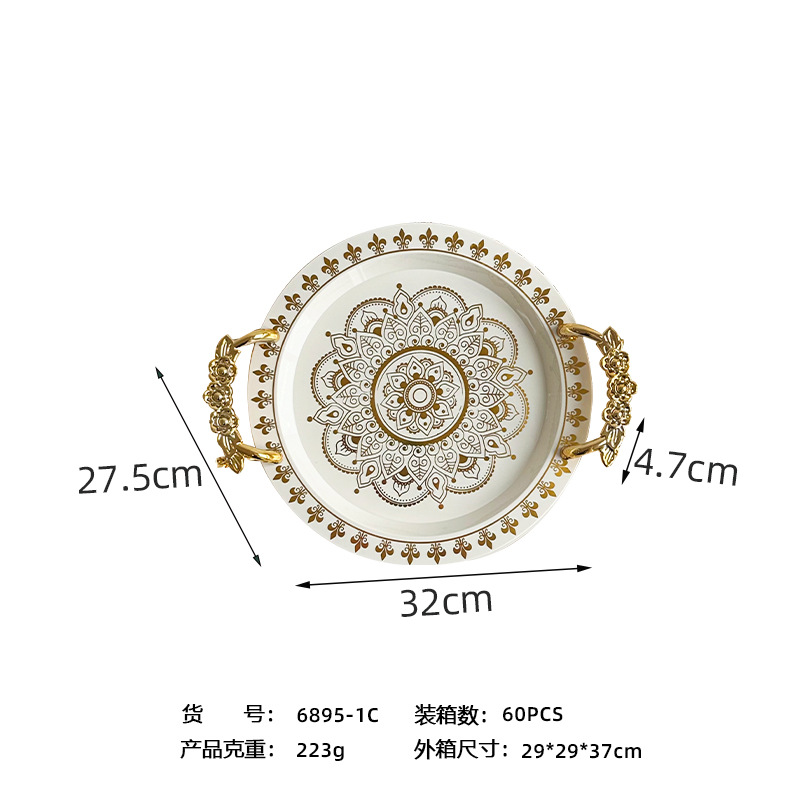 라운드 브론 징 화이트 트레이 제조 업체 도매 북유럽 빛 고급 과일 트레이 티 트레이 높은 호텔 트레이 유럽 플레이트