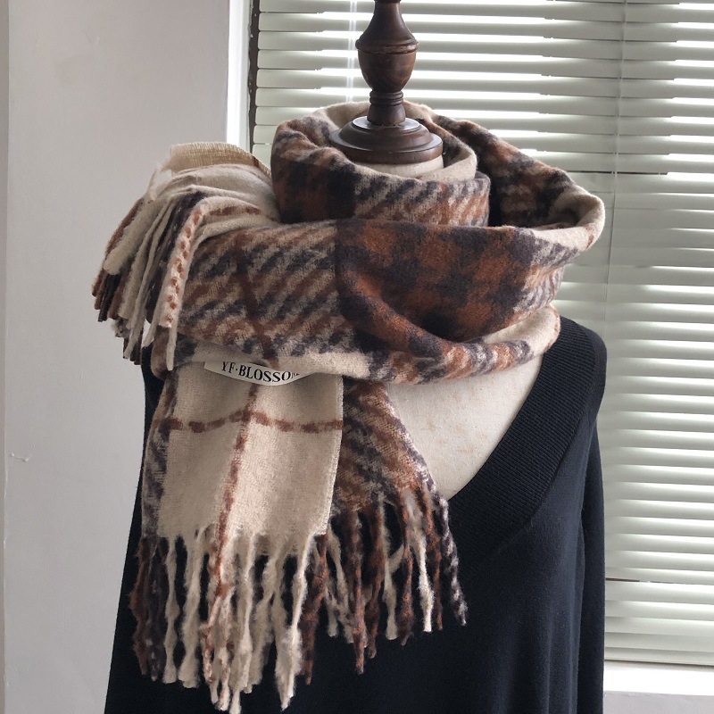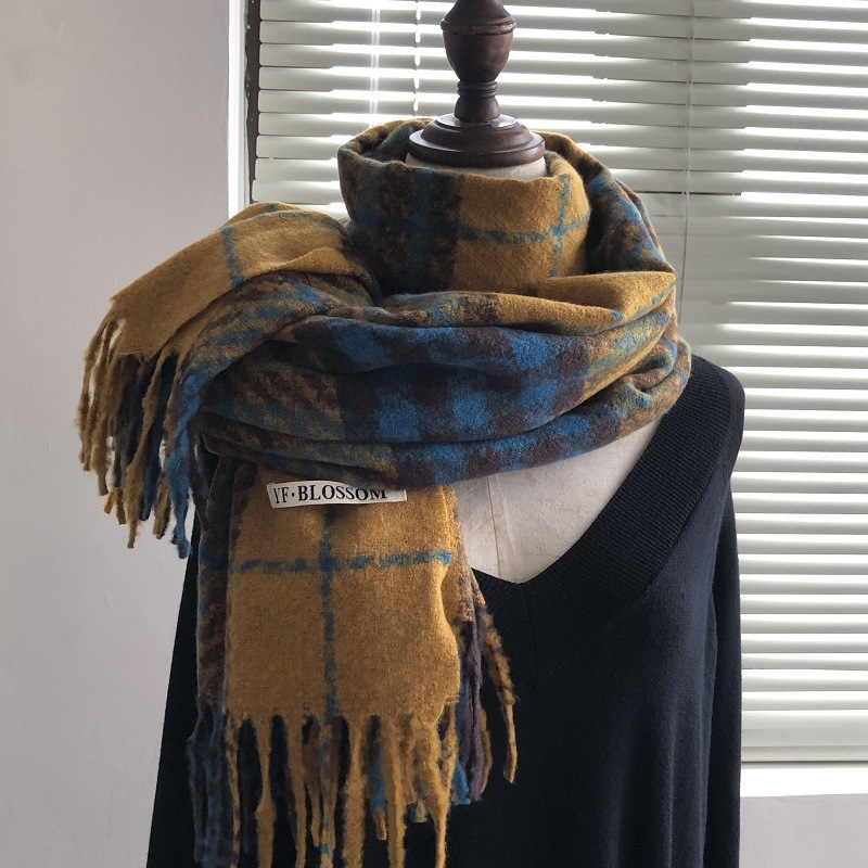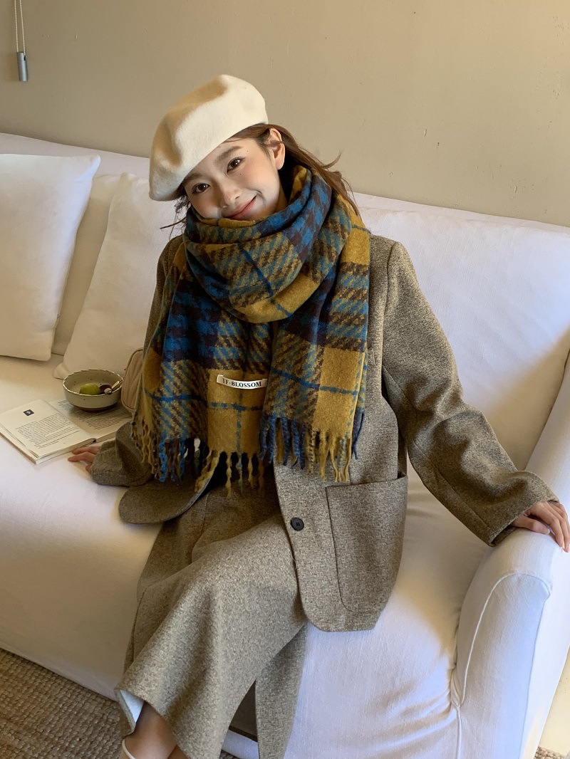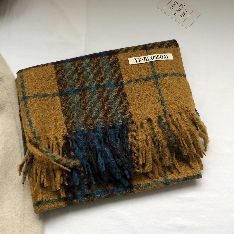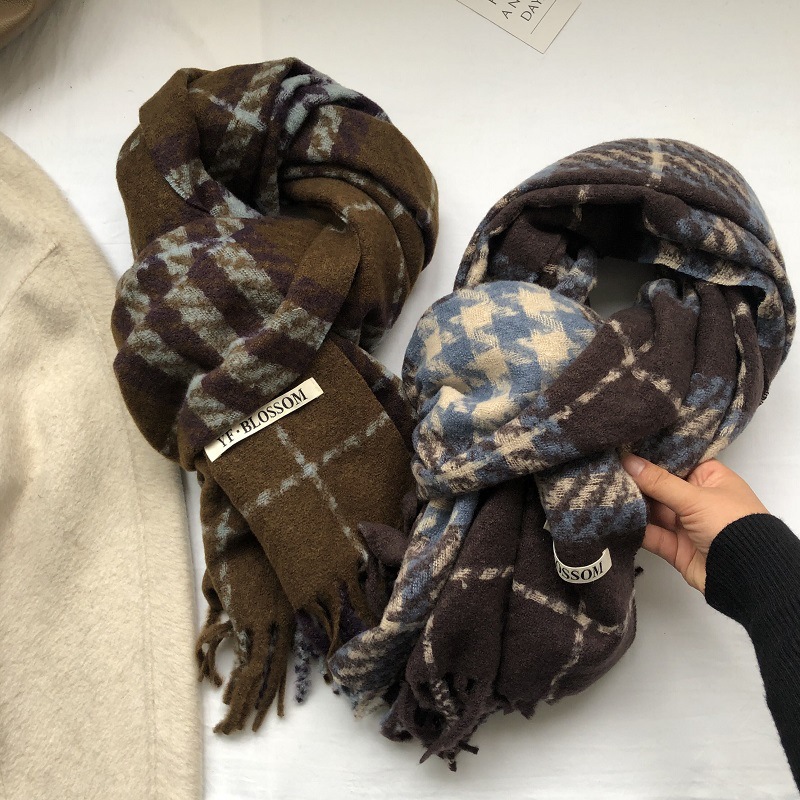 빈티지 우아한 블루 모조 캐시미어 Houndstooth 스카프 겨울 하이 엔드 2023 새로운 따뜻한 목도리 학생 스카프스토어 가기