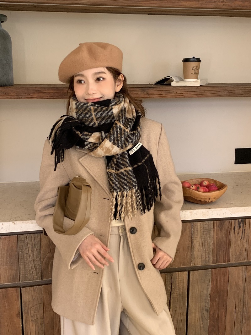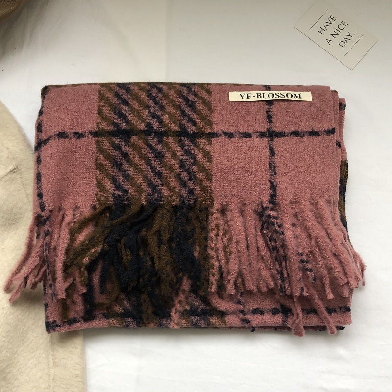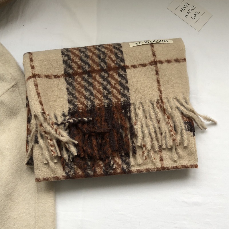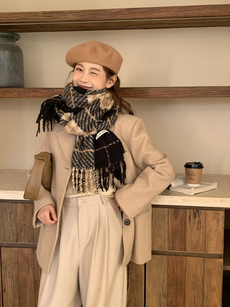 빈티지 우아한 블루 모조 캐시미어 Houndstooth 스카프 겨울 하이 엔드 2023 새로운 따뜻한 목도리 학생 스카프스토어 가기