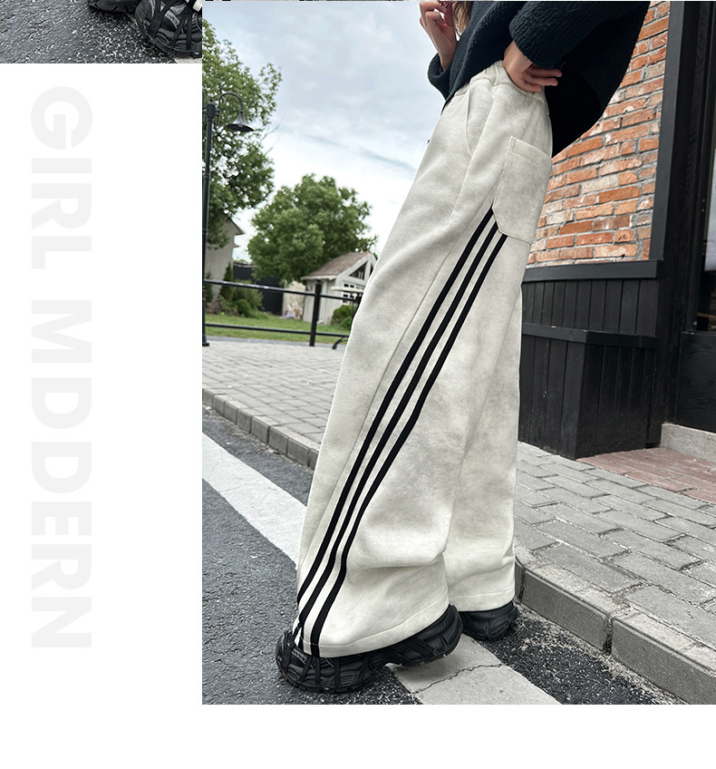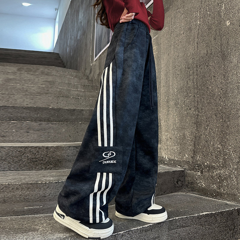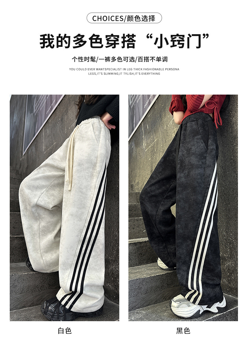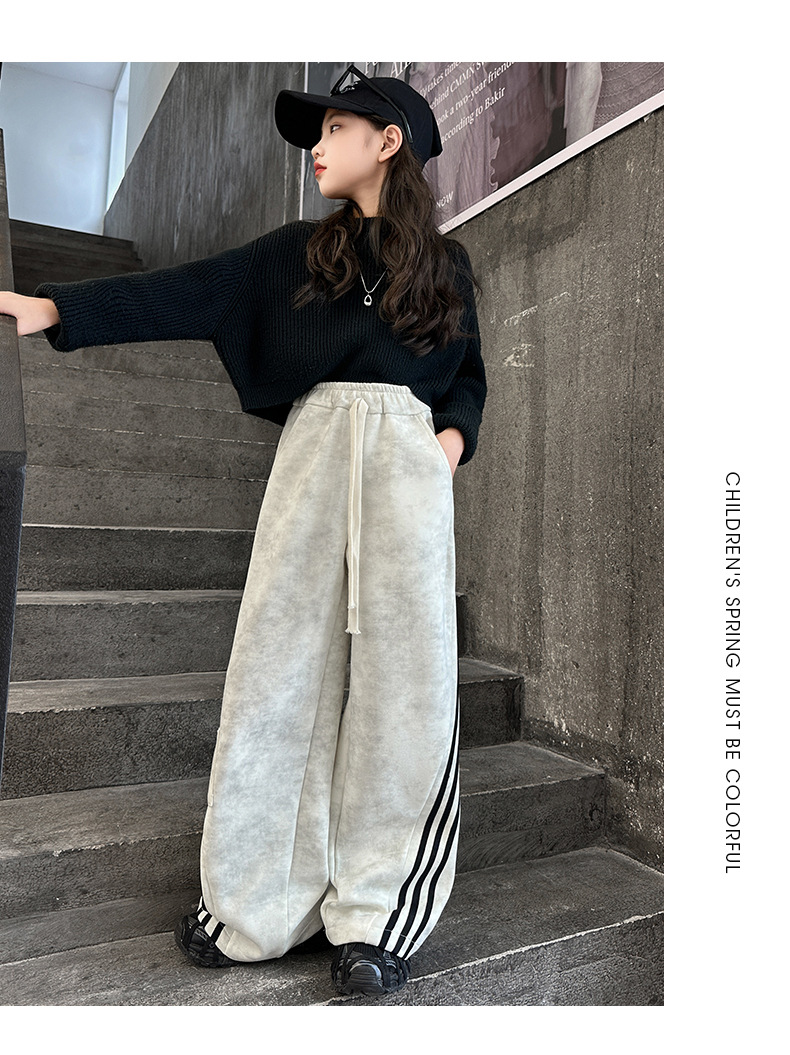 소녀 기모 넓은 다리 바지 2024 새로운 어린이 느슨한 유행 바지 한국 여자 캐주얼 바지 서양식스토어 가기