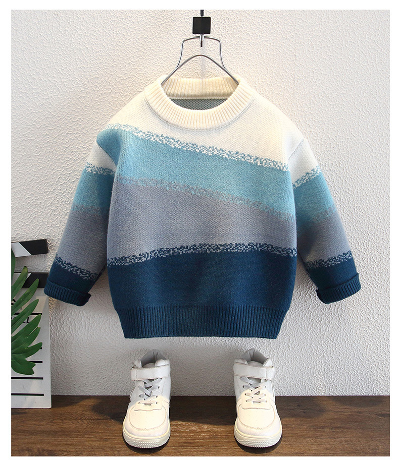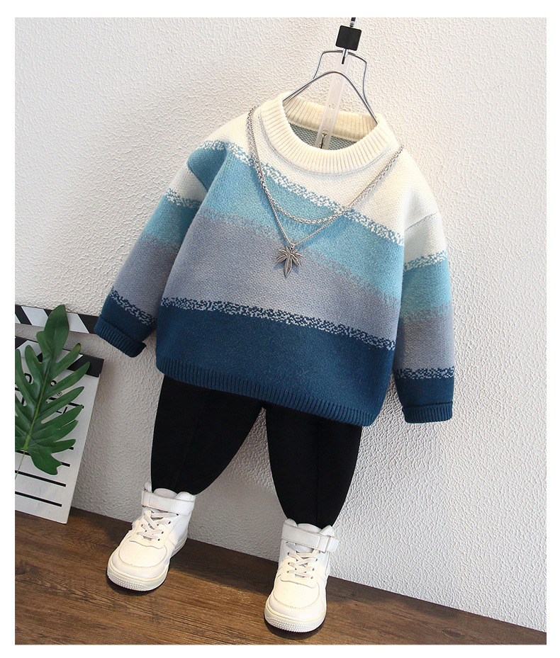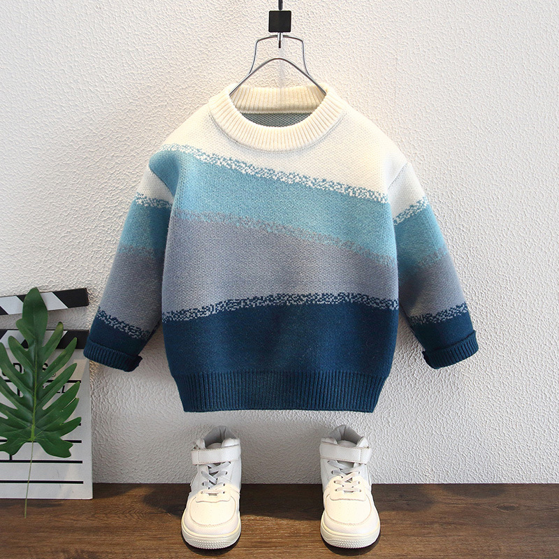 어린이 스웨터 가을과 겨울 소년 2024 새로운 둥근 목 니트 스웨터 아기베이스 셔츠 최고 잘 생긴 스웨터