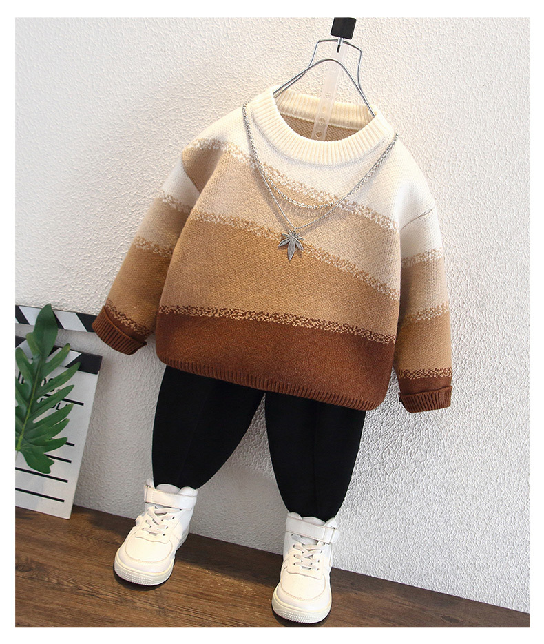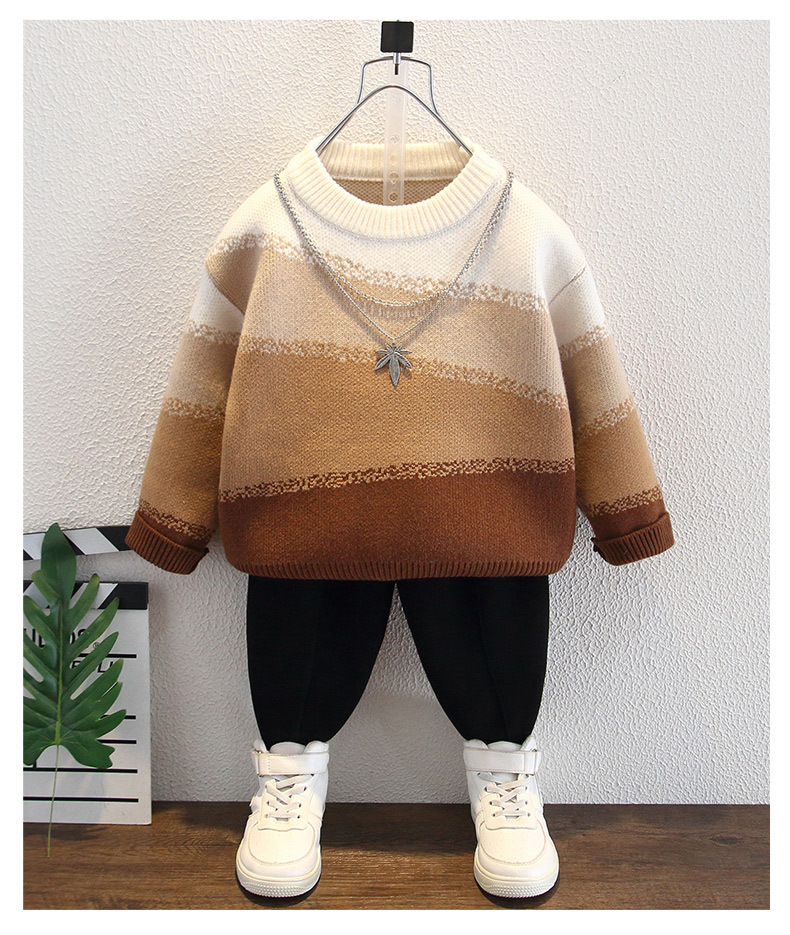 어린이 스웨터 가을과 겨울 소년 2024 새로운 둥근 목 니트 스웨터 아기베이스 셔츠 최고 잘 생긴 스웨터스토어 가기
