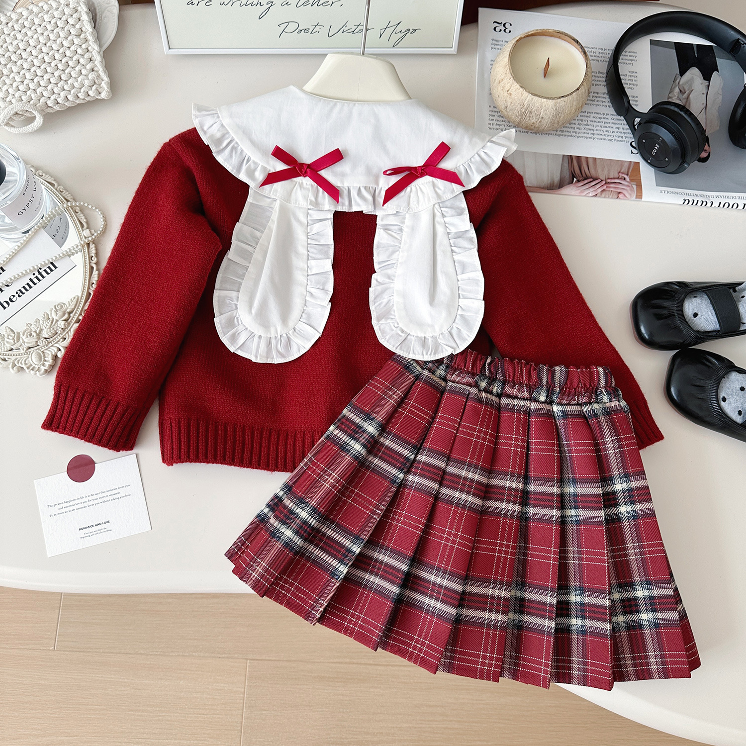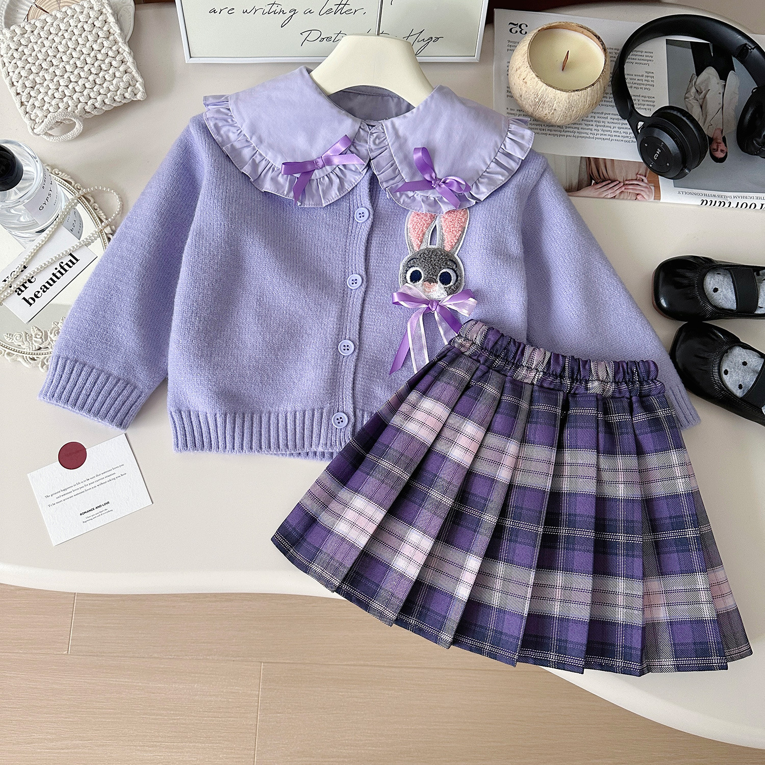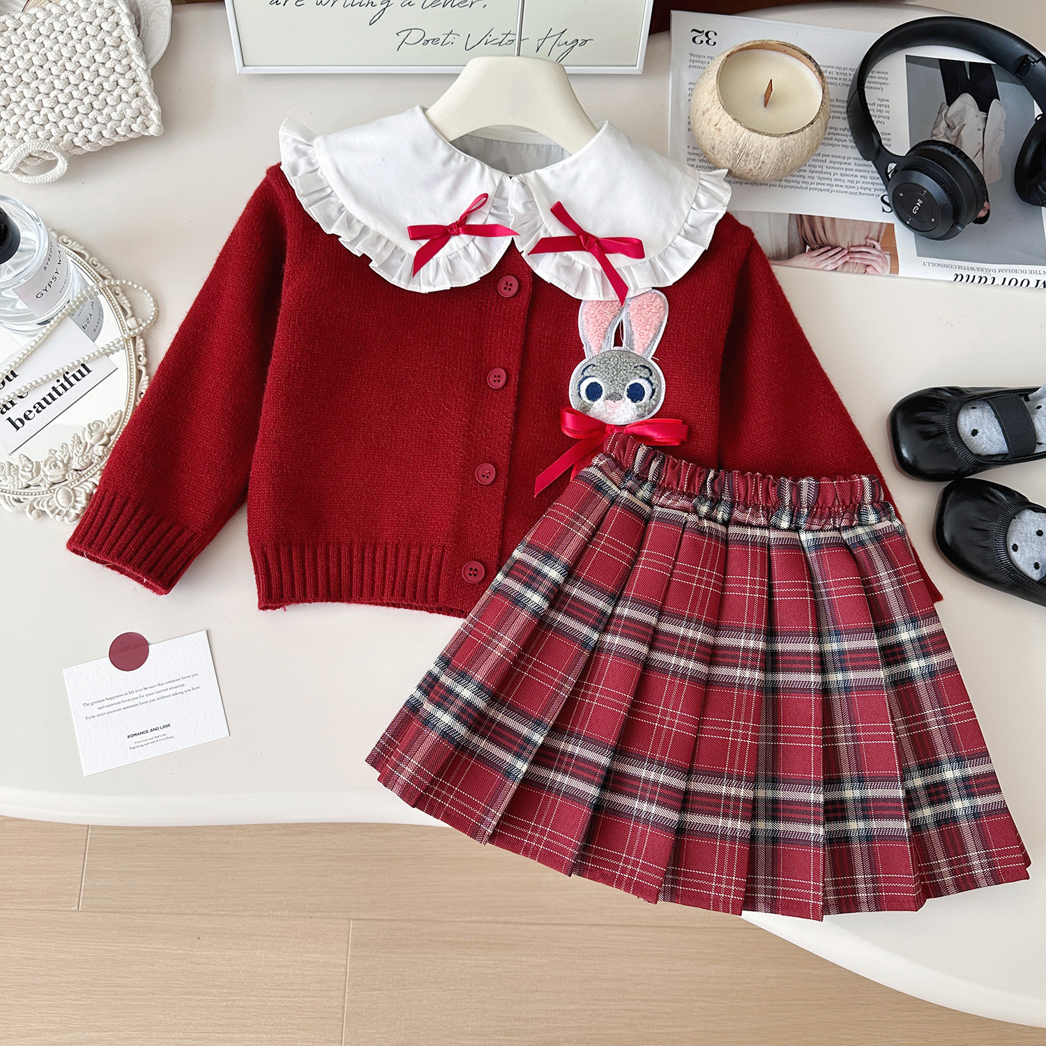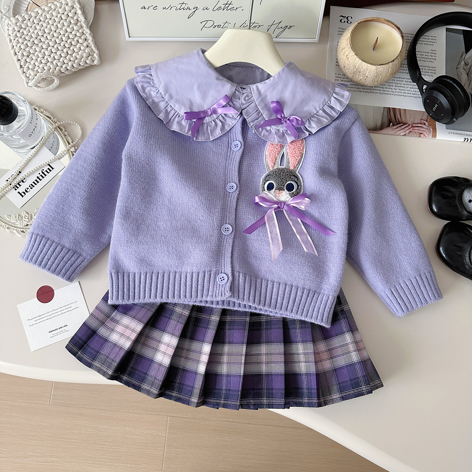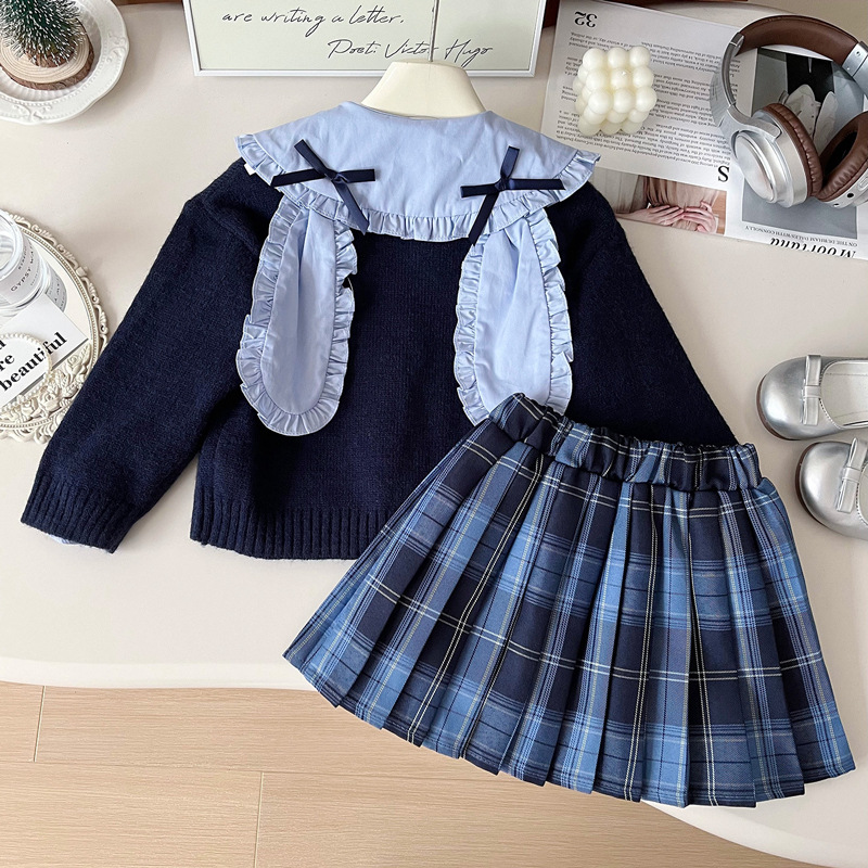 만화 토끼 옷 3종 세트 2025 신상 여아용 모직 셔츠 스커트 봄 대학 스타일 세트 트렌디스토어 가기