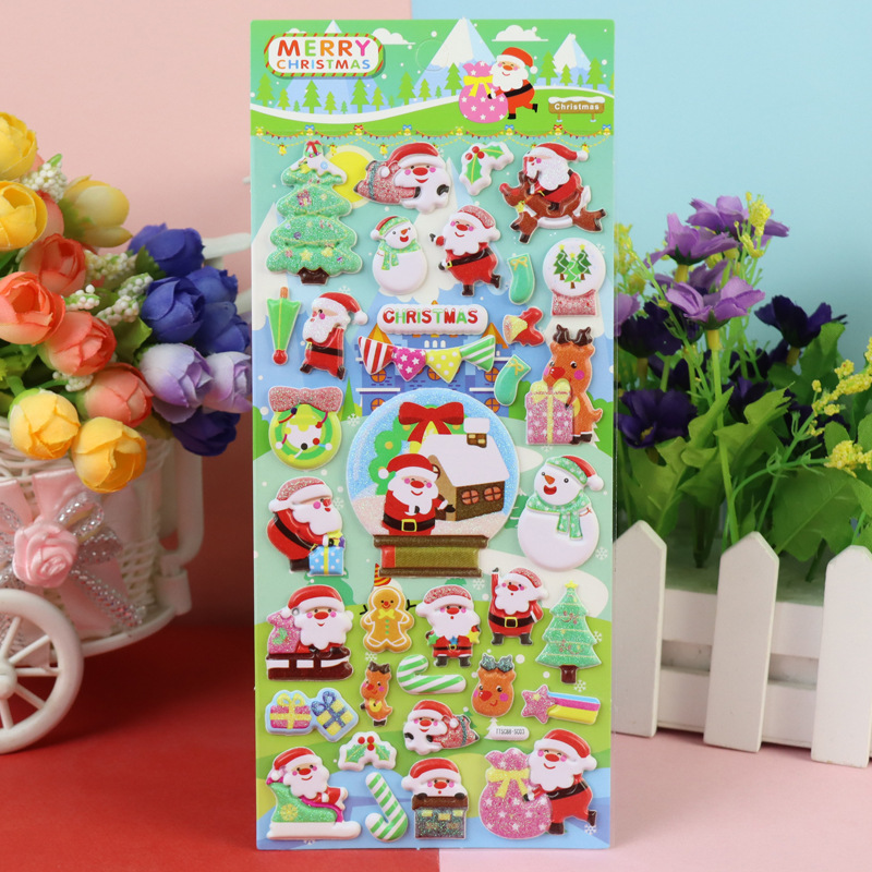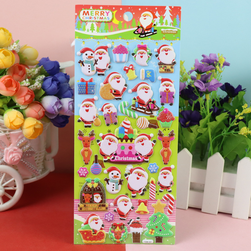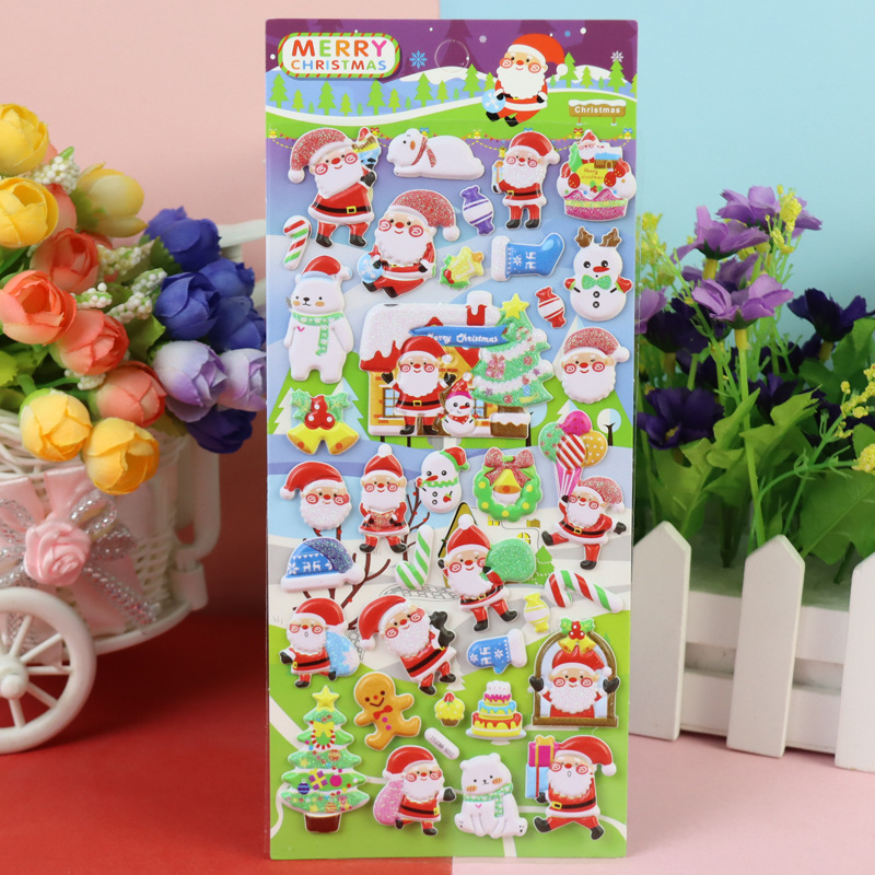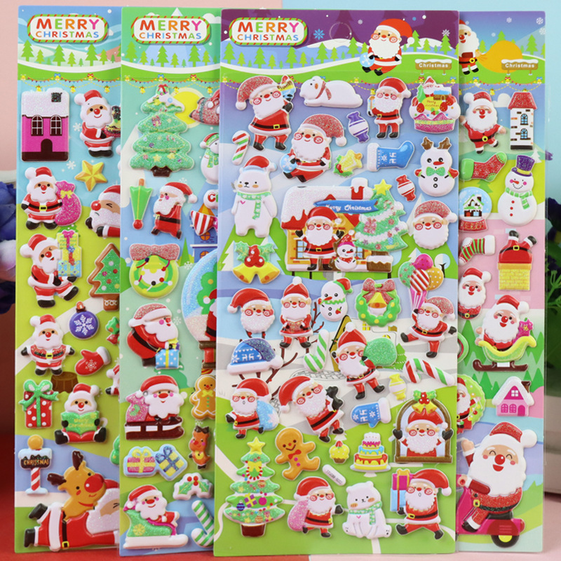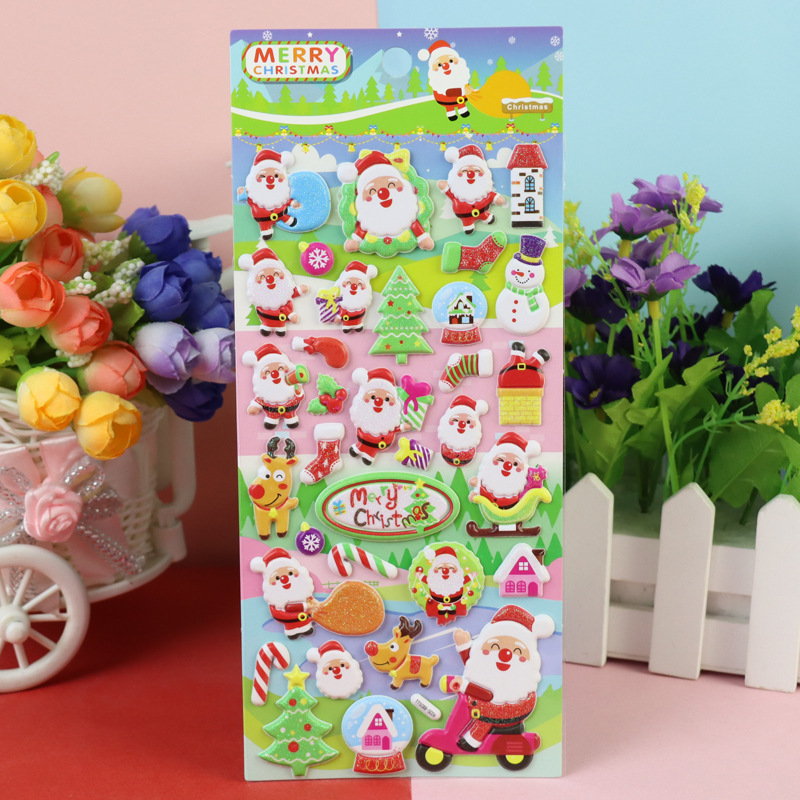 새로운 국경 산타 클로스 반짝이 거품 스티커 크리스마스 선물 스티커 어린이 만화 부드러운 거품 스티커스토어 가기
