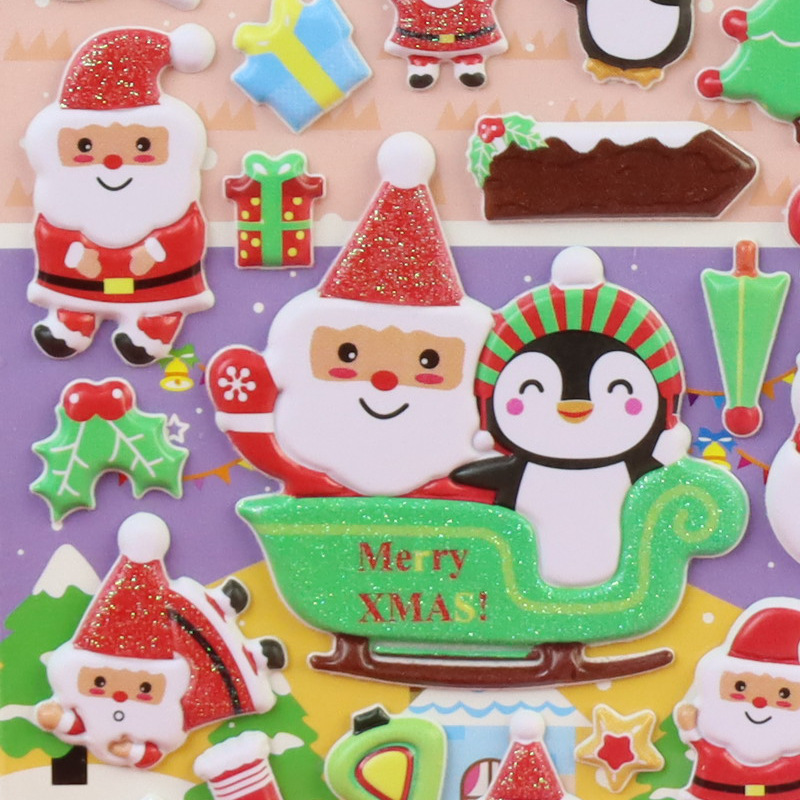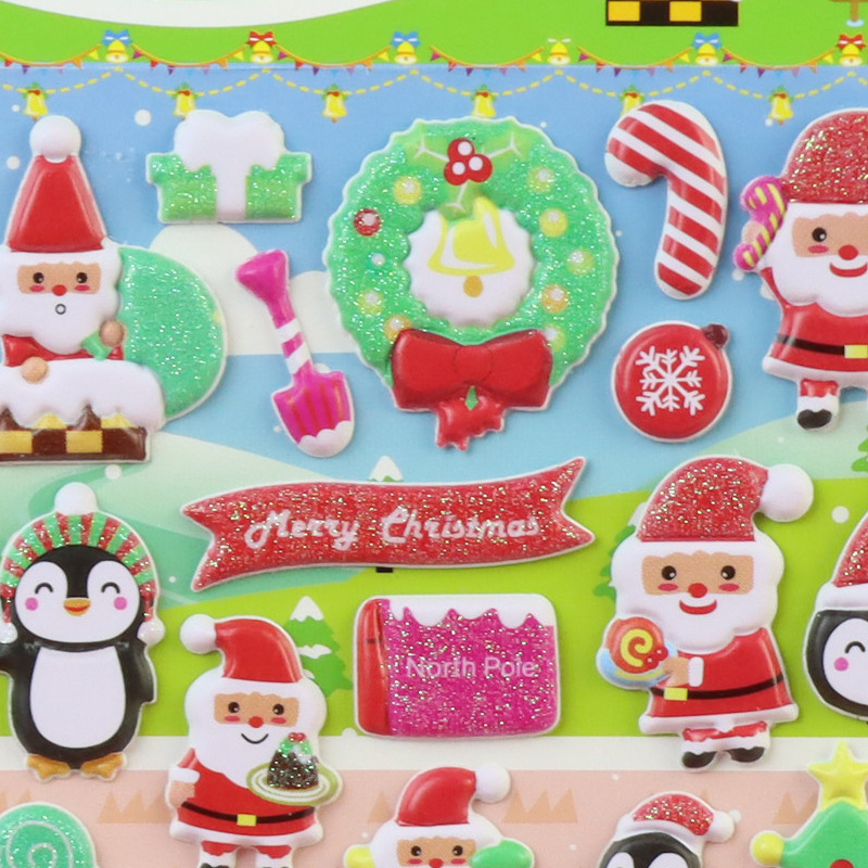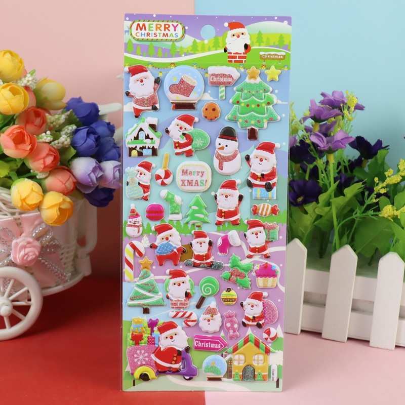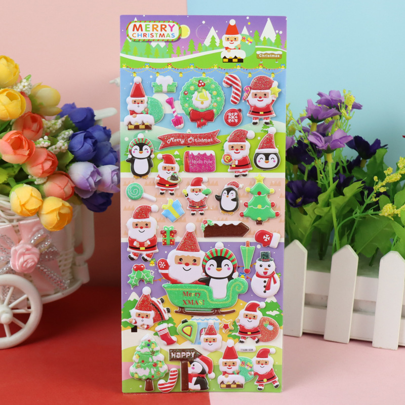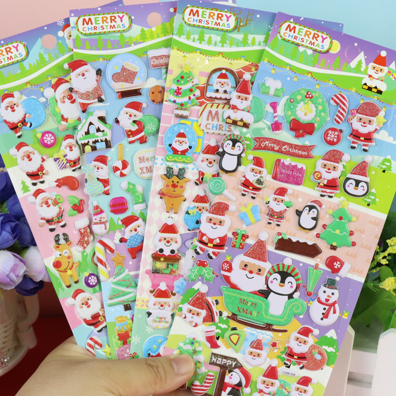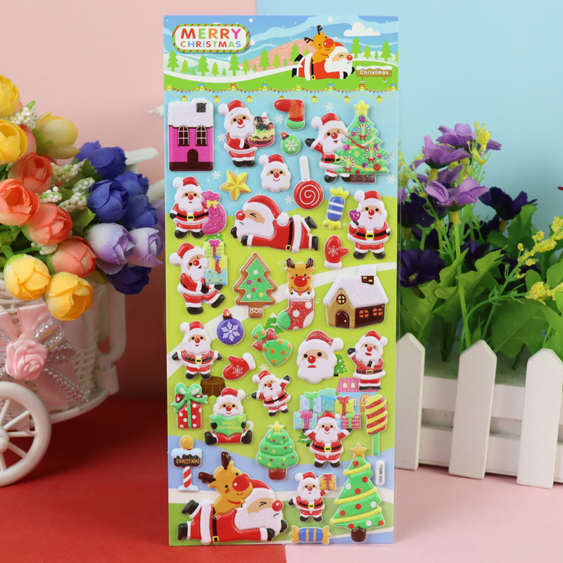 새로운 국경 산타 클로스 반짝이 거품 스티커 크리스마스 선물 스티커 어린이 만화 부드러운 거품 스티커스토어 가기