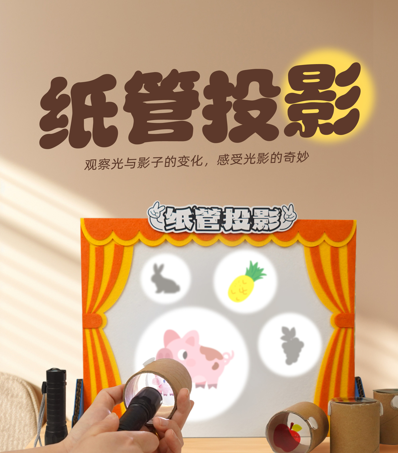종이 튜브 프로젝션 유치원 과학 지역 아이들은 그림자 게임 재료 빛과 그림자 작은 극장 퍼즐 조기 교육 장난감을 찾습니다