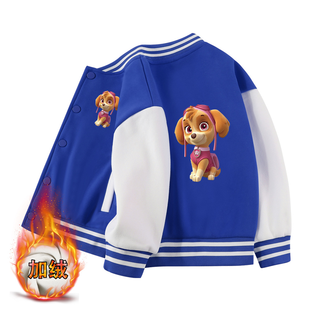 왕왕 팀 옷 어린이 코트 봄과 가을 새 소녀 캐주얼 탑 어린 소녀의 가을과 겨울 기모 야구 세트스토어 가기
