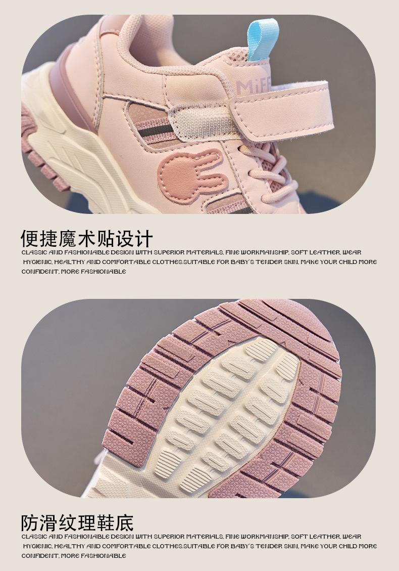 Miffy Miffy 여자 신발 봄과 가을 새로운 벨크로 캐주얼 운동화 어린이 방수 가죽 운동화