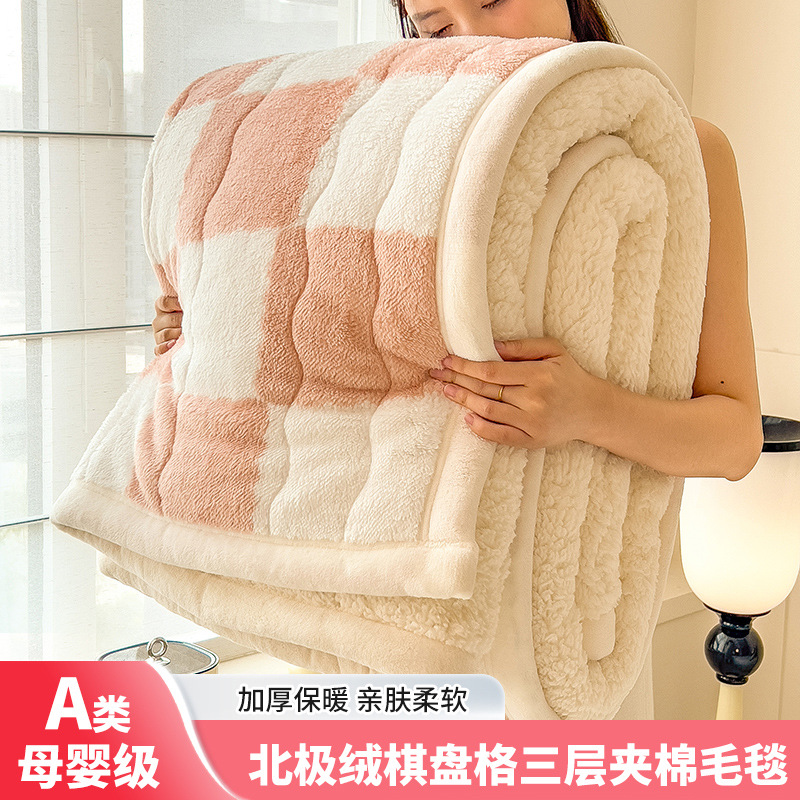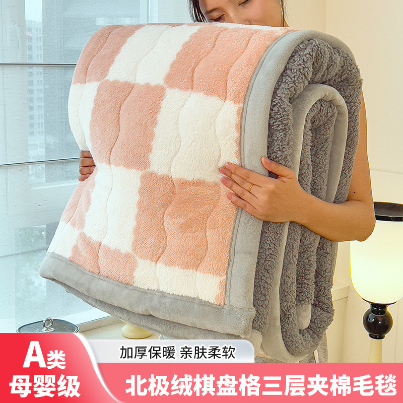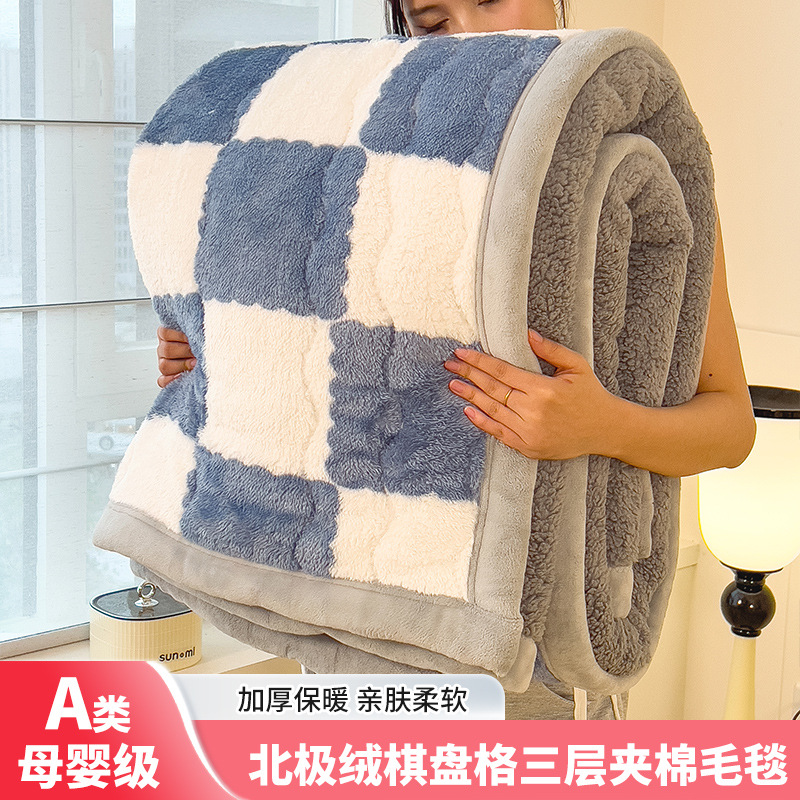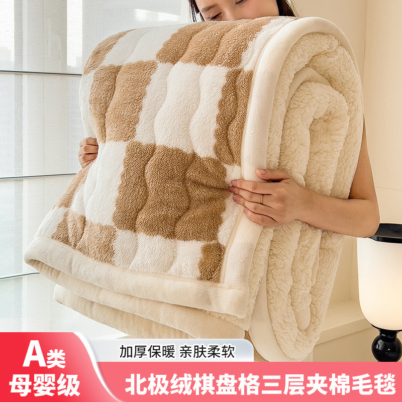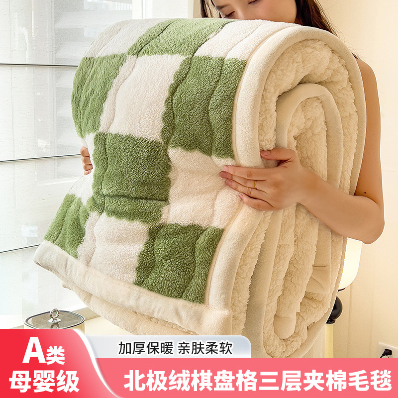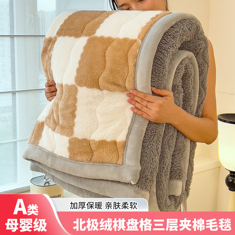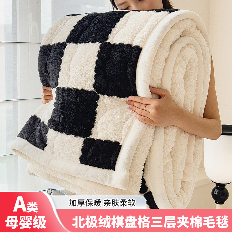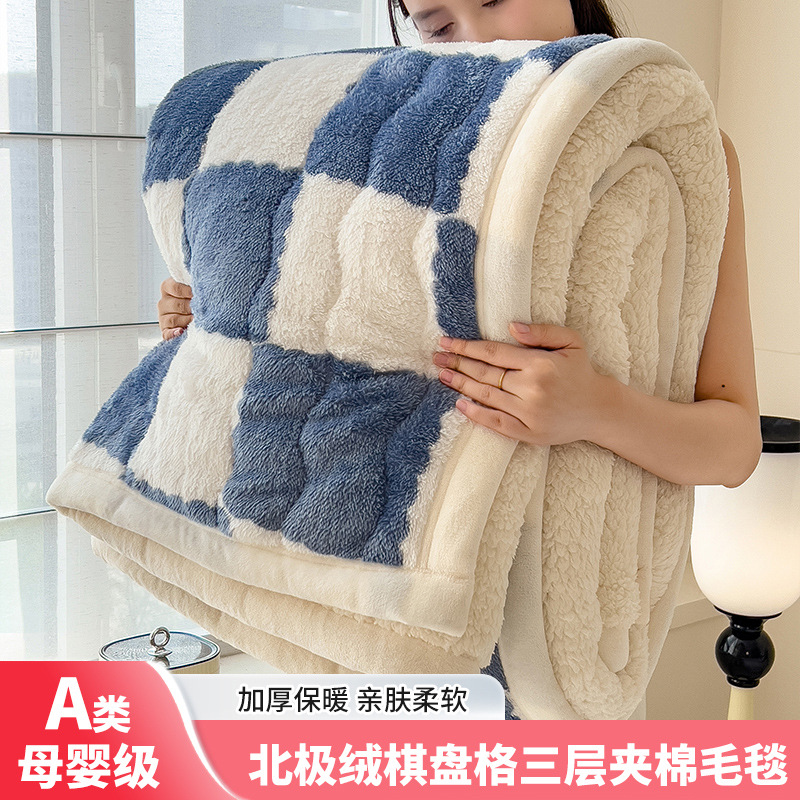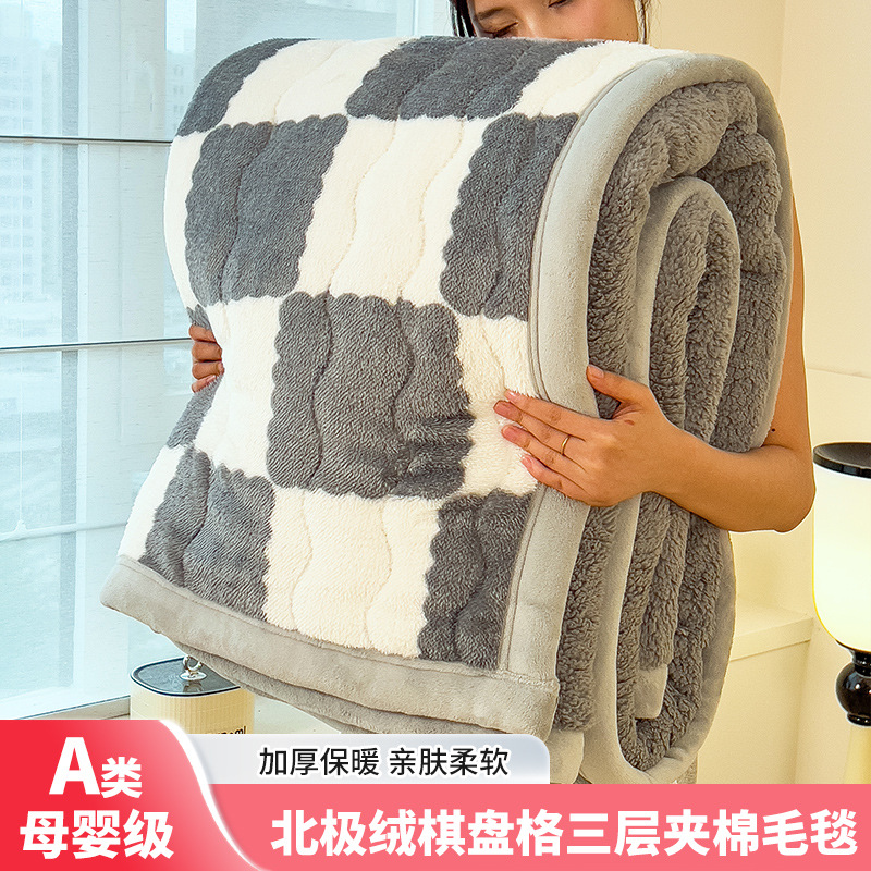 A 급 두꺼운 바둑판 담요 가을과 겨울 3 층 퀼트 담요 단순 양면 담요 대외 무역 담요 도매스토어 가기