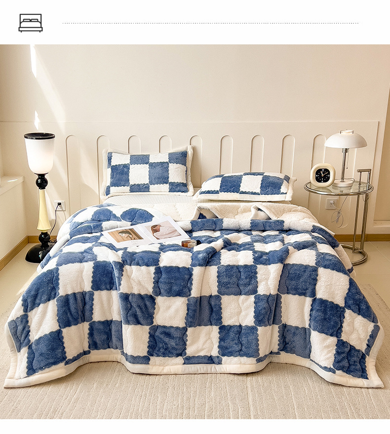 A 급 두꺼운 바둑판 담요 가을과 겨울 3 층 퀼트 담요 단순 양면 담요 대외 무역 담요 도매