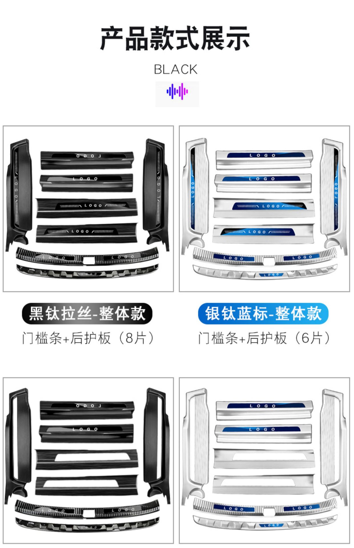 • 웨이란 일체형 도어 실 스트립 + 후면 가드 8개, 블랙 티타늄