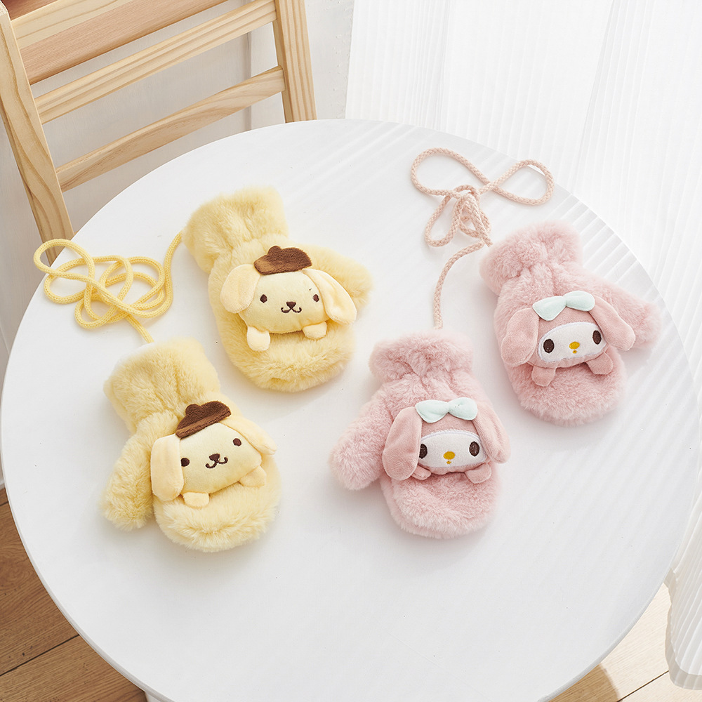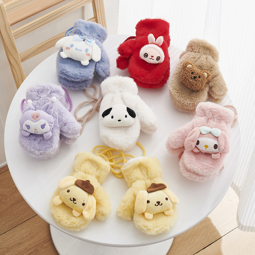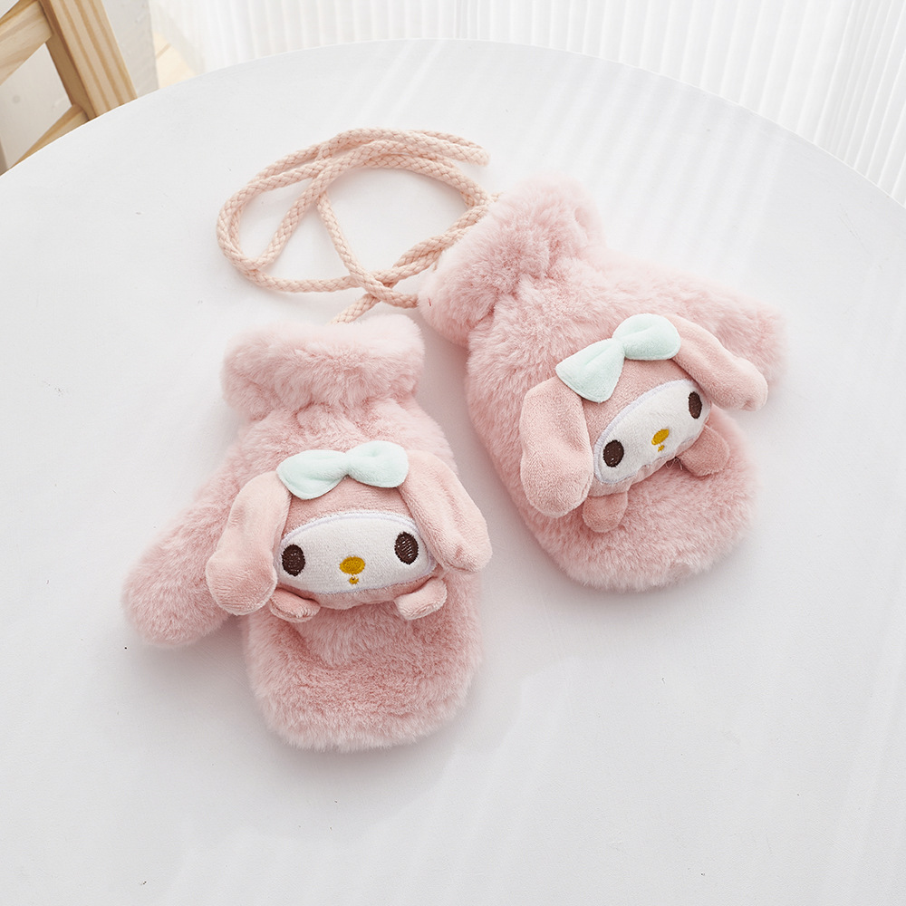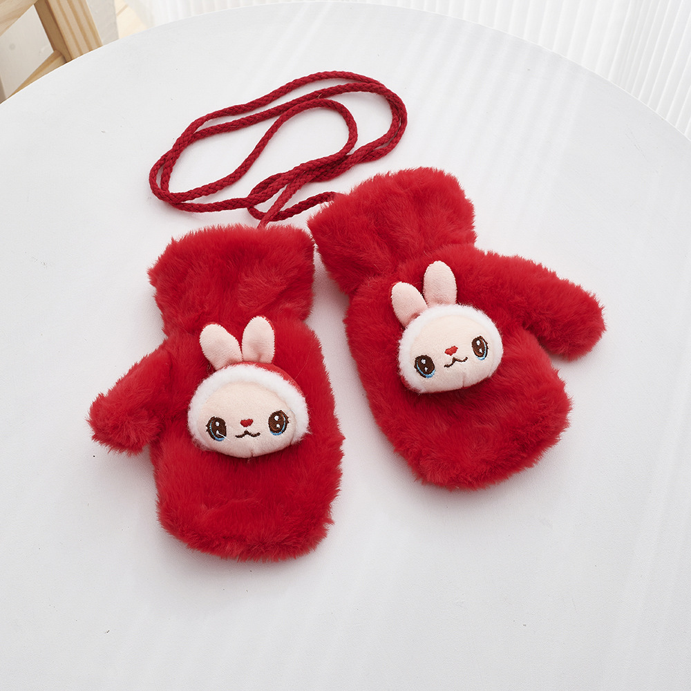 겨울 만화 어린이 장갑 귀여운 따뜻한 두꺼운 방풍 봉제 목 교수형 장갑 소년 소녀 토끼 모피 아기 장갑