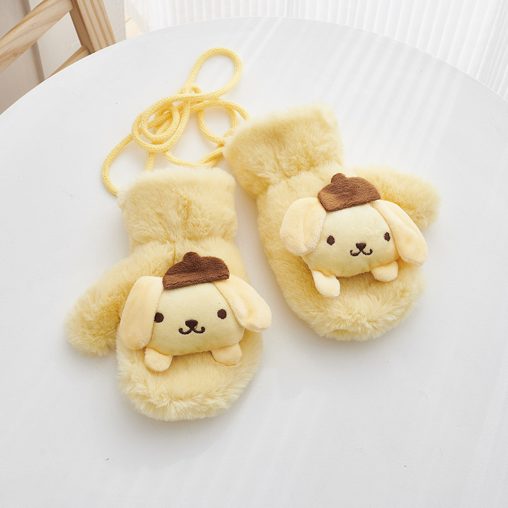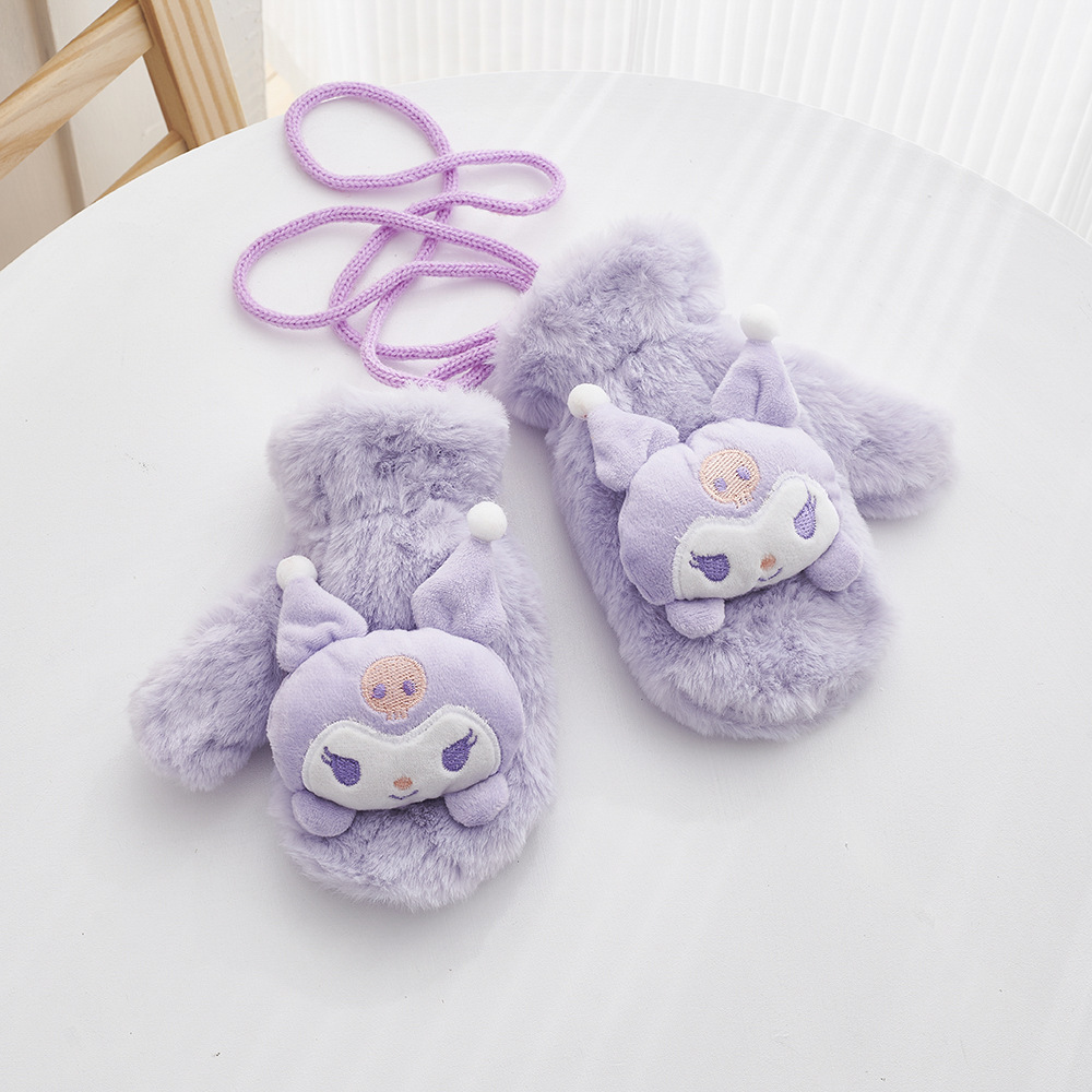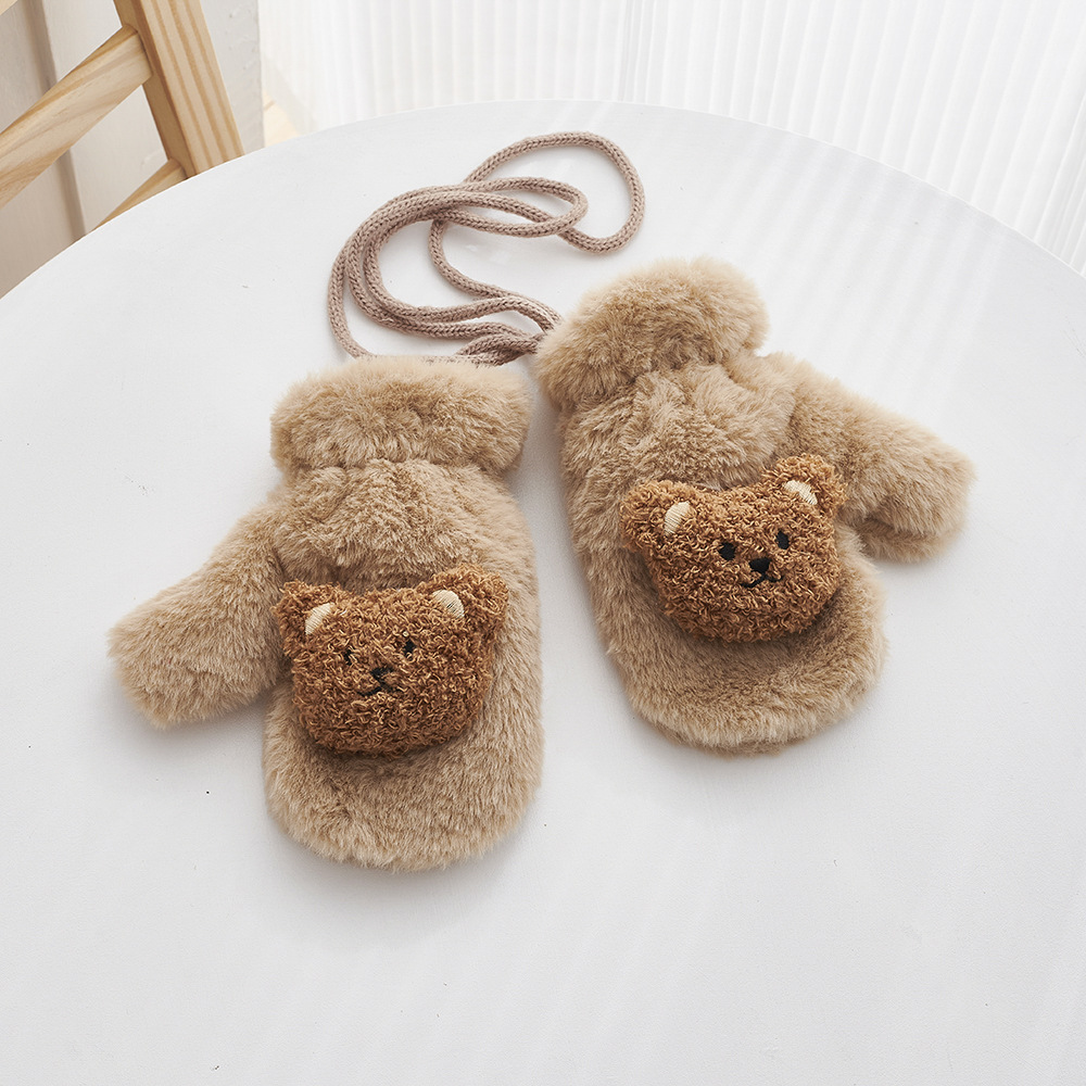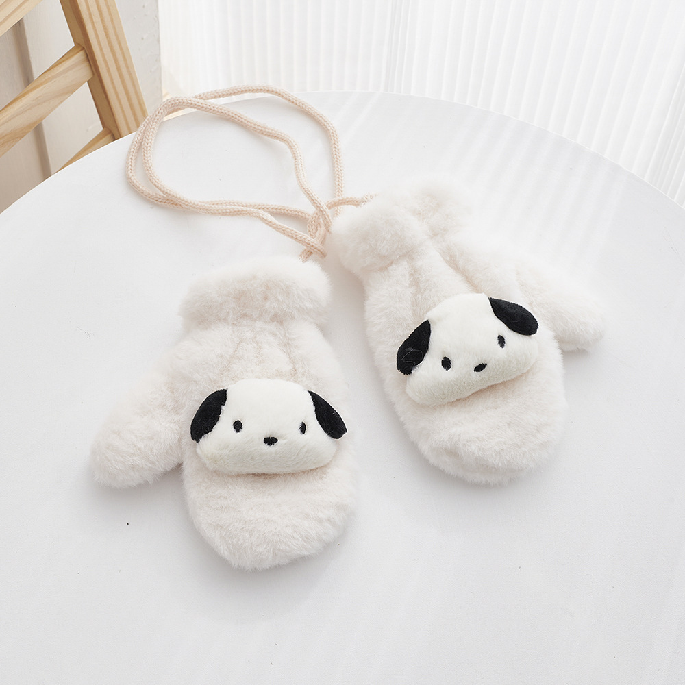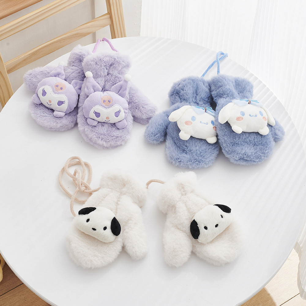 겨울 만화 어린이 장갑 귀여운 따뜻한 두꺼운 방풍 봉제 목 교수형 장갑 소년 소녀 토끼 모피 아기 장갑