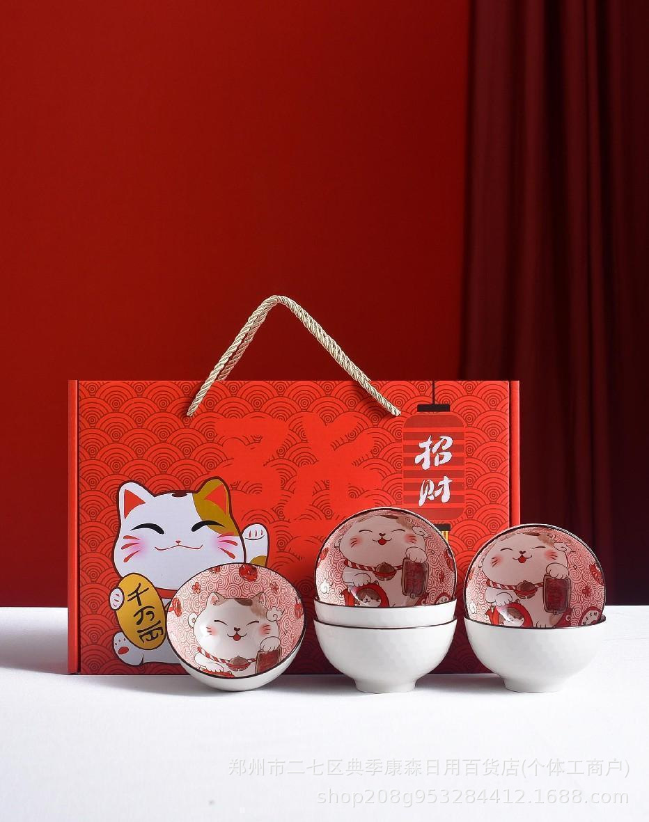 주타오 맨 JTR. 돈, 행복 및 원산지를위한 루킹 고양이 시리즈 식기 선물 그릇 젓가락 세트