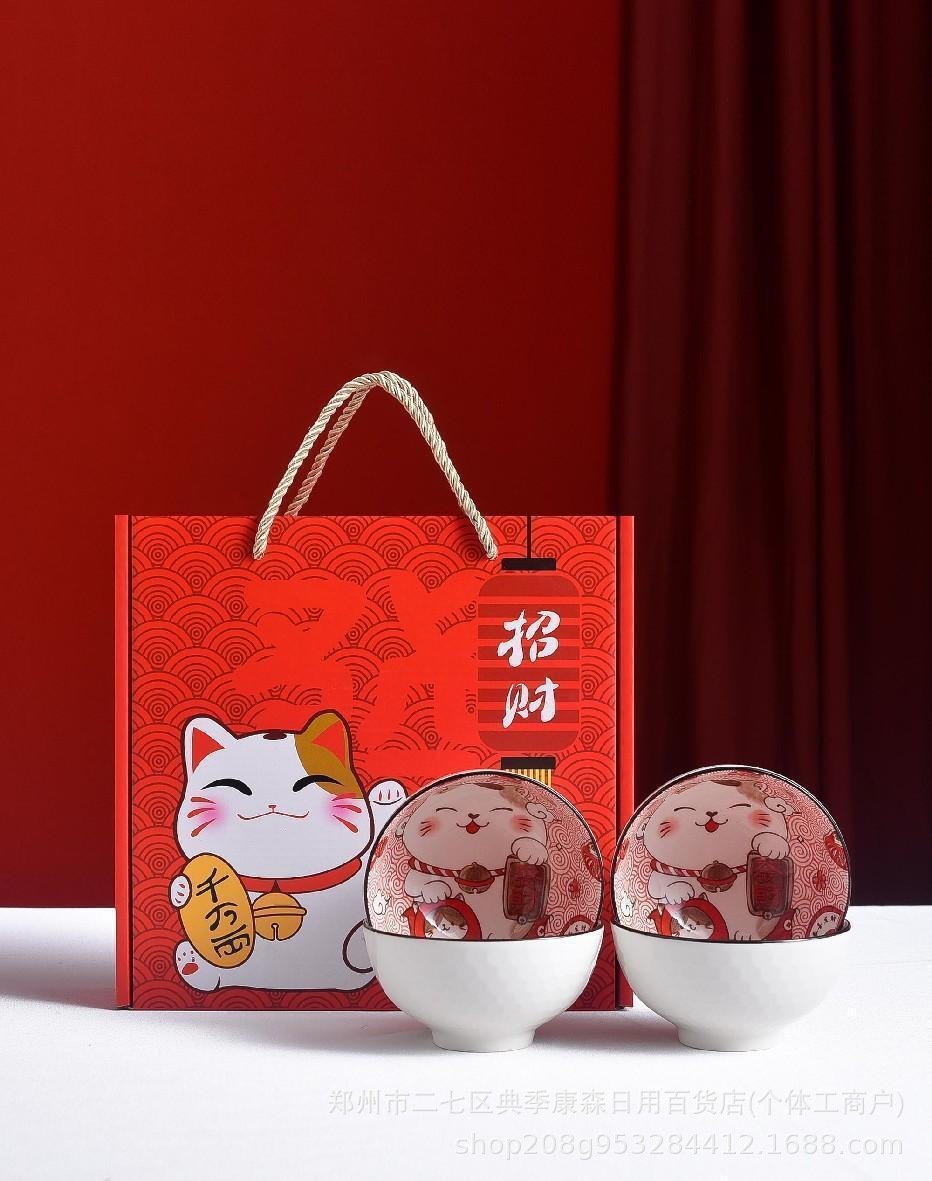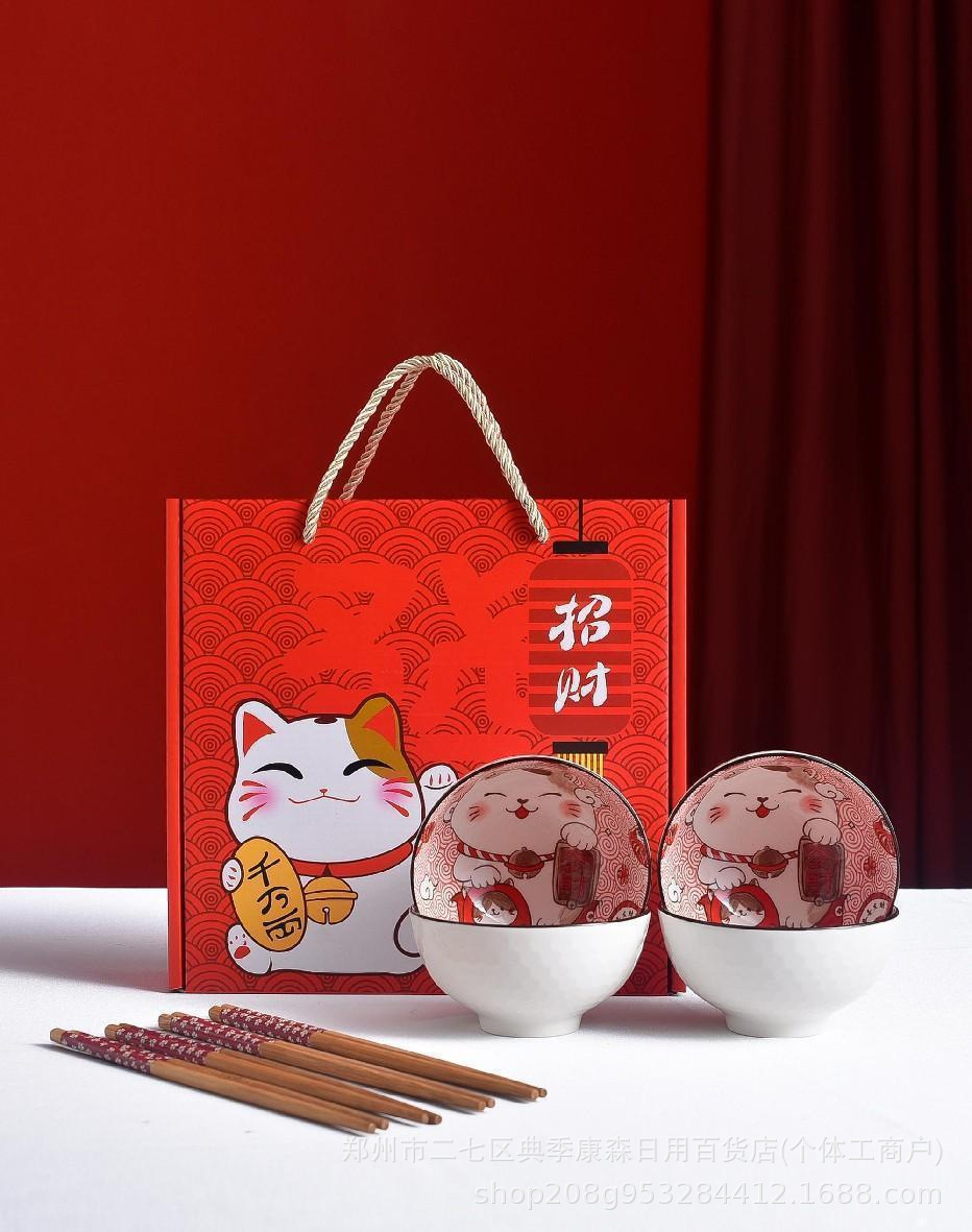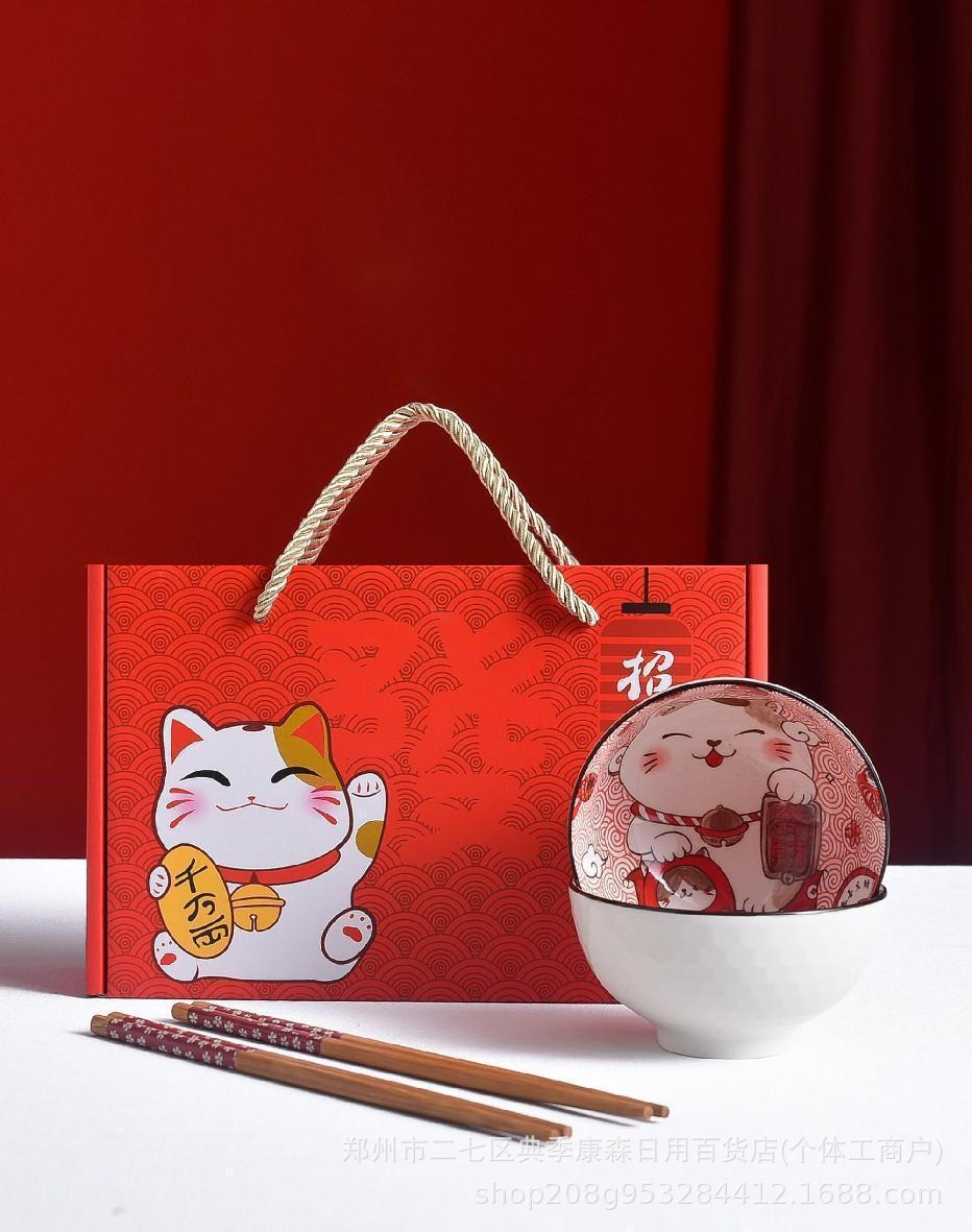주타오 맨 JTR. 돈, 행복 및 원산지를위한 루킹 고양이 시리즈 식기 선물 그릇 젓가락 세트스토어 가기